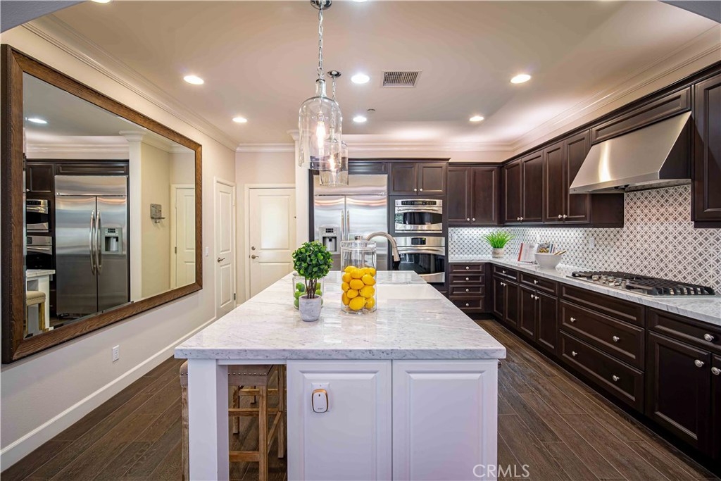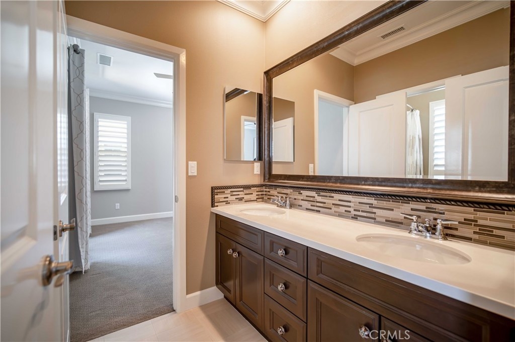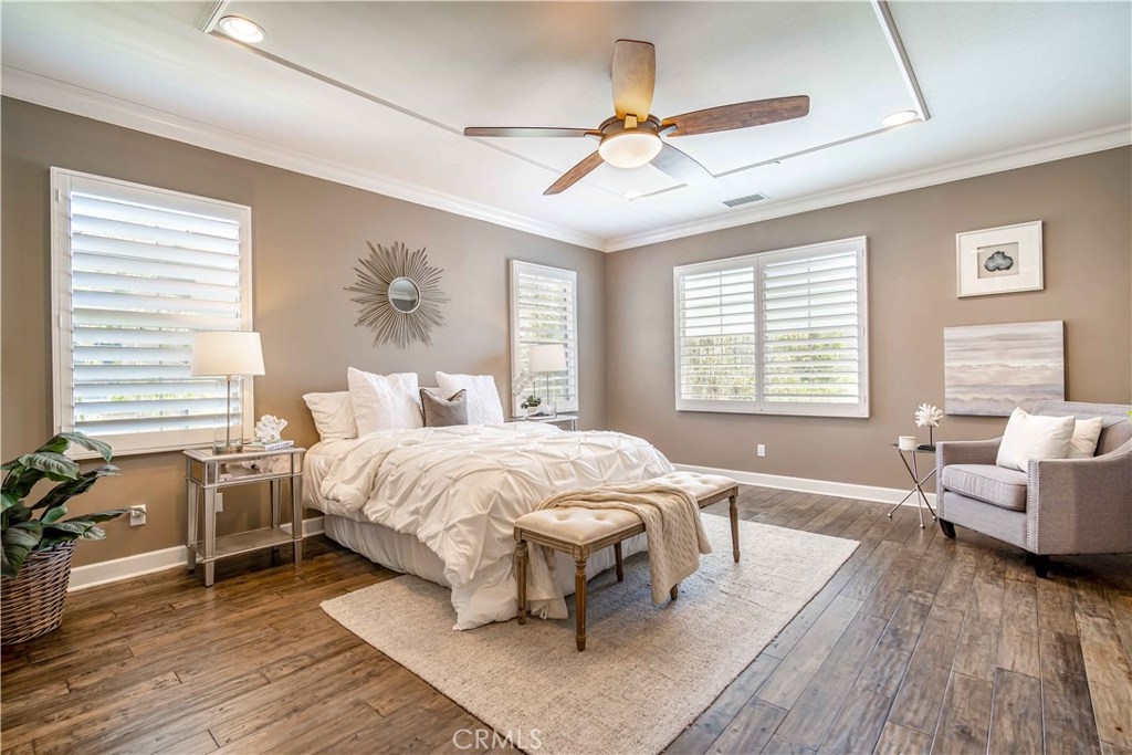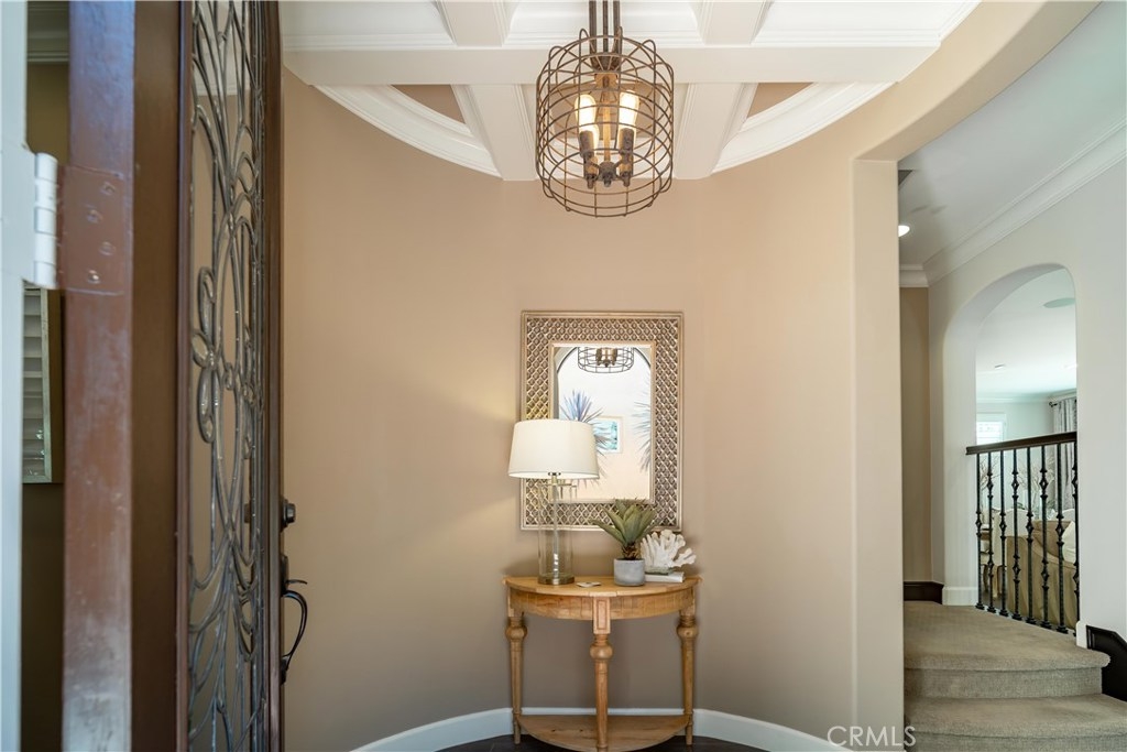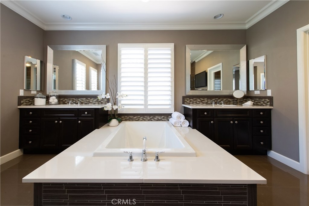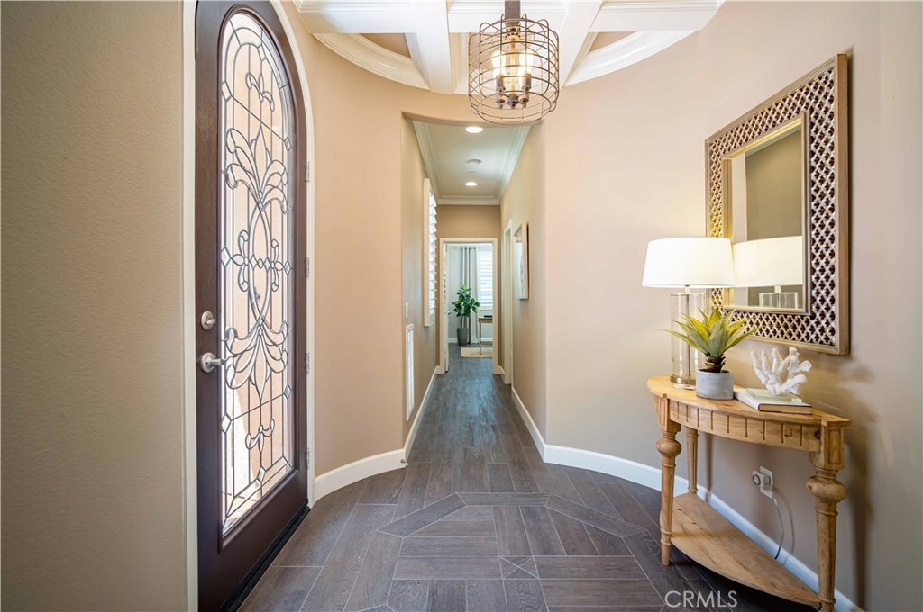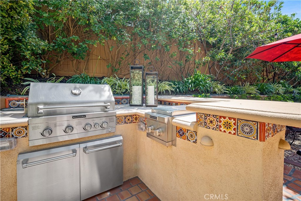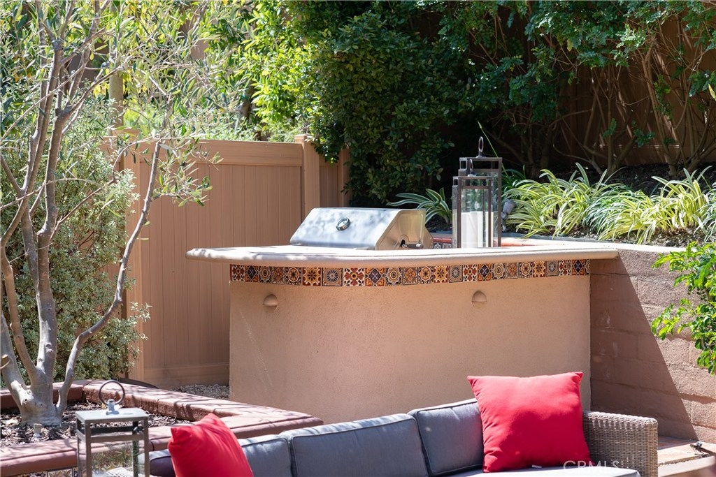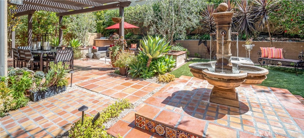 This immaculate custom designed Campanilla residence was masterfully created with a sense of luxury, visible from the moment you enter through the custom wrought iron private gated entrance. This entrance is paved with imported, hand crafted Spanish Adobe tiles, skillfully placed to perfection. The home boasts an Open Floor plan spanning over 2,700 sq ft, 4 Bedrooms, 3 Bathrooms, a Great Room, Loft, Balcony with views of the greens of the San Juan Hills Golf Course, and a Gourmet Kitchen. An oversized backyard, one of the largest in Campanilla, graces the rear exterior and enjoys a built-in fire pit, spacious seating area, outdoor kitchen, fountain, and patio cover. Notable upgrades include plantation shutters, wrought iron staircase, farm house sink, stainless steel appliances, hardwood and porcelain tile flooring, upgraded cabinetry, custom paint, ceiling fans, marble and stone countertops, closet organizers, epoxy garage floors, storage areas, and much, much more! The quality and craftsmanship of this home is unparalleled, representing a rare opportunity that will go quickly! This area is rich in history and culture. With a mild coastal climate, the weather is near-perfect year round. Centrally located to down town San Juan Capistrano, Equestrian Facilities, Orange County Beaches and Golf Courses, this property has a low property tax base, NO MELLO ROOS and Low HOA dues. You will not be disappointed!
