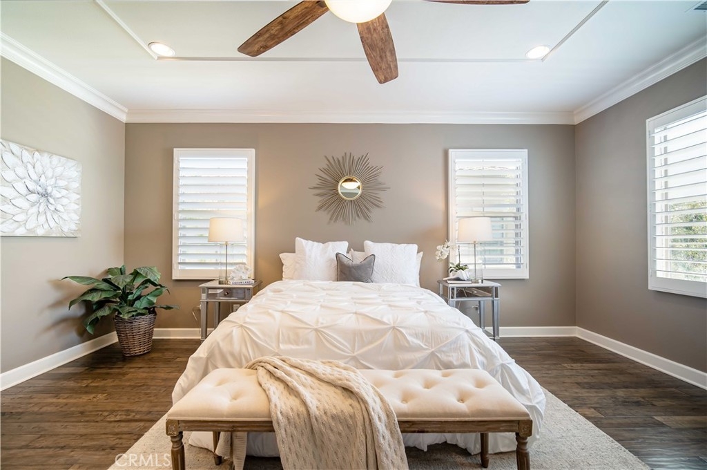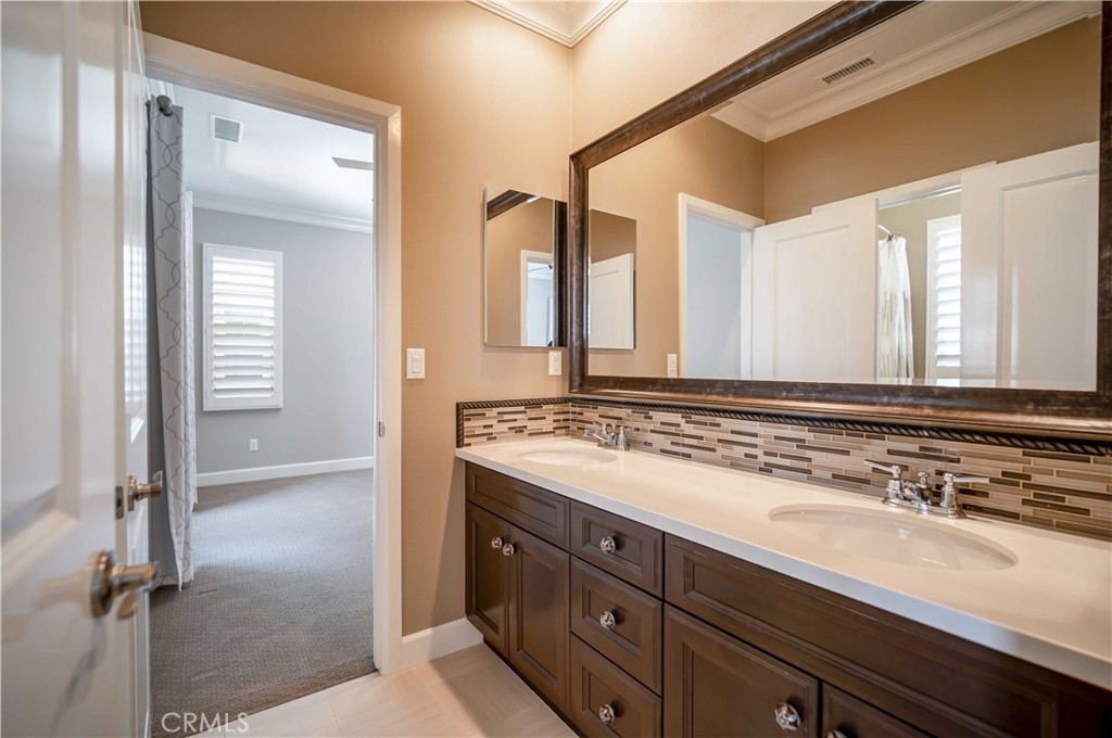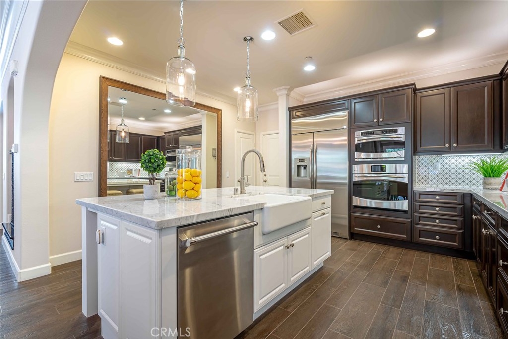 This immaculate custom designed Campanilla residence was masterfully created with a sense of luxury, visible from the moment you enter through the custom wrought iron private gated entrance. This entrance is paved with imported, hand crafted Spanish Adobe tiles, skillfully placed to perfection. The open concept floor plan boasts approximately 2,800 Sq.Ft. 5 Bedrooms, 3 Bathrooms, a Great Room, Loft (area was converted into an office/bedroom), Balcony with views of the greens of the San Juan Hills Golf Course, and a Gourmet Kitchen. An oversized backyard, one of the largest in Campanilla, graces the rear exterior and enjoys a built-in fire pit, spacious seating area, outdoor kitchen, fountain, and patio cover. Notable upgrades include plantation shutters, wrought iron staircase, farm house sink, stainless steel appliances, hardwood and porcelain tile flooring, upgraded cabinetry, custom paint, ceiling fans, marble and stone countertops, closet organizers, epoxy garage floors, storage areas, and much, much more! The quality and craftsmanship of this home is unparalleled, representing a rare opportunity that will go quickly! This area is rich in history and culture. With a mild coastal climate, the weather is near-perfect year round. Centrally located to downtown San Juan Capistrano, Equestrian Facilities, Orange County Beaches and Golf Courses, this property has a low property tax base, NO MELLO ROOS and Low HOA dues. You will not be disappointed!