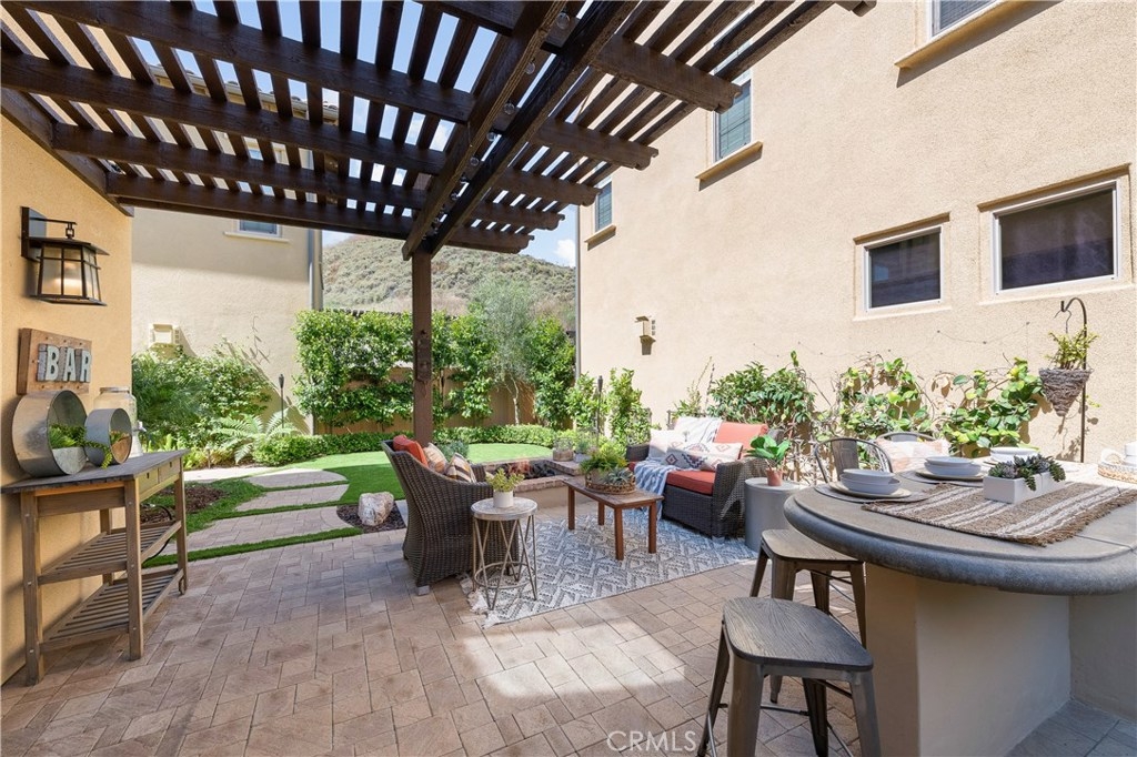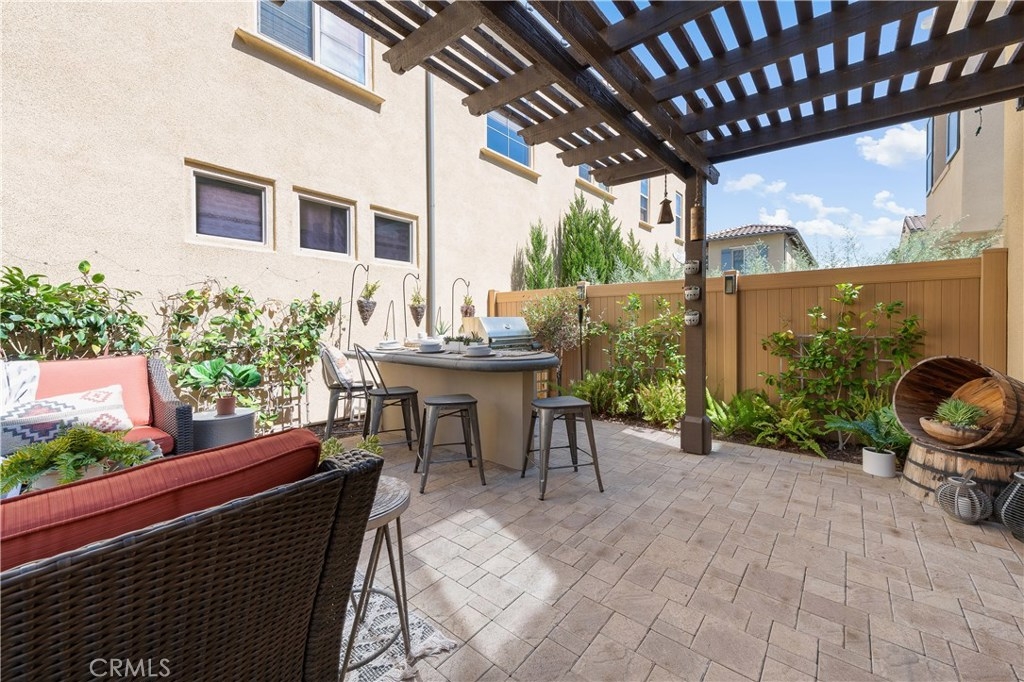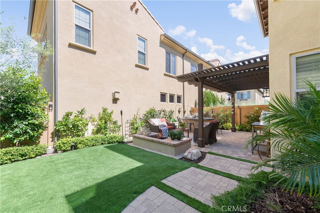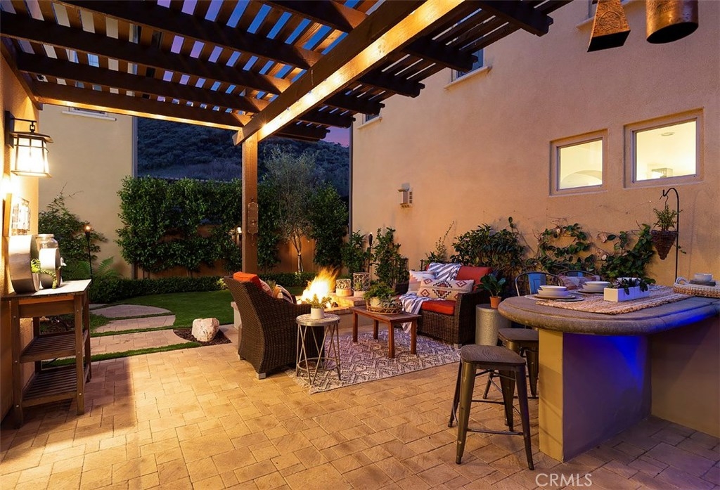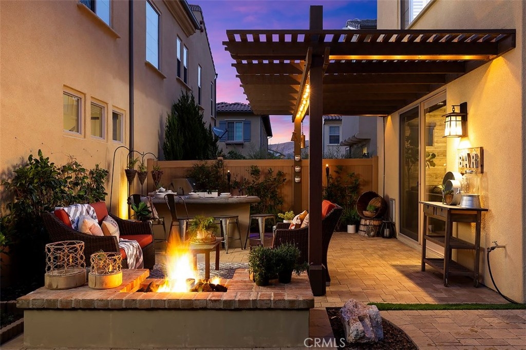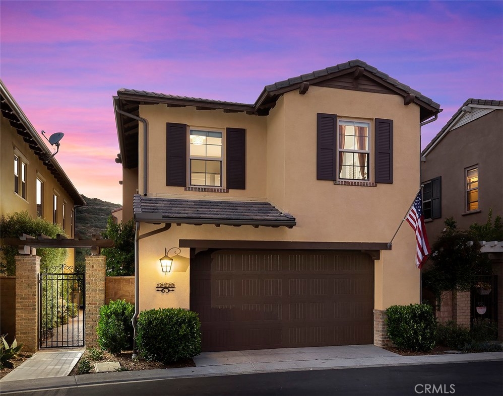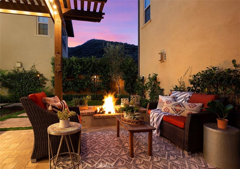 This home is an entertainer's dream allowing you to enjoy the Southern California weather & lifestyle all year long! Located in the prestigious gated community of Campanilla, this property offers an open concept floorplan with an indoor/outdoor feel, including high-end upgrades, one-of-a-kind features & a designer flair. A secure gated entry leads to the private backyard featuring custom hardscaping, landscaping, patio cover & a built-in outdoor kitchen. The spacious floor plan boasts 2159 Sq. Ft., 3 Beds, 2.5 Baths & large loft area. The gourmet kitchen offers white custom cabinetry, a large center work island, granite countertops and backsplash, stainless steel GE Profile appliances & opens to the spacious dining room & living area. The downstairs offers wide plank tile flooring, gas fireplace, custom built-in shelving & dual sliding glass doors creating a relaxing cross breeze. The master bedroom upstairs is spacious & airy with plantation shutters, large walk-in closet, en suite master bath with double vanities, separate shower & soaker tub. The two secondary bedrooms, a full bath, spacious loft and laundry room complete the upstairs. Upgrades include plantation shutters, wide plank flooring, upgraded carpet & padding, custom built-ins & wainscoting. Upstairs loft can easily be converted to 4th bedroom. The private backyard with built-in BBQ, bar area and patio cover, fire pit & lawn area offers stunning views of the San Juan Hills. NO MELLO ROOS. Low HOA & Tax Base.