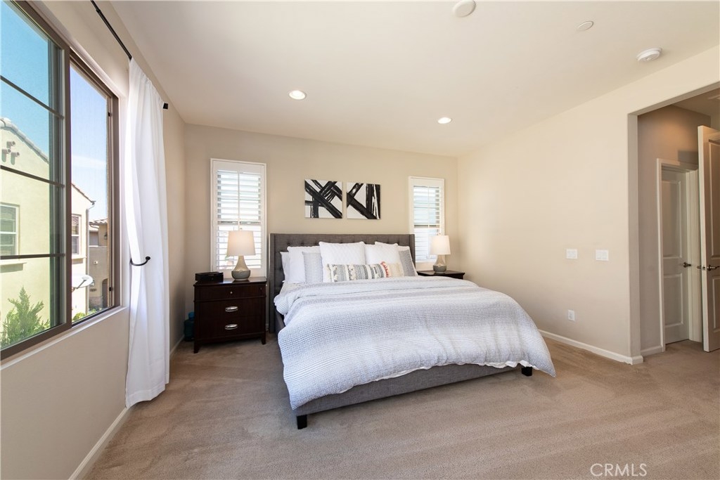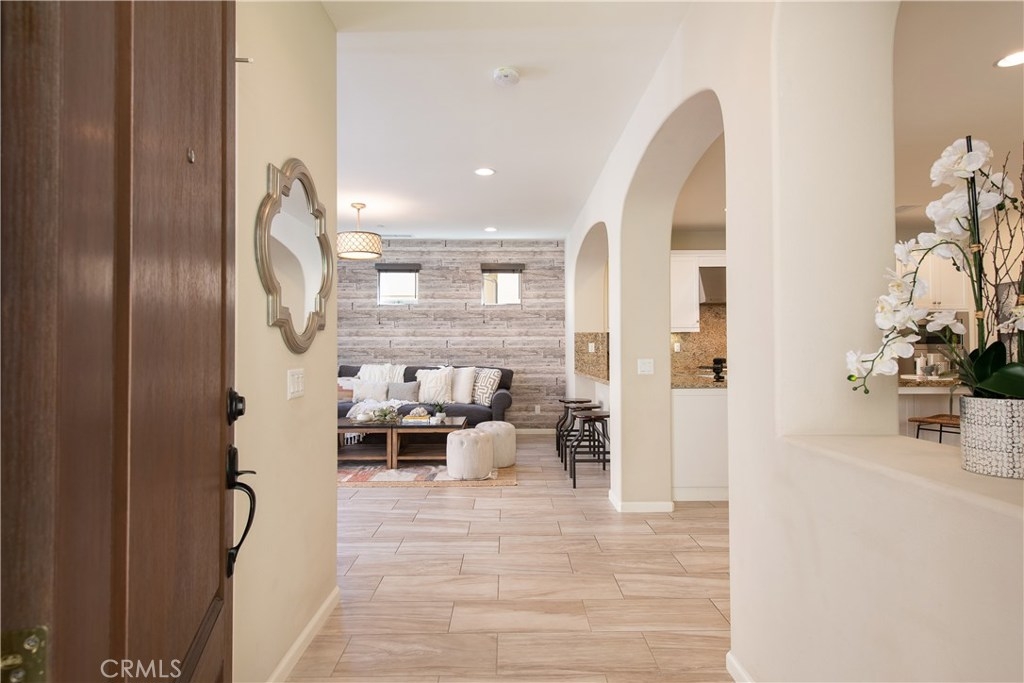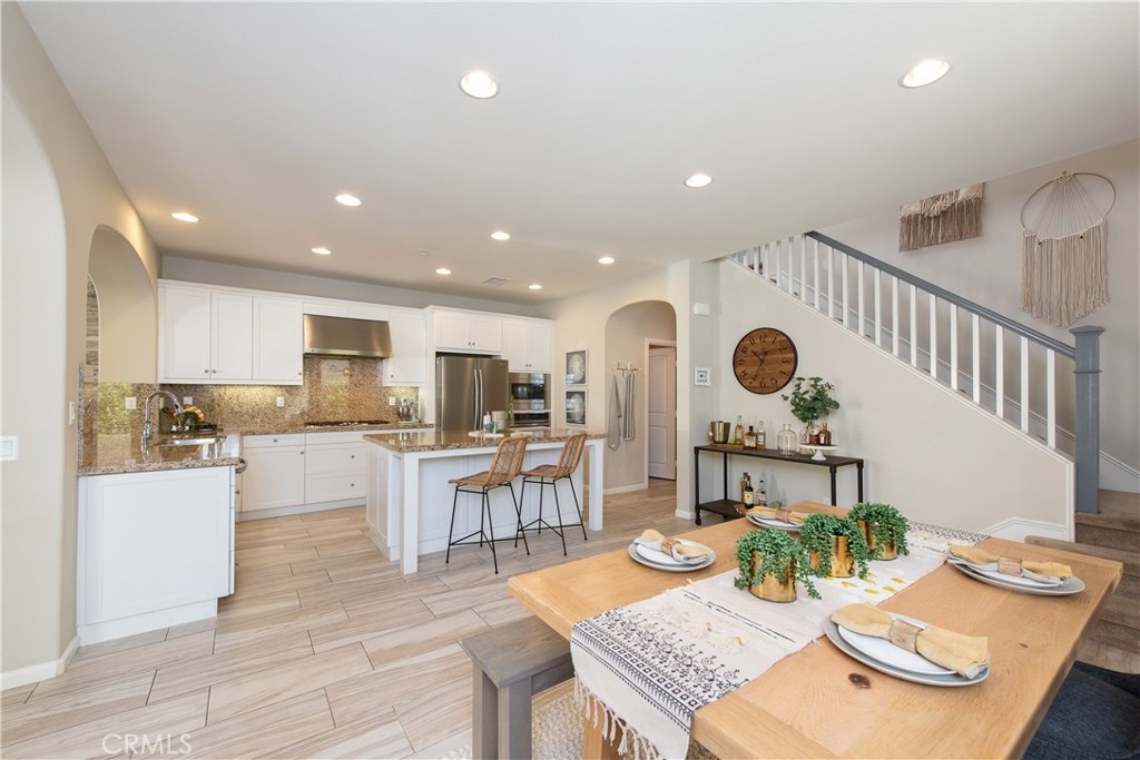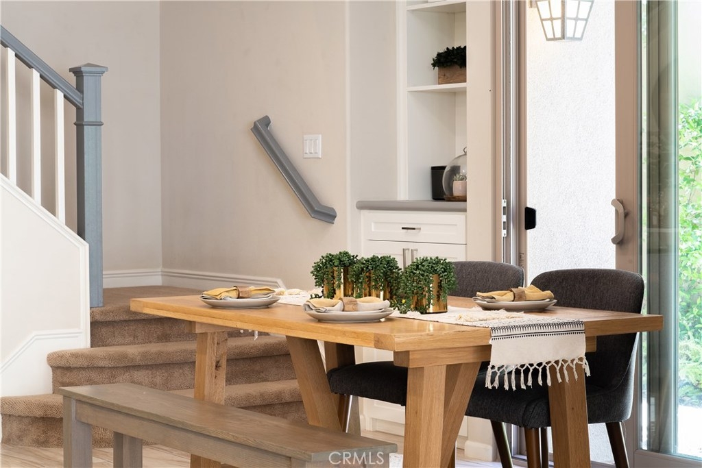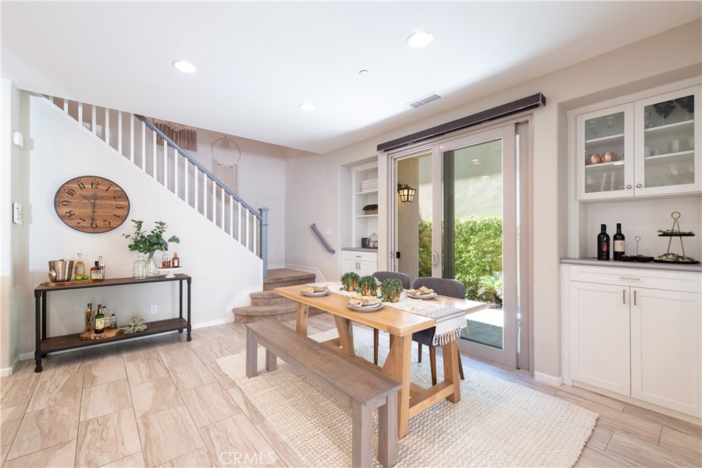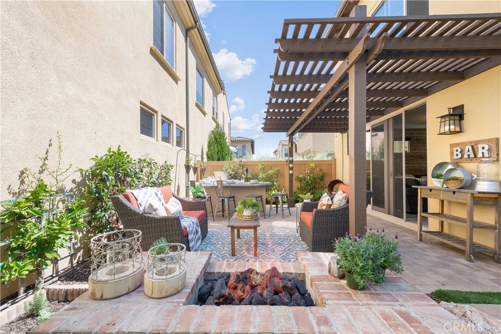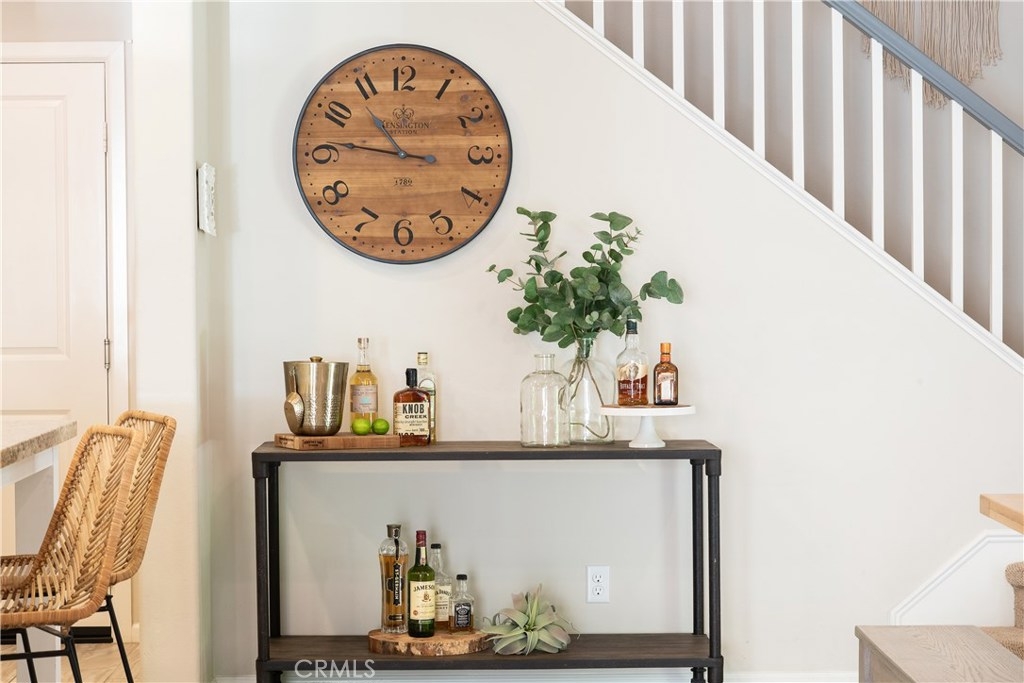 This home is an entertainer's dream allowing you to enjoy the Southern California weather & lifestyle all year long! Located in the prestigious gated community of Campanilla, this property offers an open concept floorplan with an indoor/outdoor feel, including high-end upgrades, one-of-a-kind features & a designer flair. A secure gated entry leads to the private backyard featuring custom hardscaping, landscaping, patio cover & a built-in outdoor kitchen. The spacious floor plan boasts 2159 Sq. Ft., 3 Beds, 2.5 Baths & large loft area. The gourmet kitchen offers white custom cabinetry, a large center work island, granite countertops and backsplash, stainless steel GE Profile appliances & opens to the spacious dining room & living area. The downstairs offers wide plank tile flooring, gas fireplace, custom built-in shelving & dual sliding glass doors creating a relaxing cross breeze. The master bedroom upstairs is spacious & airy with plantation shutters, large walk-in closet, en suite master bath with double vanities, separate shower & soaker tub. The two secondary bedrooms, a full bath, spacious loft and laundry room complete the upstairs. Upgrades include plantation shutters, wide plank flooring, upgraded carpet & padding, custom built-ins & wainscoting. Upstairs loft can easily be converted to 4th bedroom. The private backyard with built-in BBQ, bar area and patio cover, fire pit & lawn area offers stunning views of the San Juan Hills. NO MELLO ROOS. Low HOA & Tax Base.