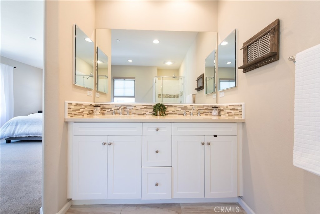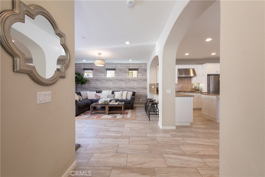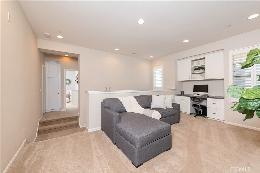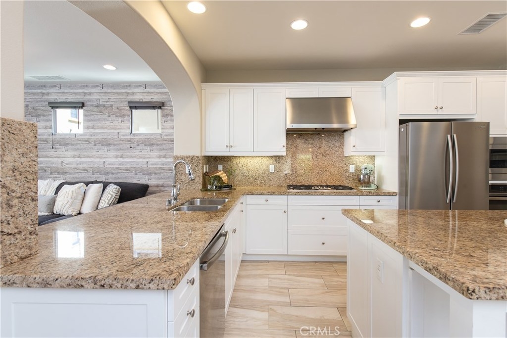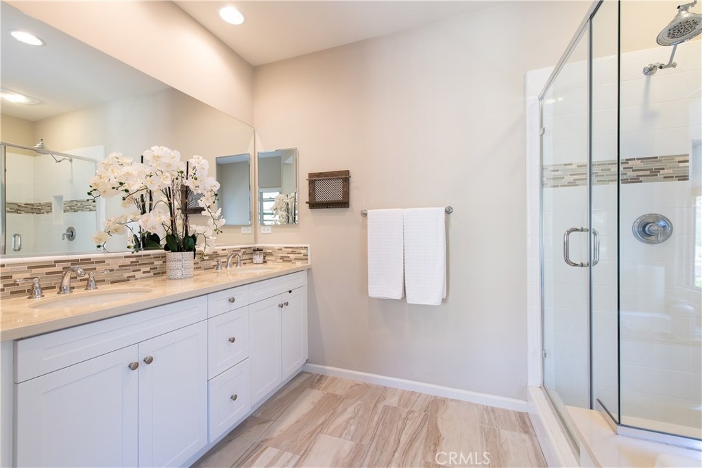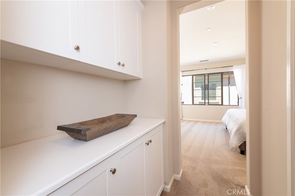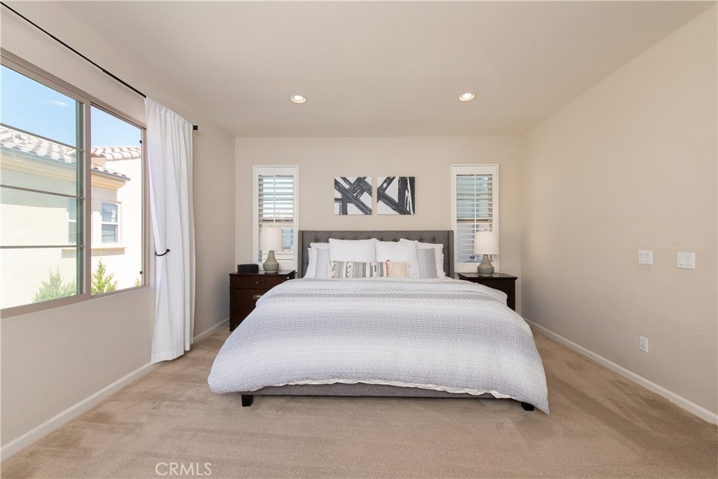 This home is an entertainer's dream allowing you to enjoy the Southern California weather & lifestyle all year long! Located in the prestigious gated community of Campanilla, this property offers an open concept floorplan with an indoor/outdoor feel, including high-end upgrades, one-of-a-kind features & a designer flair. A secure gated entry leads to the private backyard featuring custom hardscaping, landscaping, patio cover & a built-in outdoor kitchen. The spacious floor plan boasts 2159 Sq. Ft., 3 Beds, 2.5 Baths & large loft area. The gourmet kitchen offers white custom cabinetry, a large center work island, granite countertops and backsplash, stainless steel GE Profile appliances & opens to the spacious dining room & living area. The downstairs offers wide plank tile flooring, gas fireplace, custom built-in shelving & dual sliding glass doors creating a relaxing cross breeze. The master bedroom upstairs is spacious & airy with plantation shutters, large walk-in closet, en suite master bath with double vanities, separate shower & soaker tub. The two secondary bedrooms, a full bath, spacious loft and laundry room complete the upstairs. Upgrades include plantation shutters, wide plank flooring, upgraded carpet & padding, custom built-ins & wainscoting. Upstairs loft can easily be converted to 4th bedroom. The private backyard with built-in BBQ, bar area and patio cover, fire pit & lawn area offers stunning views of the San Juan Hills. NO MELLO ROOS. Low HOA & Tax Base.