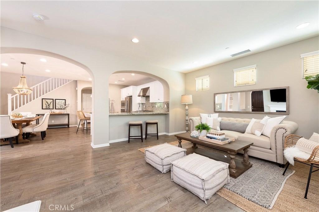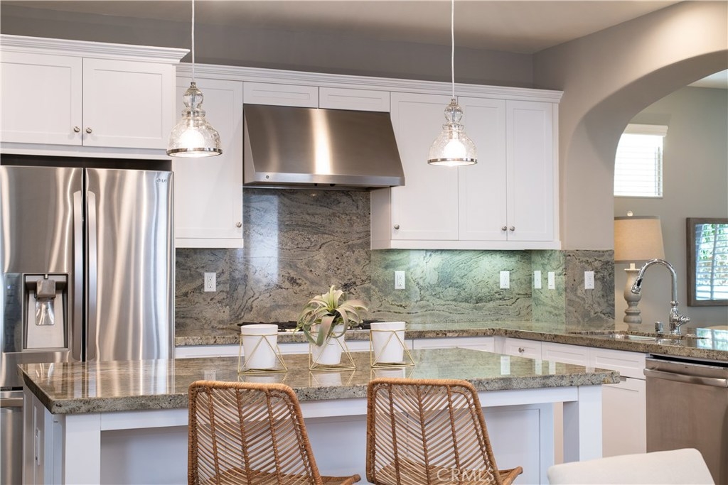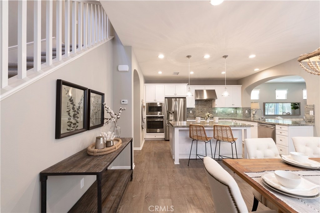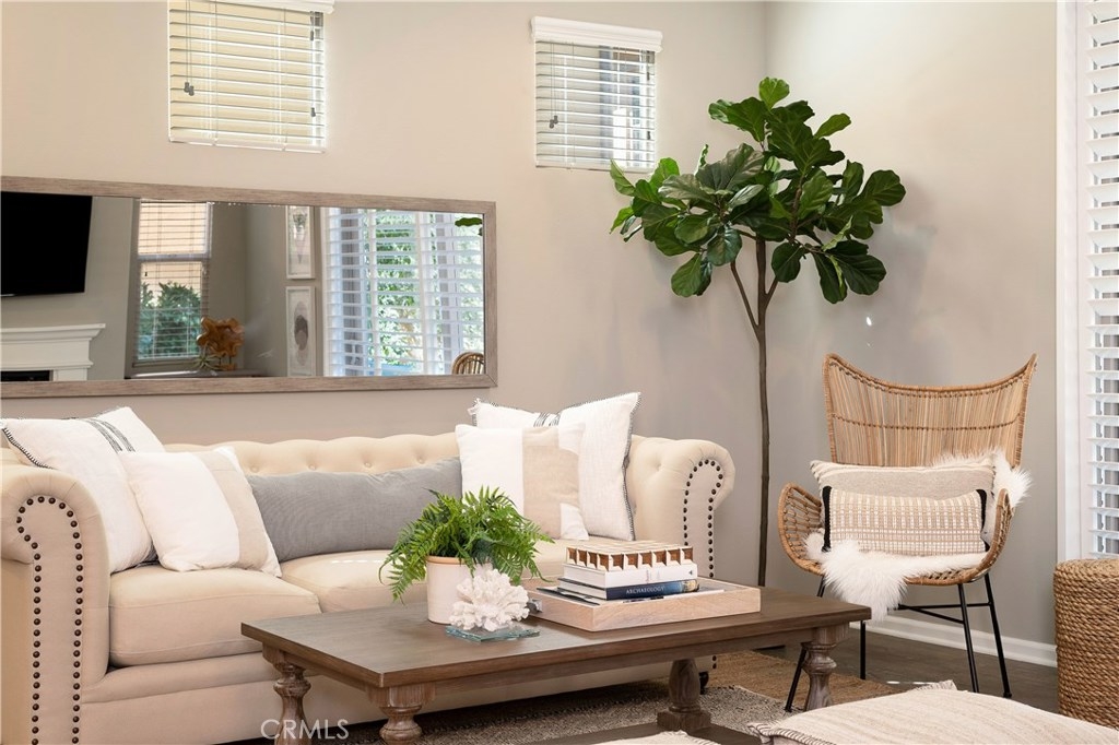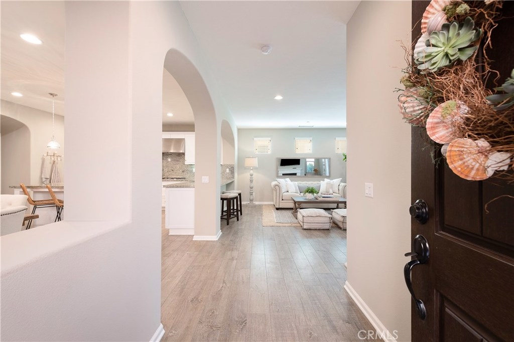NO MELLO ROOS! One of the best values in San Juan Capistrano, this home is an entertainer's dream allowing you to enjoy the Southern California weather & lifestyle all year long! Located in the prestigious gated community of San Juan Hills and Campanilla, this property offers an open concept floorplan with an indoor/outdoor feel, including high-end upgrades, one-of-a-kind features & a designer flair. A secure gated entry leads to the private backyard featuring custom hardscaping, landscaping, patio cover, fire pit, fountains and turf. The spacious floor plan boasts 2159 Sq. Ft., 3 Beds, 2.5 Baths & large loft area. The gourmet kitchen offers white custom cabinetry, a large center work island, granite countertops and backsplash, stainless steel GE Profile appliances & opens to the spacious dining room & living area. The downstairs offers wide plank flooring, gas fireplace, custom built-in shelving & dual sliding glass doors creating a relaxing cross breeze. The master bedroom upstairs is spacious & airy with plantation shutters, large walk-in closet, en suite master bath with double vanities, separate shower & soaker tub. The two secondary bedrooms, a full bath, spacious loft and laundry room complete the upstairs. Upgrades include plantation shutters, wide plank flooring, brand new carpet & padding, brand new paint throughout, custom built-ins and designer lighting fixtures. Upstairs loft can easily be converted to 4th bedroom. NO MELLO ROOS. Low HOA & Tax Base.