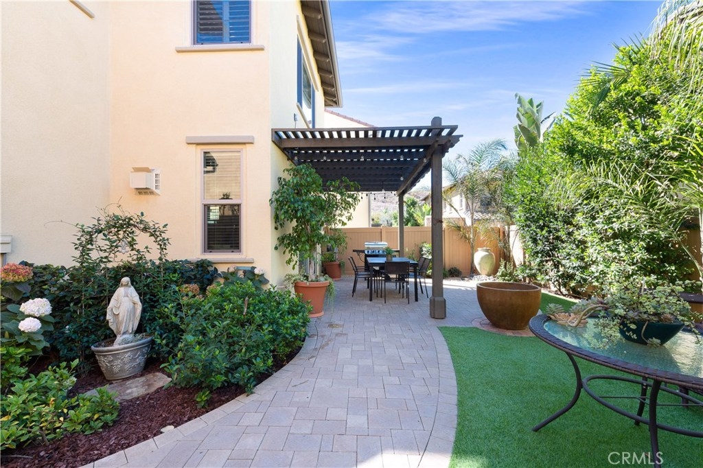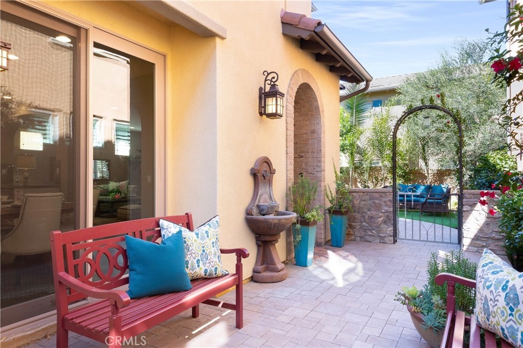 NO MELLO ROOS! One of the best values in San Juan Capistrano, this home is an entertainer's dream allowing you to enjoy the Southern California weather & lifestyle all year long! Located in the prestigious gated community of San Juan Hills and Campanilla, this property offers an open concept floorplan with an indoor/outdoor feel, including high-end upgrades, one-of-a-kind features & a designer flair. A secure gated entry leads to the private backyard featuring custom hardscaping, landscaping, patio cover, fire pit, fountains and turf. The spacious floor plan boasts 2159 Sq. Ft., 3 Beds, 2.5 Baths & large loft area. The gourmet kitchen offers white custom cabinetry, a large center work island, granite countertops and backsplash, stainless steel GE Profile appliances & opens to the spacious dining room & living area. The downstairs offers wide plank flooring, gas fireplace, custom built-in shelving & dual sliding glass doors creating a relaxing cross breeze. The master bedroom upstairs is spacious & airy with plantation shutters, large walk-in closet, en suite master bath with double vanities, separate shower & soaker tub. The two secondary bedrooms, a full bath, spacious loft and laundry room complete the upstairs. Upgrades include plantation shutters, wide plank flooring, brand new carpet & padding, brand new paint throughout, custom built-ins and designer lighting fixtures. Upstairs loft can easily be converted to 4th bedroom. NO MELLO ROOS. Low HOA & Tax Base.