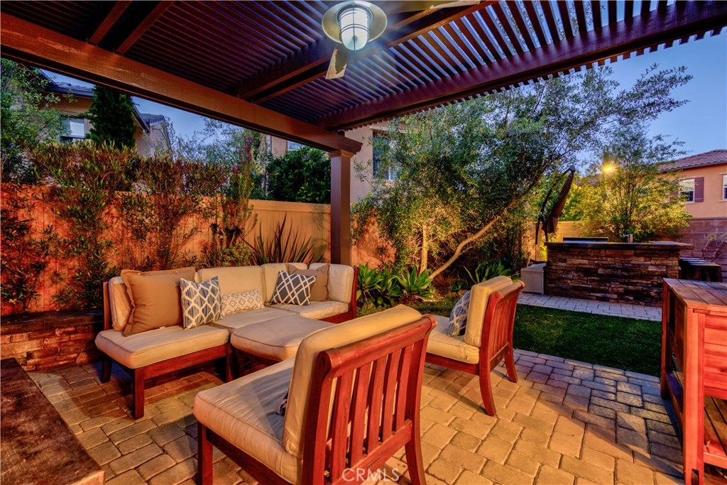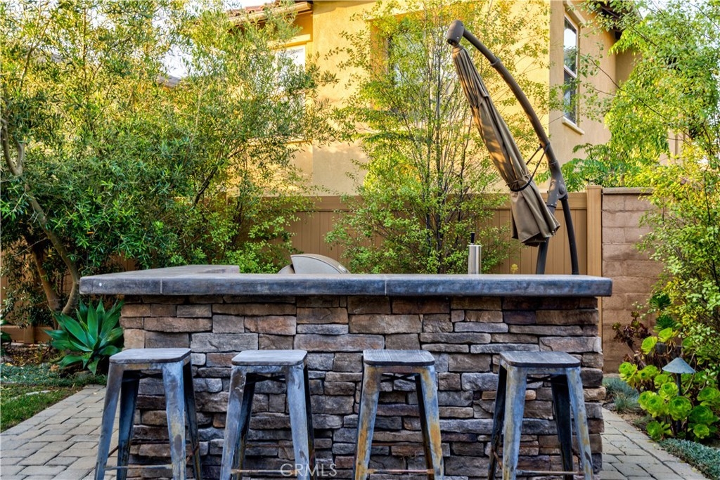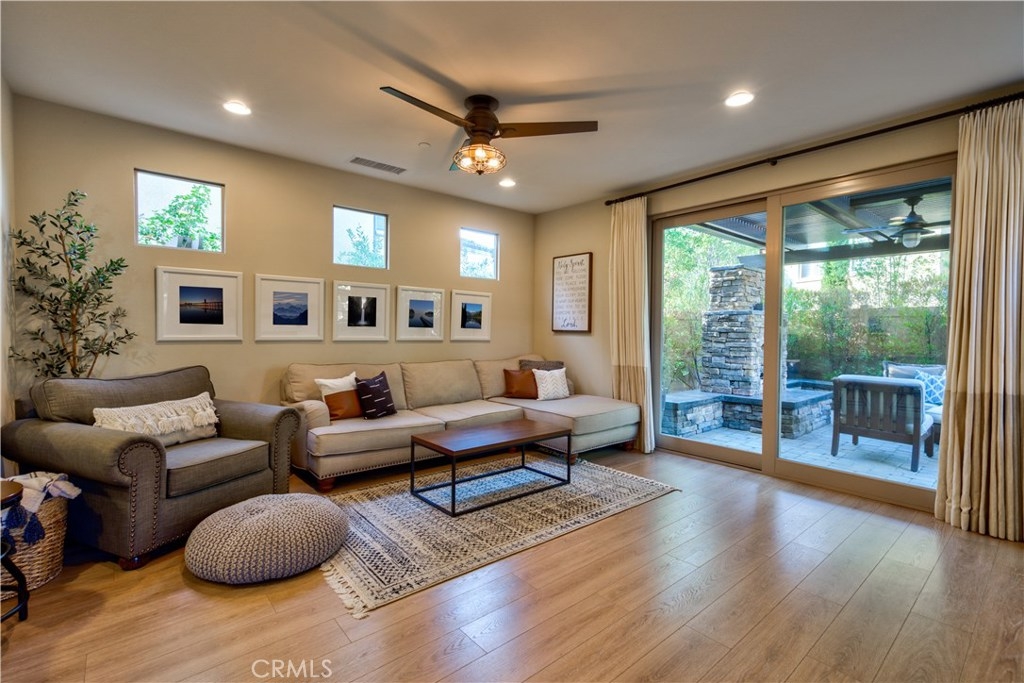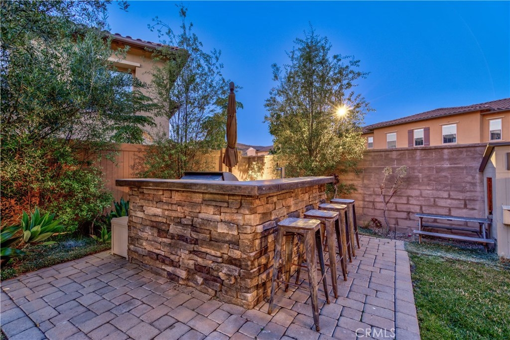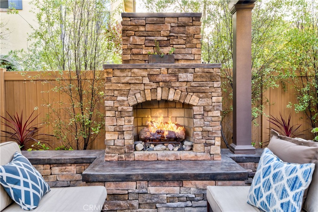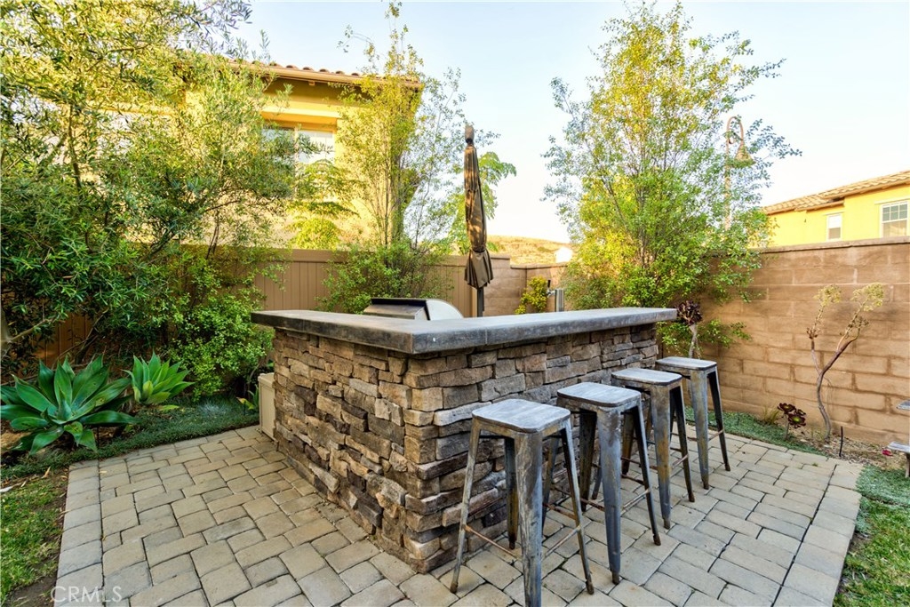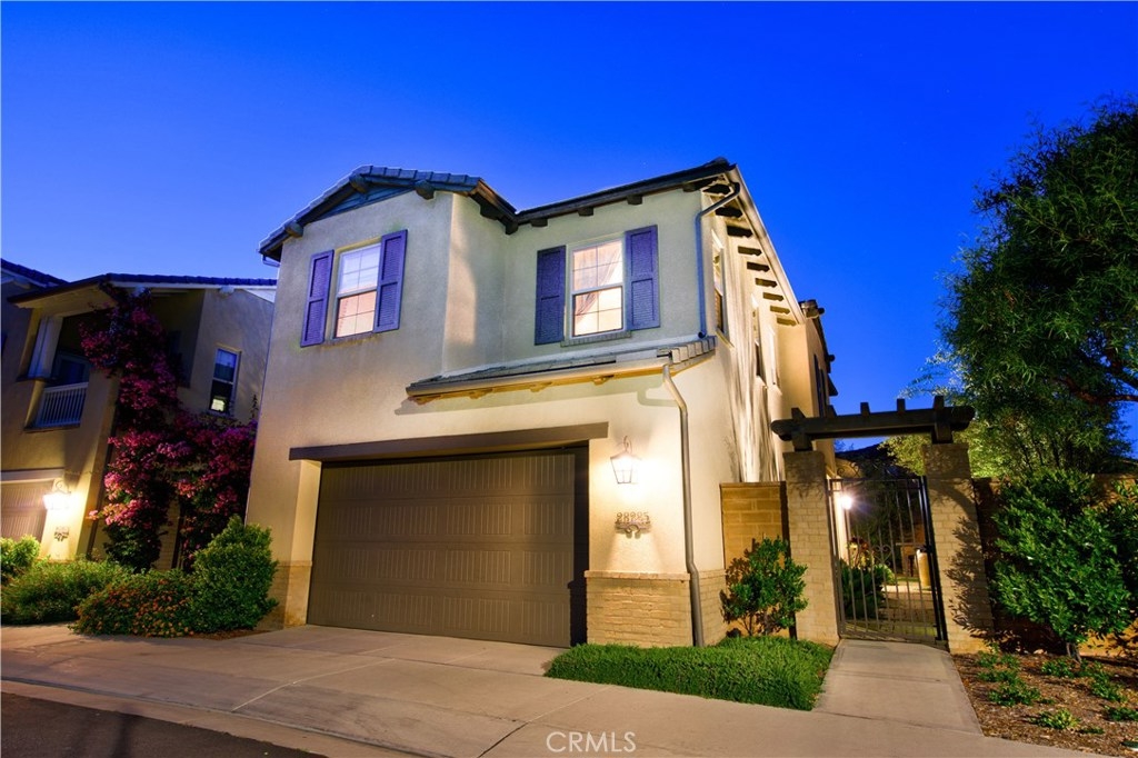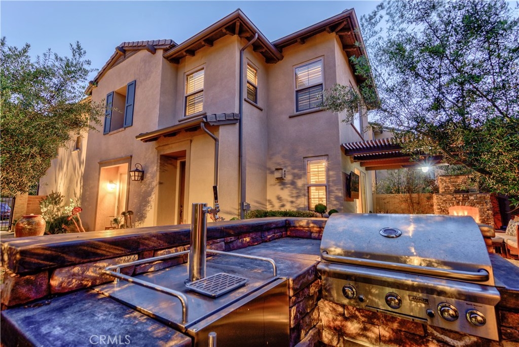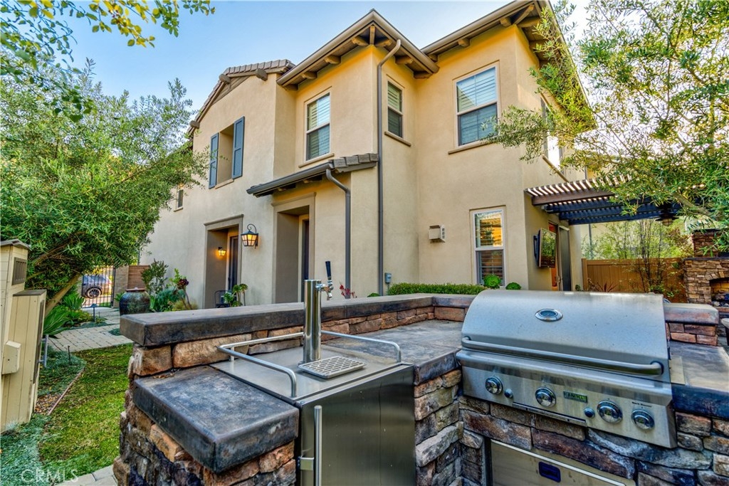 Welcome to this highly upgraded 4 bedroom, 3 bathroom home located in the gated community of Campanilla. It sits on a single loaded, corner lot that is very private. Custom pavers and olive trees greet you as you walk up to the front door. Open concept living at its best as you enter this gorgeous home! The gourmet kitchen is an entertainer’s delight with quartz countertops, stainless steel appliances and a designer back splash. In the center, a huge kitchen island with additional seating for your guests. There is a generous downstairs living space with 2 sets of oversized sliding doors from the kitchen and living room that lead out to the yard. Upstairs, the master suite offers a large walk-in closet, mountain views and a builder upgraded 5 piece bathroom. The loft was converted into a beautiful bedroom with custom windows, a large sliding barn door, wall accents and recessed lights. Upstairs laundry and mountain views from the two additional upstairs bedrooms. The outdoor living space boasts a custom stone fireplace, patio cover, ceiling fan and outdoor TV. The built in BBQ with fridge and seating for 8 will keep you entertained all year. Southern California living at its best! Low HOA and NO Mello Roos!!