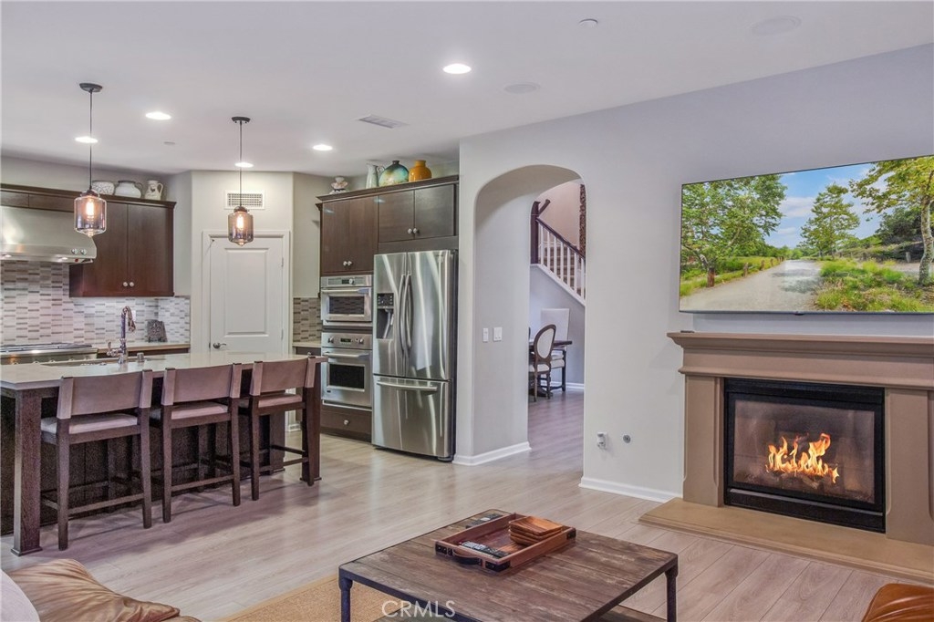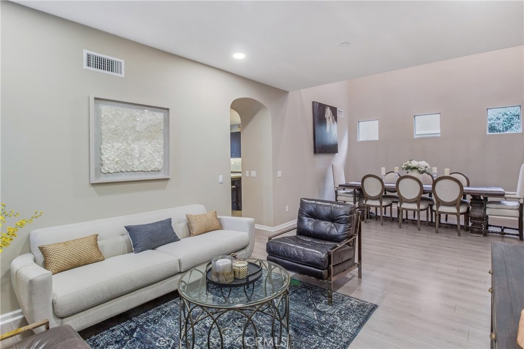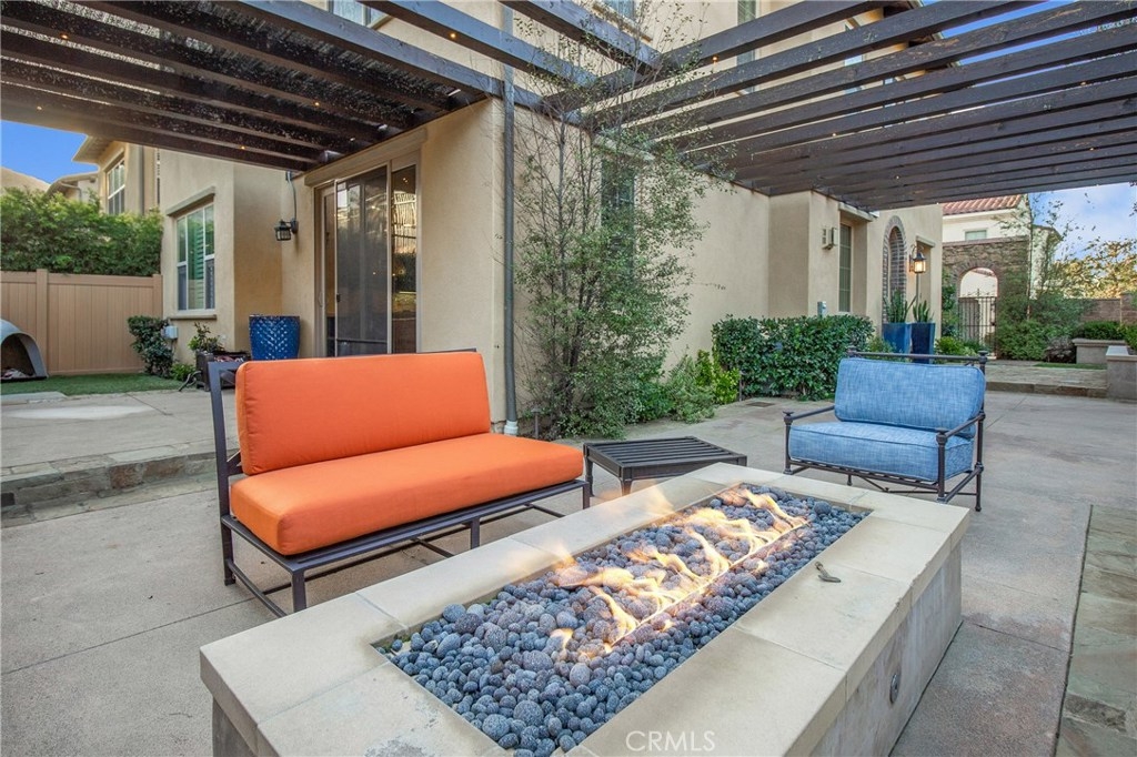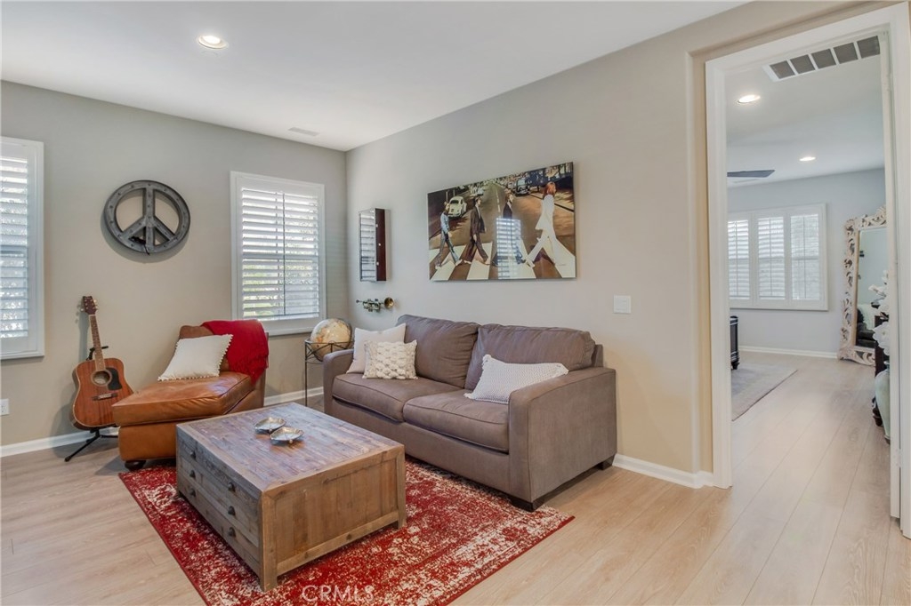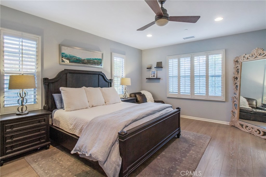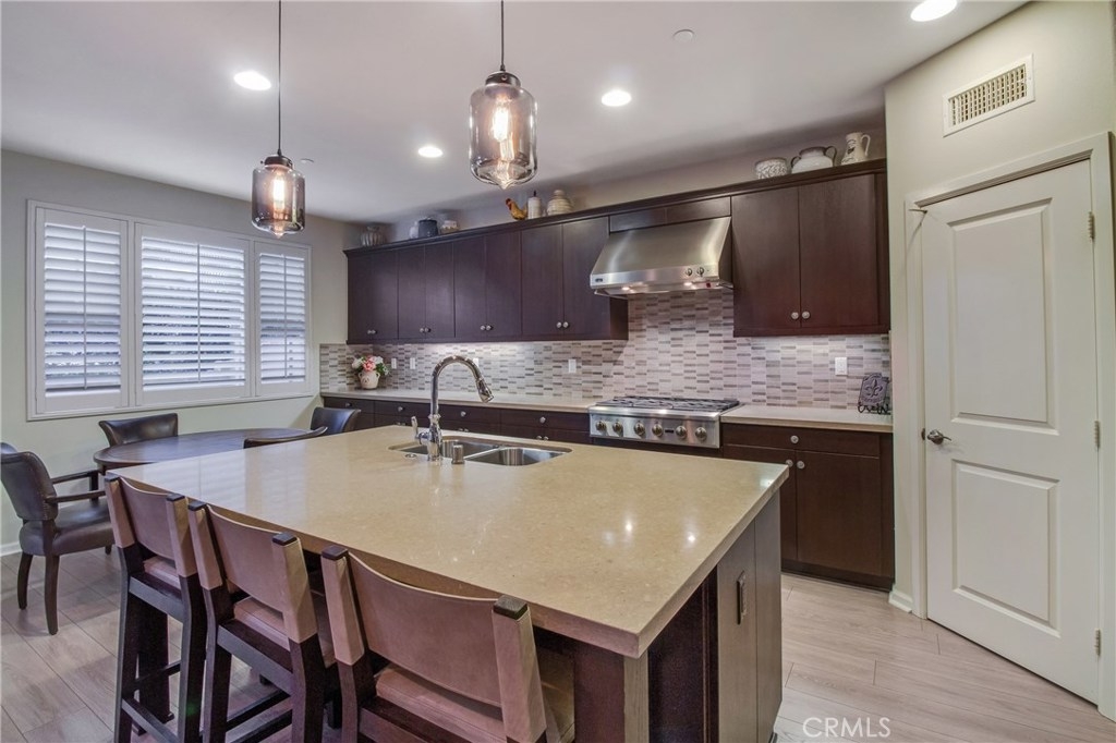Nestled beside the picturesque hills of San Juan in the distinguished gated community of Campanilla, this corner lot property has many high-end features and amenities. The gated entry leads to a private courtyard and private backyard that features professional hardscape and landscape. The open floor plan boasts a spacious kitchen featuring a large center island with sink, custom tile backsplash, quartz countertops and stainless steel appliances which include built-in oven & microwave, 6 burner gas range, hood, dishwasher, and refrigerator. The kitchen looks out to the living room with a cozy gas fireplace surround sound and access to the outdoor entertainment area which is professionally hardscaped with a spectacular built-in gas fire pit. Exquisite wide plank wood-look flooring sprawls throughout the downstairs and upstairs living areas. The bright and spacious master suite features plantation shutters and a luxurious en suite that offers a large soaking tub, separate Ceasterstone counter vanities, a glass enclosed shower and a walk-in closet with custom cabinets. The upstairs is completed by 3 additional bedrooms, a full bath, the laundry room and a loft. A fifth bedroom and a full bath are located downstairs as well. Low HOA dues, and no Mello Roos.