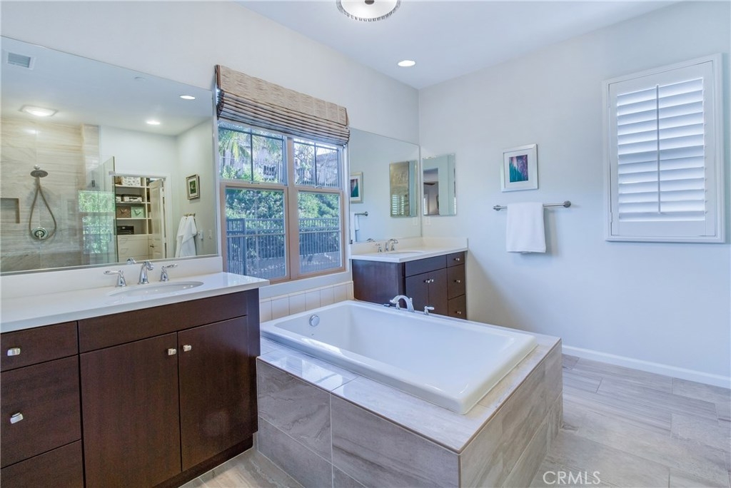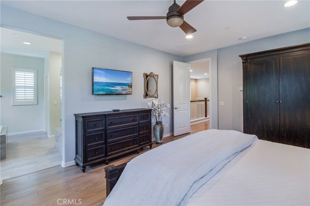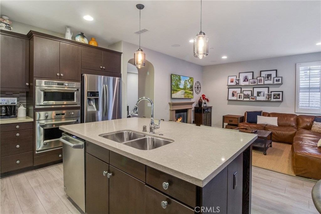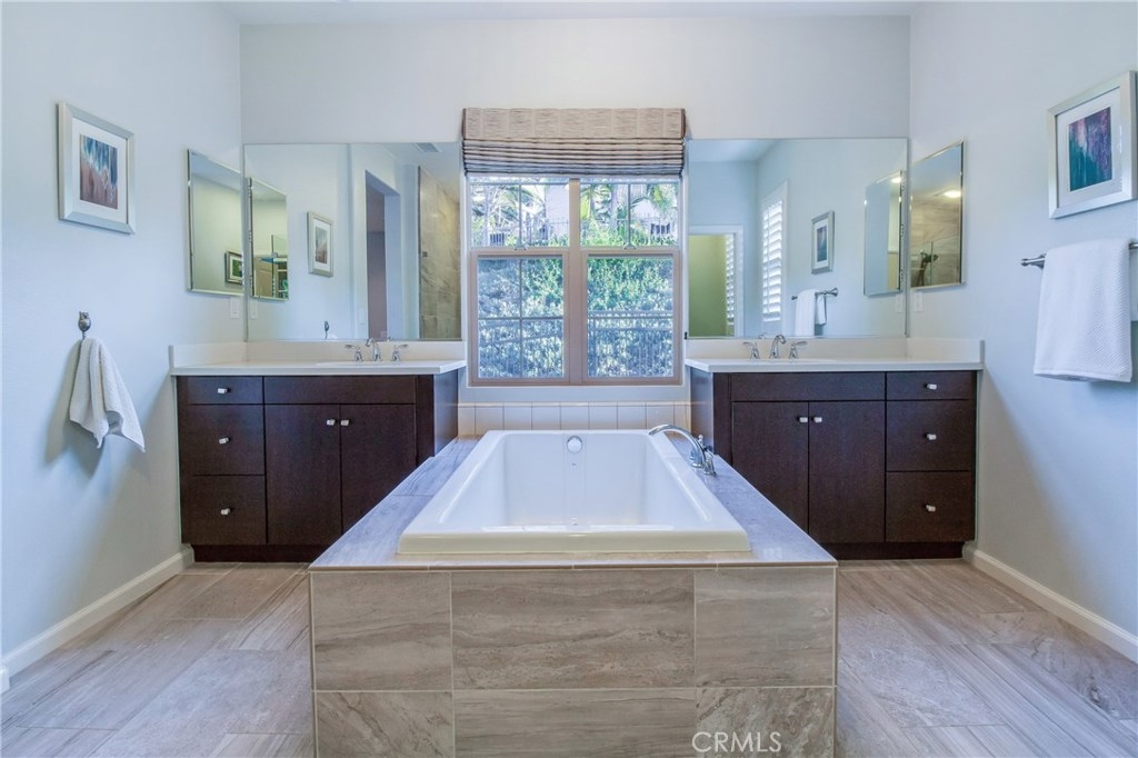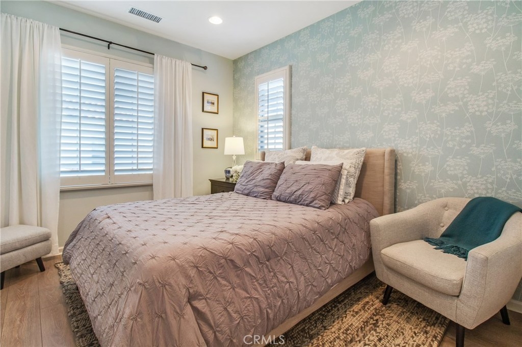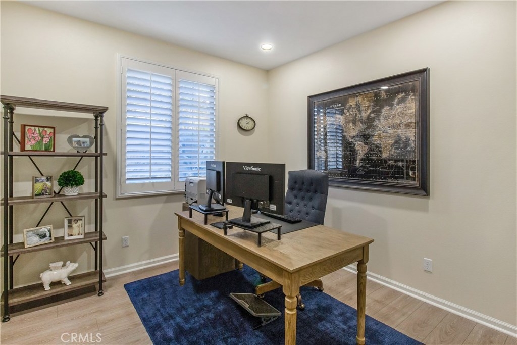Nestled beside the picturesque hills of San Juan in the distinguished gated community of Campanilla, this corner lot property has many high-end features and amenities. The gated entry leads to a private courtyard and private backyard that features professional hardscape and landscape. The open floor plan boasts a spacious kitchen featuring a large center island with sink, custom tile backsplash, quartz countertops and stainless steel appliances which include built-in oven & microwave, 6 burner gas range, hood, dishwasher, and refrigerator. The kitchen looks out to the living room with a cozy gas fireplace surround sound and access to the outdoor entertainment area which is professionally hardscaped with a spectacular built-in gas fire pit. Exquisite wide plank wood-look flooring sprawls throughout the downstairs and upstairs living areas. The bright and spacious master suite features plantation shutters and a luxurious en suite that offers a large soaking tub, separate Ceasterstone counter vanities, a glass enclosed shower and a walk-in closet with custom cabinets. The upstairs is completed by 3 additional bedrooms, a full bath, the laundry room and a loft. A fifth bedroom and a full bath are located downstairs as well. Low HOA dues, and no Mello Roos.