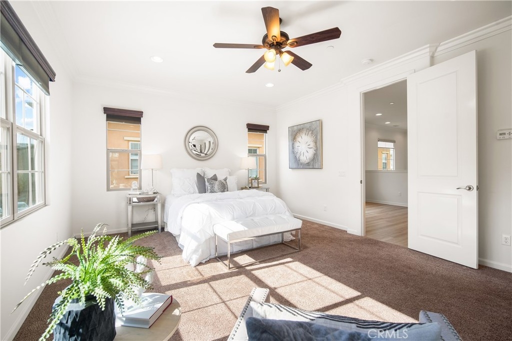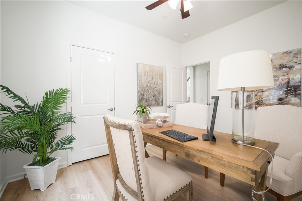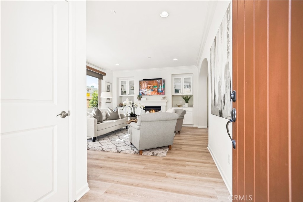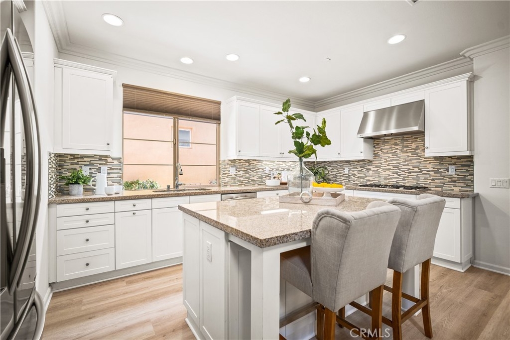 Premium VIEW LOT! Gracefully set amongst the rolling hills of San Juan Capistrano, this 4 Bedroom, 3 Bathroom entertainer’s residence offers private and tranquil living.The open floor plan spanning over 2,400 sq. ft. has a comfortable family room with cozy fireplace opening to the dining room and the gourmet kitchen with a guest bedroom completing the main floor with a sophisticated flair. The kitchen features white cabinetry, granite countertops, stainless steel appliances, recessed lighting, and walk- in pantry with shelving. Proceed to the upper level and enjoy, a spacious master suite, 2 large secondary bedrooms with balcony, and a sizable loft. The master suite, with panoramic views and privacy, features a luxurious bathroom with dual sinks, his-and -her closets, stone countertops, oversized soaking tub, and a spa-like shower. The private, well-manicured backyard is ideal for enjoying the tranquil, zen-like surroundings. Other deluxe features include new luxury vinyl flooring throughout, freshly painted, custom built-ins, crown moldings, additional storage, and so much more. This is an exceptional place to call home. Gated Community with No Mello Roos and Low HOA dues.