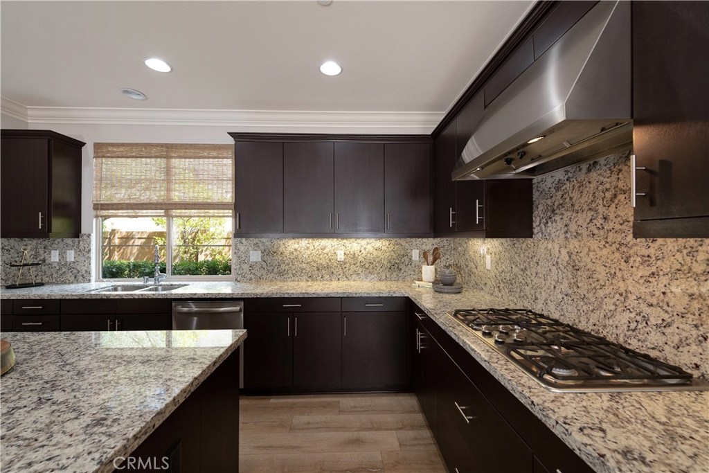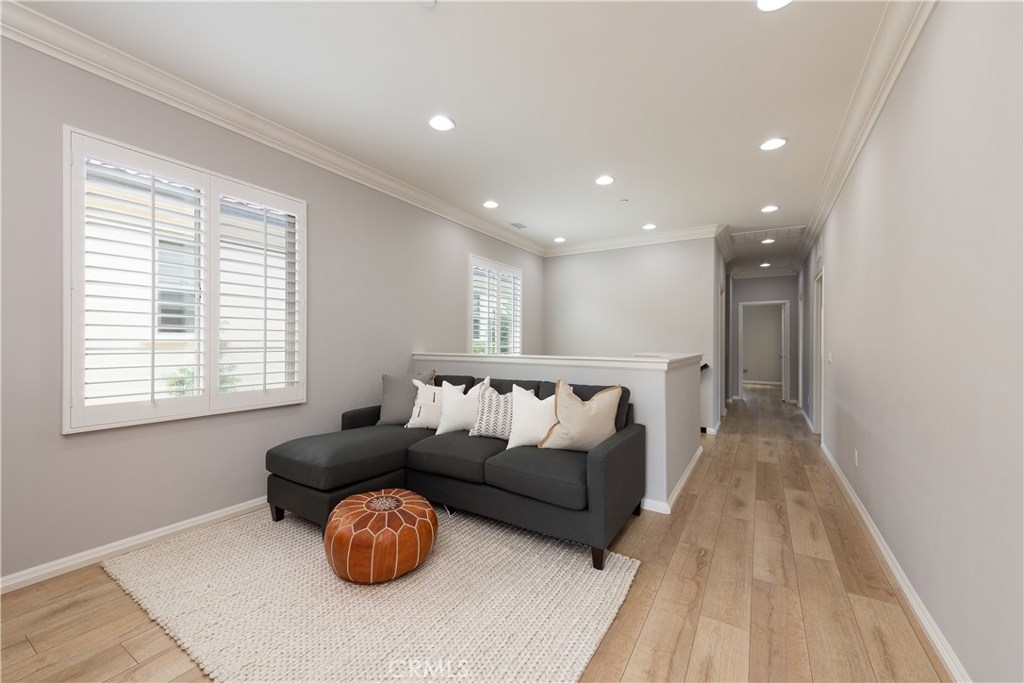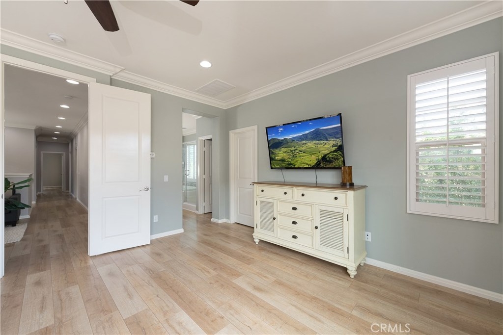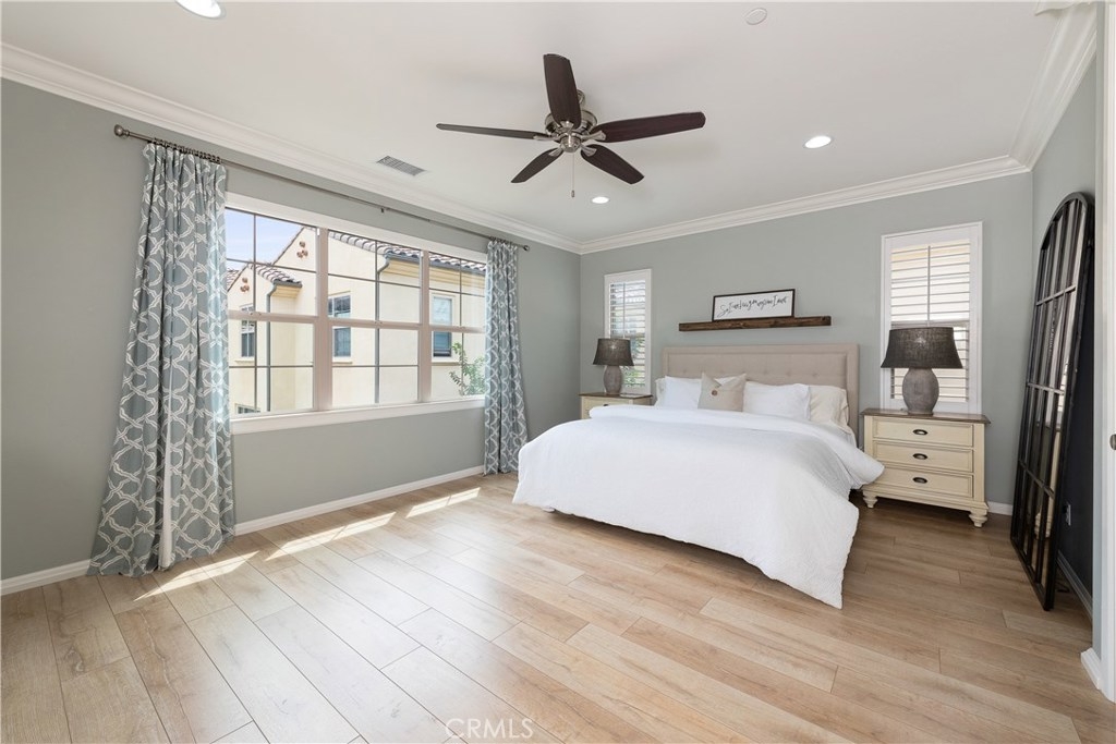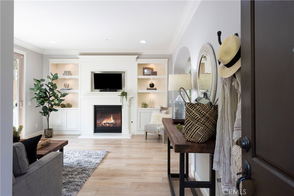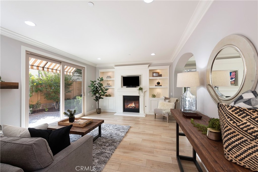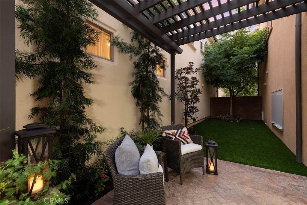NO MELLO ROOS! Are you looking for an amazing home AND an amazing community? Then, this is the one. This turnkey property offers high-end amenities & designer flair. A secure gated entry leads to the private wrap around yard featuring custom hardscaping, lush landscaping, trellis, fire pit and boasts over $100,000 in upgrades in the backyard alone. The open concept plan boasts almost 2500 Sq. Ft.,4 Beds, 3 Baths & large loft area. The gourmet kitchen offers chic upgraded custom cabinetry, a large center work island, granite countertops and back splash, stainless steel GE Profile appliances & walk-in pantry. The kitchen & living areas are an entertainers dream with gas fireplace, custom built-in shelving & two sets of sliding glass doors that offer an amazing cross breeze & flow easily into the backyard; maximizing the indoor/outdoor living afforded by the Southern California lifestyle. A downstairs bedroom, which is wheelchair accessible offers a large closet with sliding barn door and pocket door. The master is spacious & airy with plantation shutters, dual walk-in closets, en Suite master bath with double vanities, shower & tub. The two secondary upstairs bedrooms, a full bath with dual vanities, spacious loft and large laundry room complete the upstairs. Upgrades include plantation shutters throughout, 6" baseboard, custom crown moulding, wide plank flooring throughout both levels, custom built-in garage cabinetry & overhead storage. NO MELLO ROOS. Low HOA & Taxes.