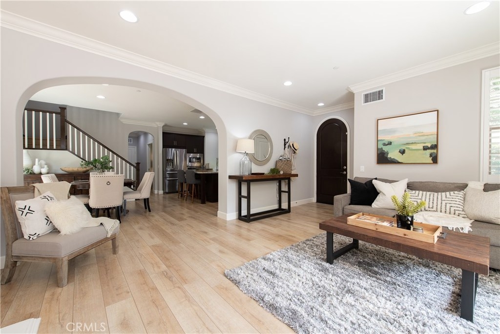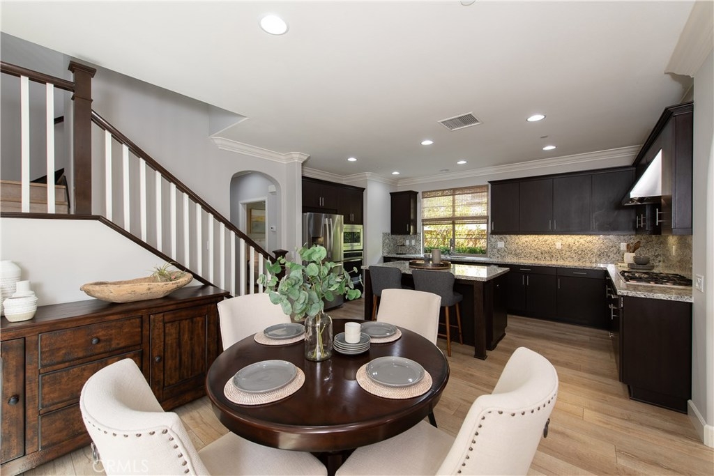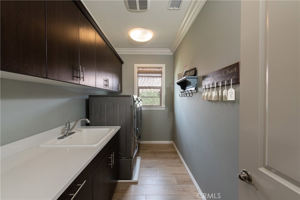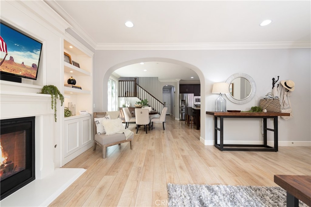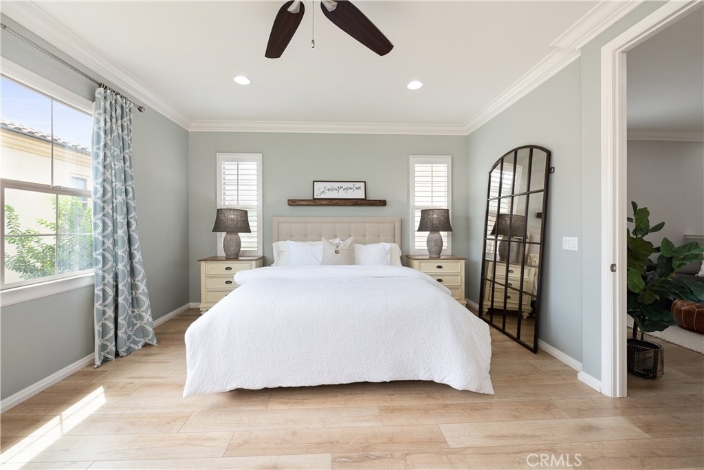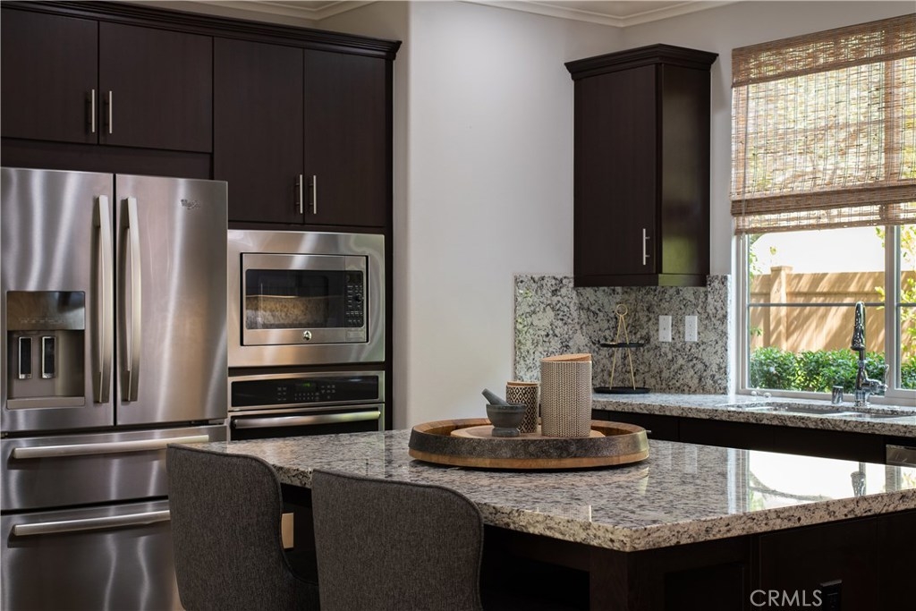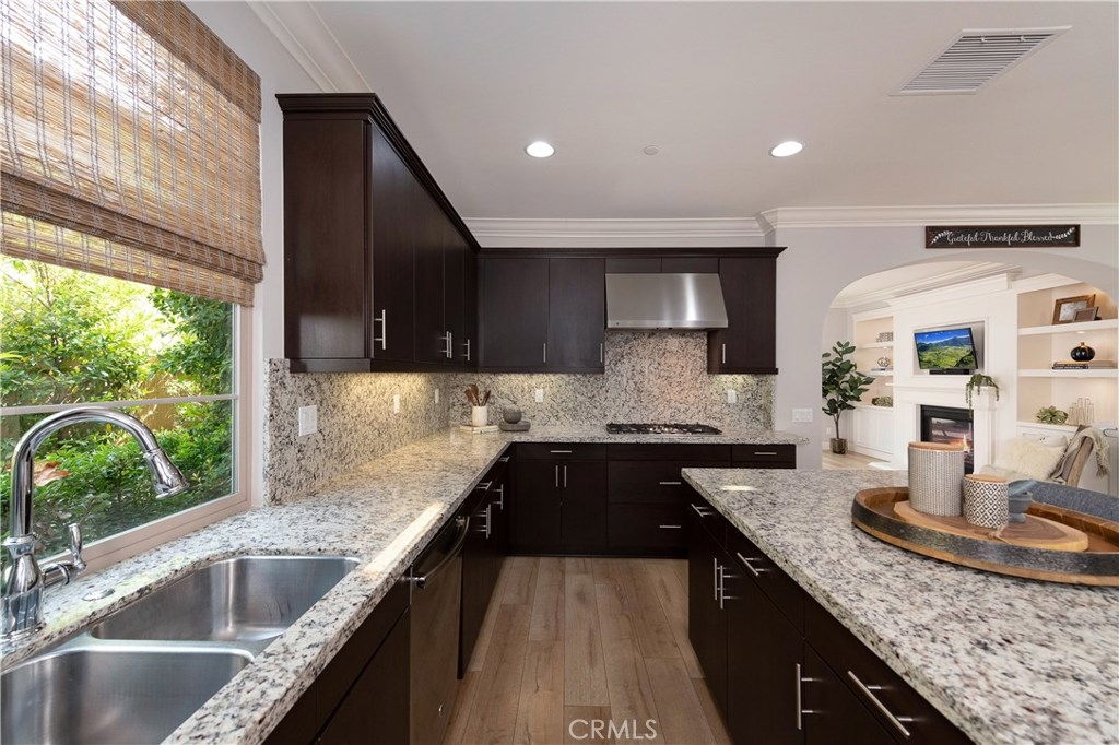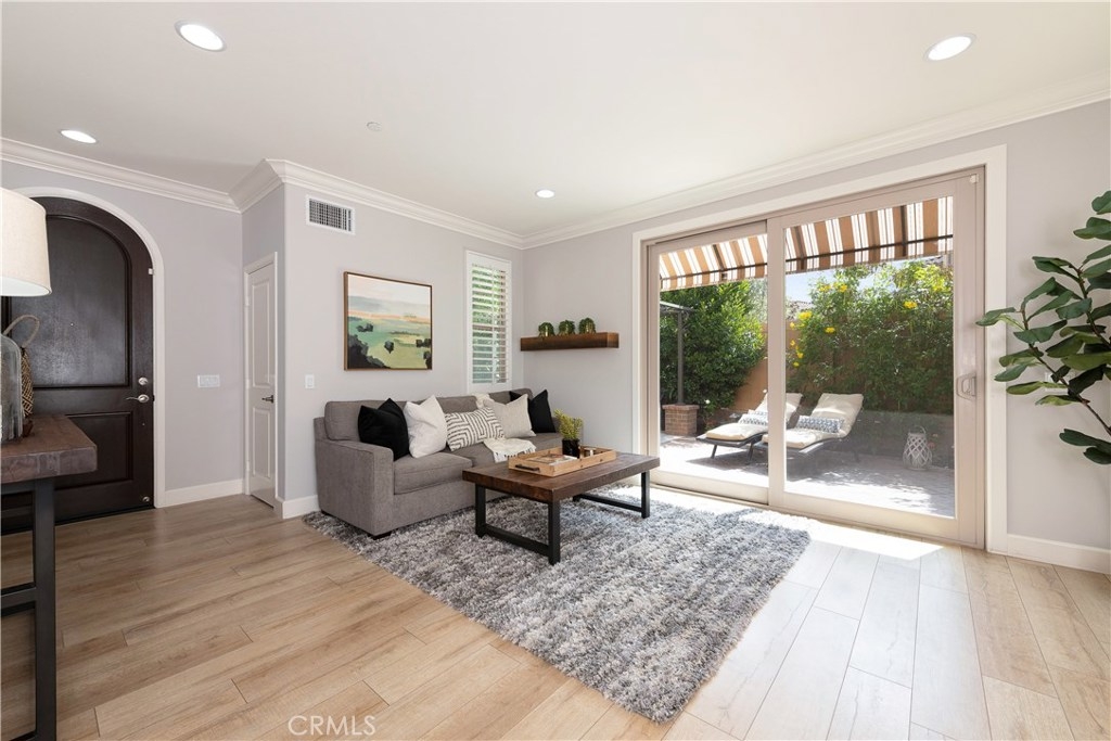 NO MELLO ROOS! Are you looking for an amazing home AND an amazing community? Then, this is the one. This turnkey property offers high-end amenities & designer flair. A secure gated entry leads to the private wrap around yard featuring custom hardscaping, lush landscaping, trellis, fire pit and boasts over $100,000 in upgrades in the backyard alone. The open concept plan boasts almost 2500 Sq. Ft.,4 Beds, 3 Baths & large loft area. The gourmet kitchen offers chic upgraded custom cabinetry, a large center work island, granite countertops and back splash, stainless steel GE Profile appliances & walk-in pantry. The kitchen & living areas are an entertainers dream with gas fireplace, custom built-in shelving & two sets of sliding glass doors that offer an amazing cross breeze & flow easily into the backyard; maximizing the indoor/outdoor living afforded by the Southern California lifestyle. A downstairs bedroom, which is wheelchair accessible offers a large closet with sliding barn door and pocket door. The master is spacious & airy with plantation shutters, dual walk-in closets, en Suite master bath with double vanities, shower & tub. The two secondary upstairs bedrooms, a full bath with dual vanities, spacious loft and large laundry room complete the upstairs. Upgrades include plantation shutters throughout, 6" baseboard, custom crown moulding, wide plank flooring throughout both levels, custom built-in garage cabinetry & overhead storage. NO MELLO ROOS. Low HOA & Taxes.