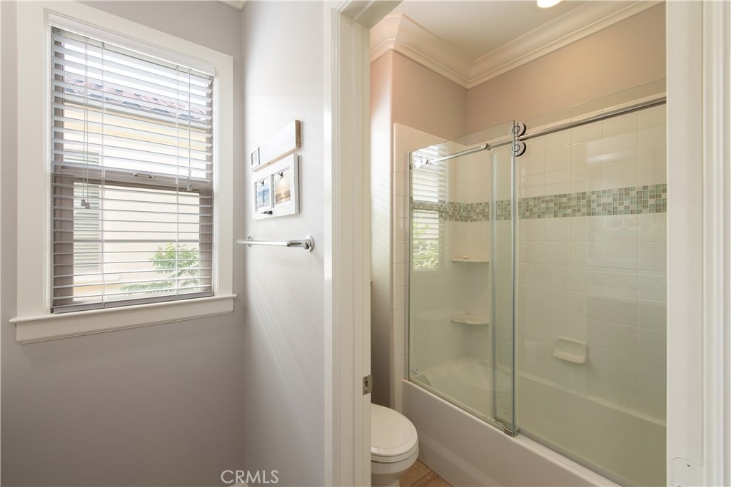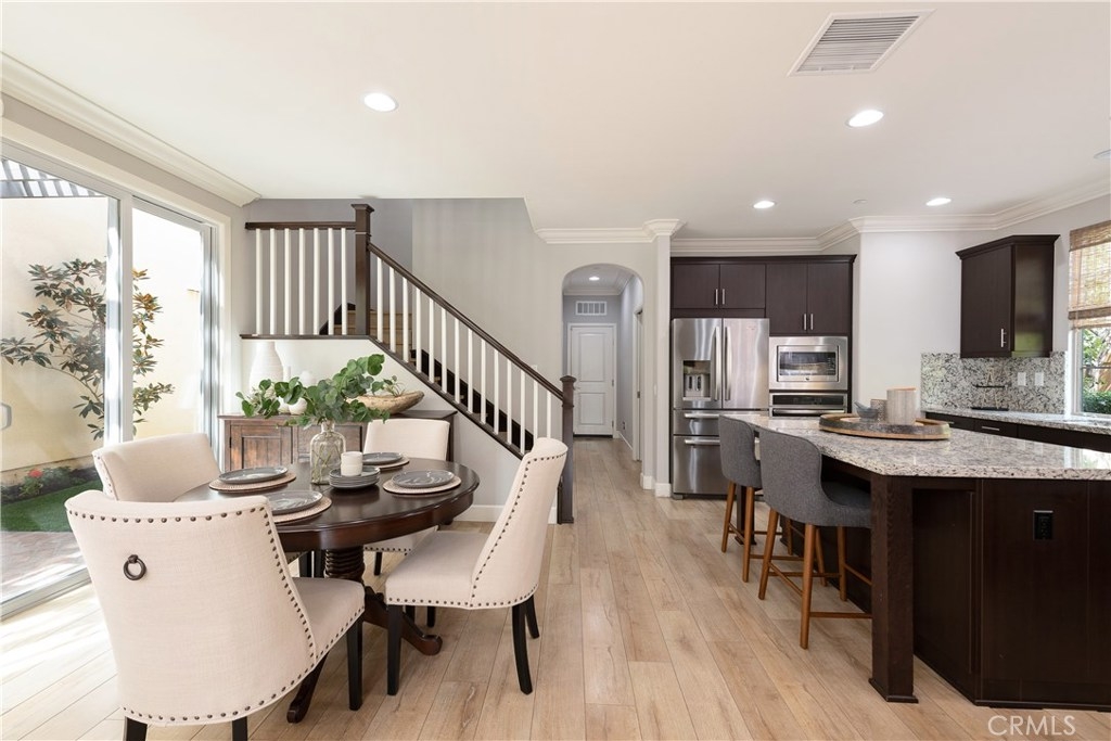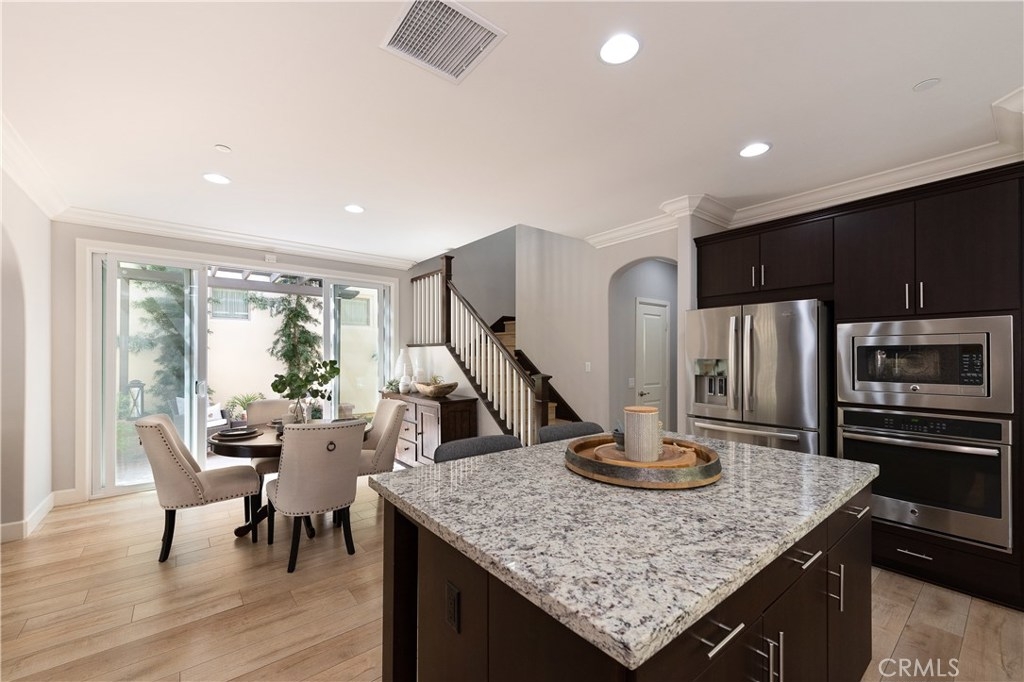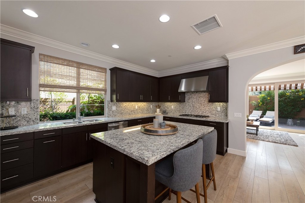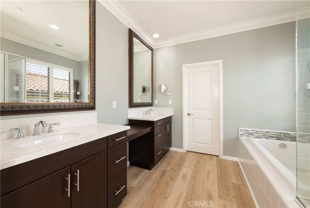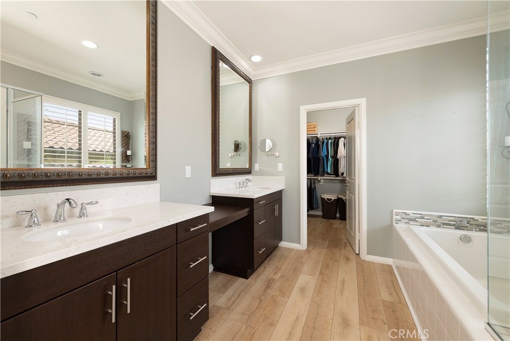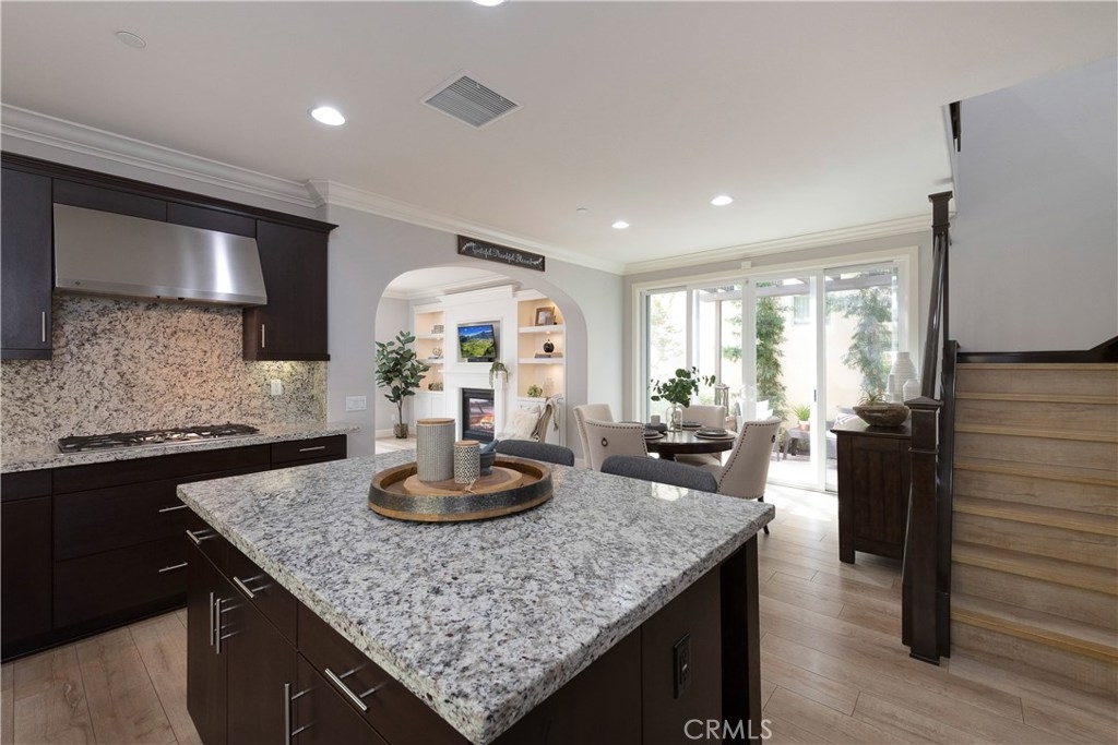 NO MELLO ROOS! Are you looking for an amazing home AND an amazing community? Then, this is the one. This turnkey property offers high-end amenities & designer flair. A secure gated entry leads to the private wrap around yard featuring custom hardscaping, lush landscaping, trellis, fire pit and boasts over $100,000 in upgrades in the backyard alone. The open concept plan boasts almost 2500 Sq. Ft.,4 Beds, 3 Baths & large loft area. The gourmet kitchen offers chic upgraded custom cabinetry, a large center work island, granite countertops and back splash, stainless steel GE Profile appliances & walk-in pantry. The kitchen & living areas are an entertainers dream with gas fireplace, custom built-in shelving & two sets of sliding glass doors that offer an amazing cross breeze & flow easily into the backyard; maximizing the indoor/outdoor living afforded by the Southern California lifestyle. A downstairs bedroom, which is wheelchair accessible offers a large closet with sliding barn door and pocket door. The master is spacious & airy with plantation shutters, dual walk-in closets, en Suite master bath with double vanities, shower & tub. The two secondary upstairs bedrooms, a full bath with dual vanities, spacious loft and large laundry room complete the upstairs. Upgrades include plantation shutters throughout, 6" baseboard, custom crown moulding, wide plank flooring throughout both levels, custom built-in garage cabinetry & overhead storage. NO MELLO ROOS. Low HOA & Taxes.