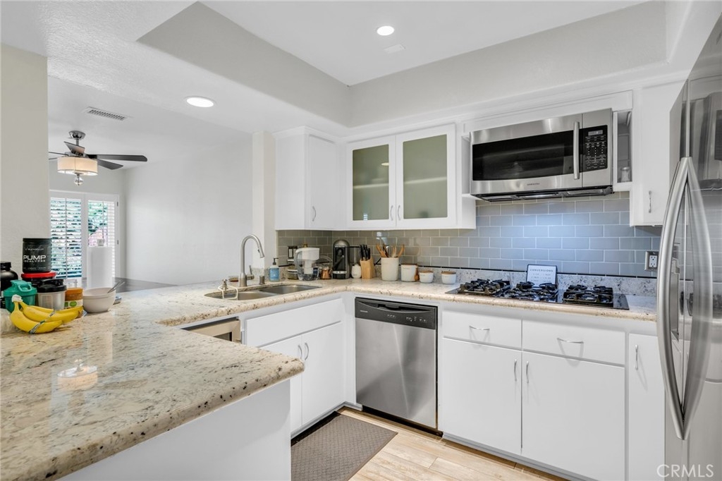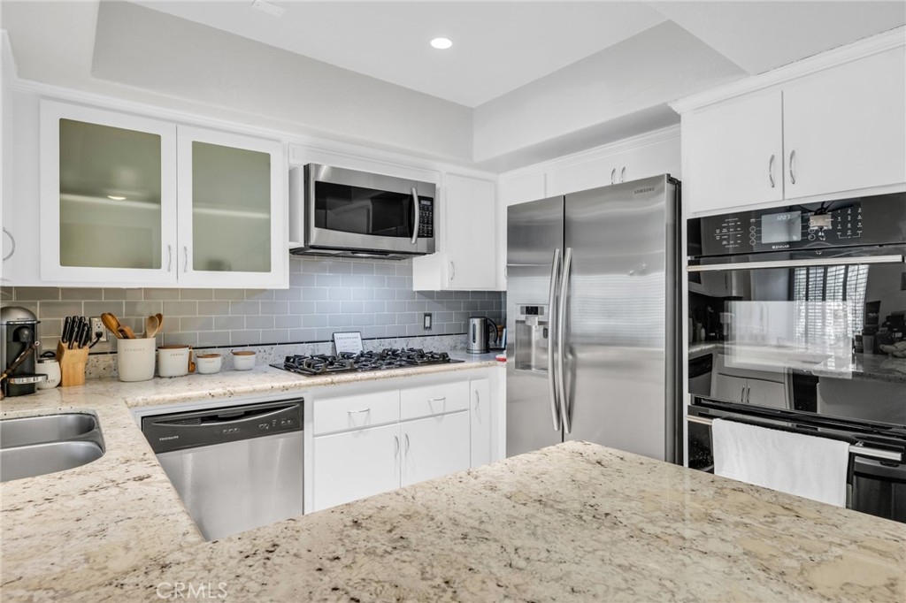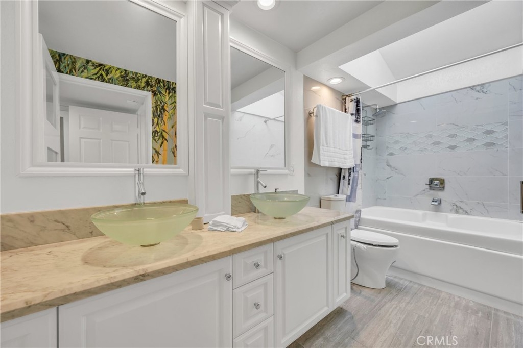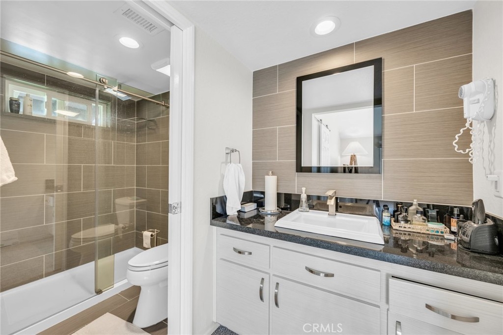 Welcome to Cancun Racquet Club a gated community within minutes to the beach! This renovated property is situated on the end with only one common shared wall and opens onto the green belt. Offering 2 bedrooms both with en suite baths and large walk in closets. Remodeled kitchen offers stainless appliances, Granite counters and is open to the dining and family rooms. Family room is spacious with a nice size fireplace. Fresh interior paint. Plantation shutters throughout lower level. Upper level features a large primary bedroom with vaulted ceilings, built in bench with shelving and large closets. The en suite bath has been remodeled with large jetted soaking tub and stone counters. The second bedroom is spacious and offers it’s own en suite bath and large walk in closet. Oversized attached 2 car garage with direct access, storage and laundry, washer and dryer included. The community is gated and offers tennis courts, pool and hot tub. Close access to the 5 freeway, within minutes to World Class Beaches, the Dana Point Harbor, downtown San Clemente, shopping and dining.