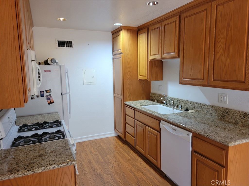 Fantastic, single level condo with 3 bedrooms, 2 baths, two single car garages, hardwood floors and recently upgraded kitchen. Nice, enclosed side patio for entertaining, deluxe wood shutters on the windows. One bathroom is totally upgraded, the other could use an update. All that is needed is paint and new flooring in the bedrooms to personalize and make it yours.. Close to the mission, stables , dining ,biking/walking trails ....