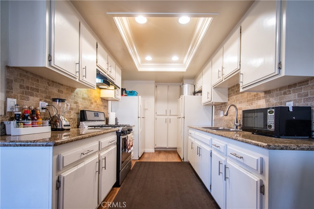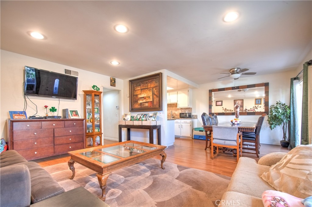 This is a wonderful carriage unit with a large living room/dining room area. The kitchen is spacious with plenty of counter space and it is nicely upgraded with granite countertops, tiled backsplash, moldings, and recessed lighting. Other upgrades include laminate wood flooring, remodeled baths, mirrored closet doors, retextured ceilings, newer sliding door, newer front door with leaded glass, and paneled doors. Property features include inside laundry, 1 car garage, and a private patio. The Capistrano Villas is close the Mission, Los Rios District, and the dynamic down town are of San Juan Capistrano with amazing restaurants.