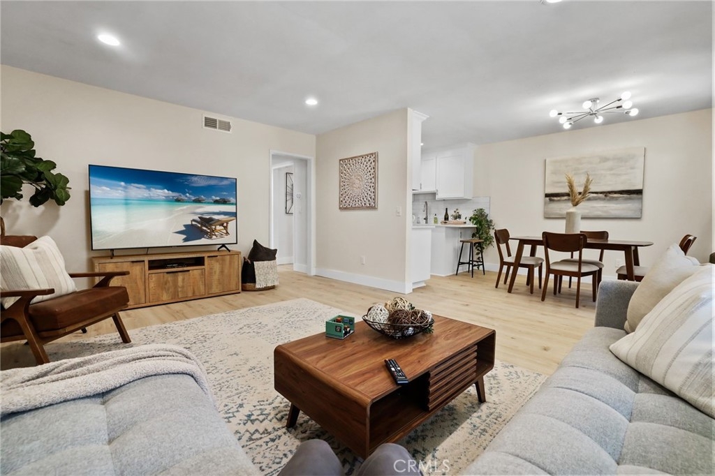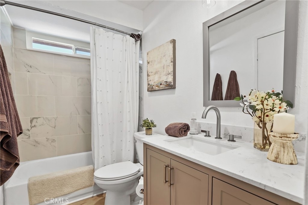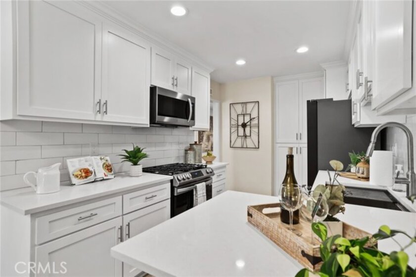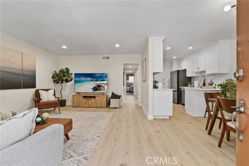 Welcome to 31488 Los Rios, unit #4, located within the Capistrano Villas Community—an impeccably renovated home in the heart of San Juan Capistrano. This thoughtfully designed 2-bedroom, 2-bathroom condo offers unrivaled convenience, surrounded by an array of shops, dining options, entertainment, and transportation hubs just moments away. As you step inside, you're greeted by a meticulously remodeled interior where every detail has been carefully considered. Brand-new windows flood the space with natural light, complemented by recessed lighting throughout and ceiling fans in both bedrooms for enhanced comfort and ambiance. A recent addition of a high-efficiency HVAC system ensures year-round climate control. Throughout the home, luxurious vinyl flooring adds a touch of seamless sophistication, creating an inviting atmosphere in the generously proportioned living area—an ideal setting for relaxation and entertainment. Indulge your culinary aspirations in the updated kitchen, appointed with beautiful quartz countertops, white shaker cabinets, and premium stainless-steel appliances. Ample storage and workspace make meal preparation that much more enjoyable. Both bathrooms have undergone a stunning transformation, featuring modern grey vanities, pristine white countertops, and elegantly appointed tile work reminiscent of timeless marble. For added convenience, the in-unit laundry facilities include a newer washer and dryer, simplifying household tasks. The primary bedroom offers a generously spacious sanctuary, providing plenty of room for relaxation. Enhanced by two expansive mirrored closets and additional storage space, it effortlessly caters to your organizational needs. Outside, the community offers an array of amenities for daily enjoyment, such as a community pool/spa, playground area, and nearby hiking trails. This is one you don't want to miss!