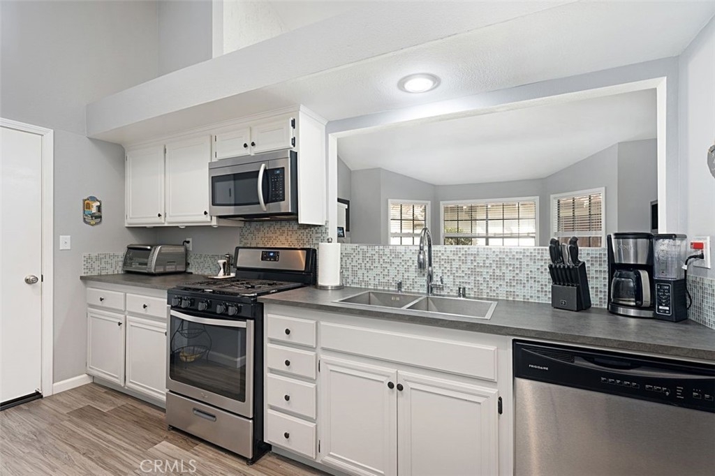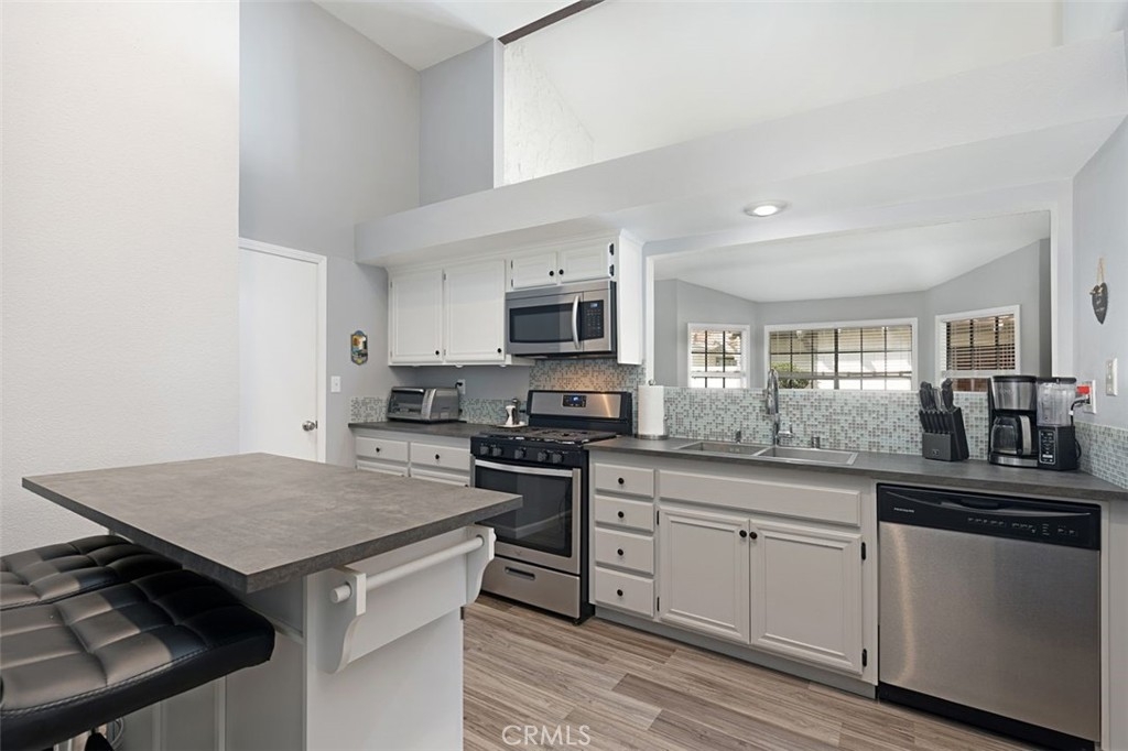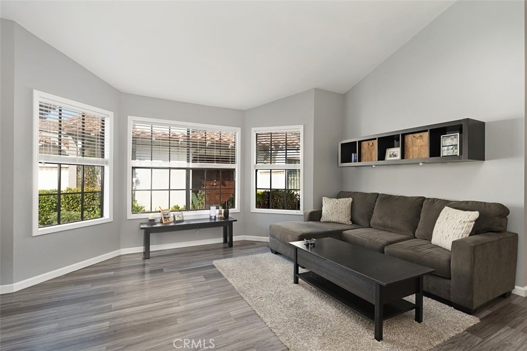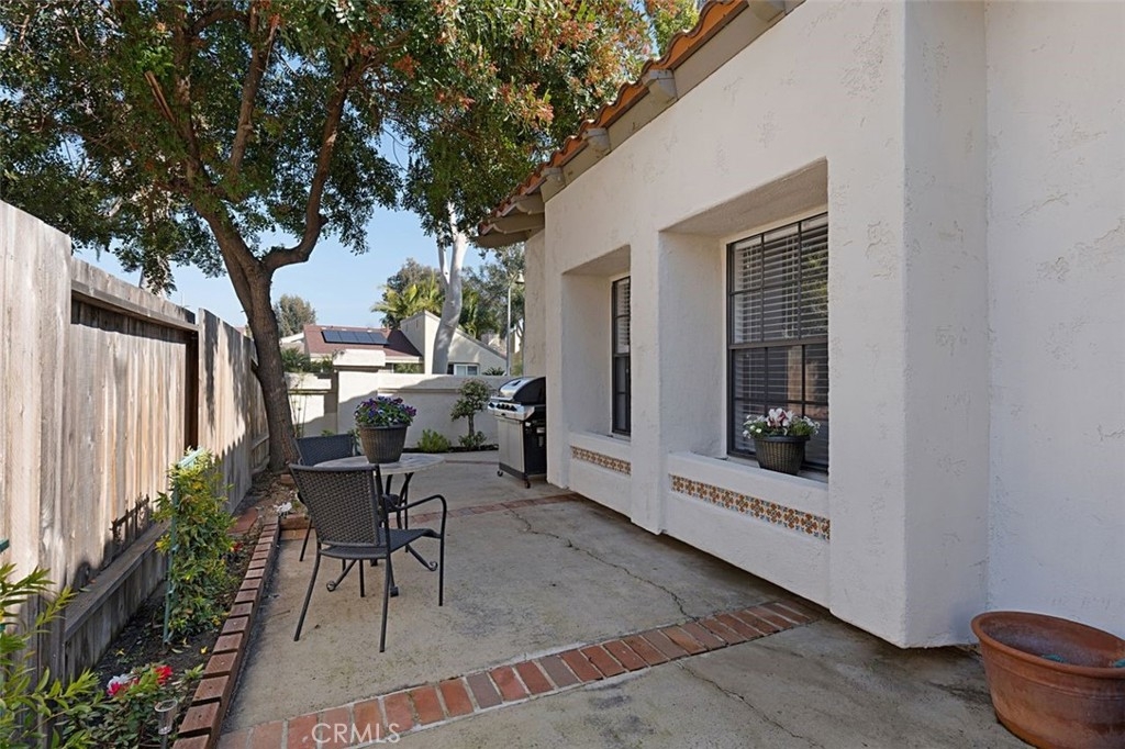 Here it is! This move-in ready condo in the gated serene community of Capistrano de Oro located in San Juan Capistrano is a property you do not want to miss. The single-story end unit home features 2 bedrooms, 2 bathrooms and attached 2-car garage with ample storage space. As you walk into this home you are greeted with soaring ceilings and newer luxury vinyl plank flooring throughout. Step into your living room with custom built-in shelves, updated tile fireplace, vaulted ceilings and large windows offering an abundance of natural light. The spacious updated kitchen features white cabinetry with black metal handles offering plenty of storage and is adjacent to the separate dining room with a skylight. As you make your way down the hall, you will find a spacious secondary bedroom and updated full bathroom with designer touches. The master suite features vaulted ceilings, a fully remodeled bathroom with duel vanity sinks, newly remodeled shower and shiplap wall accents. In the master suite, one closet has been converted to a tech/office niche, but you still have one oversized closet remaining. Enjoy entertaining in your private wraparound patio featuring landscaping and direct access from the master suite and front gated entry. Just minutes away from historic downtown, schools, shopping, restaurants and entertainment. This home is a must see!