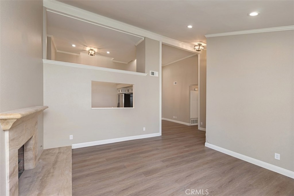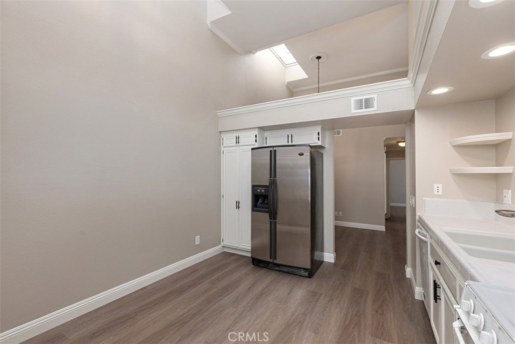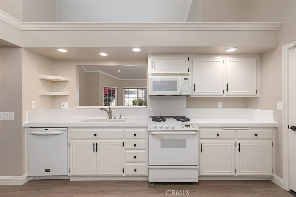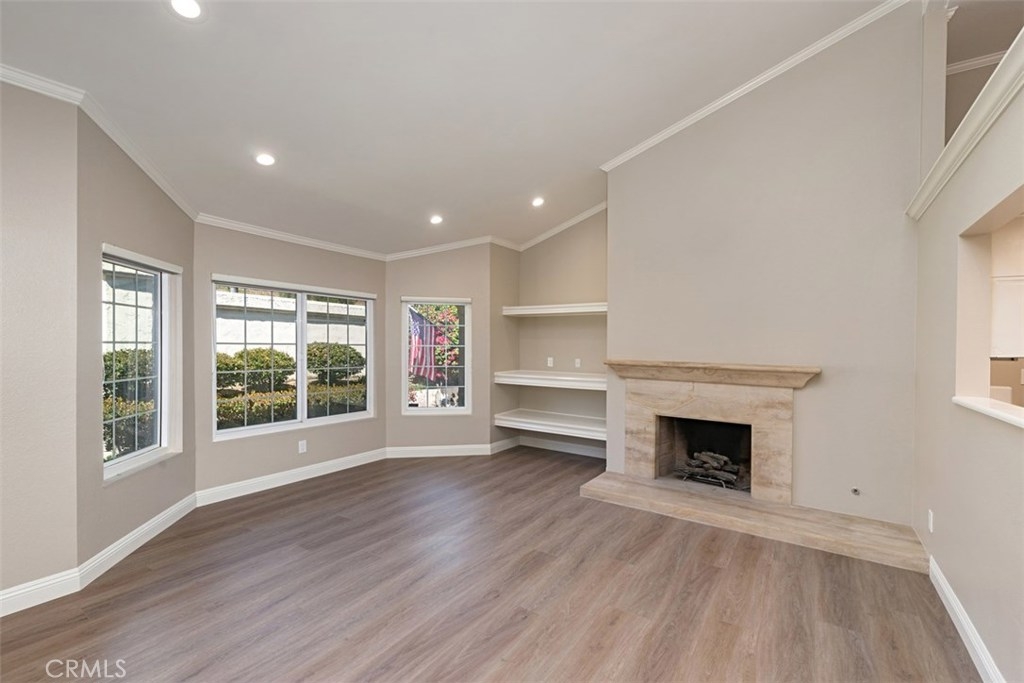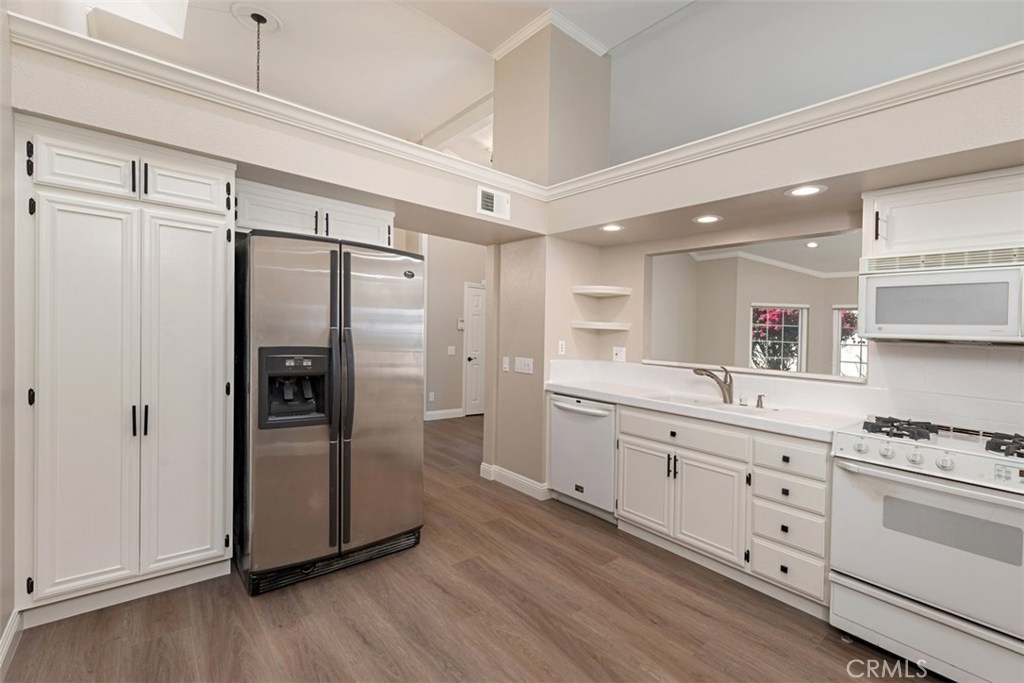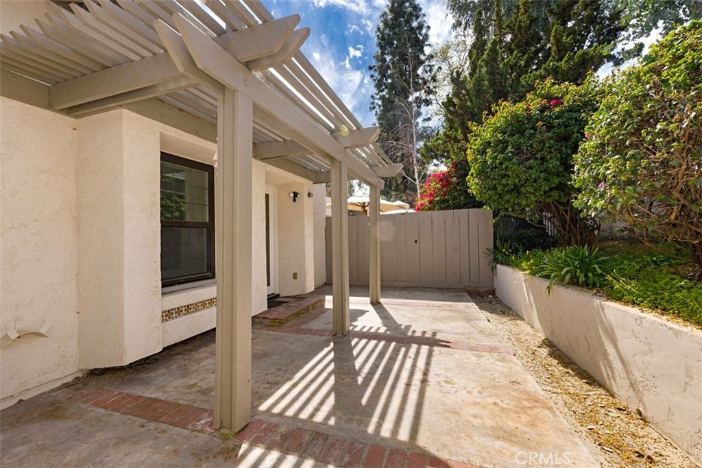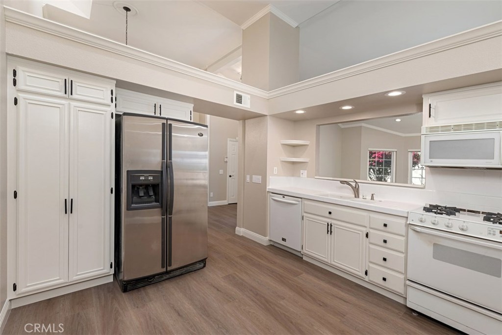 Welcome to this contemporary, move-in ready condo in the gated serene community of Capistrano de Oro in San Juan Capistrano. This single-story home features 2 bedrooms, 2 bathrooms and an attached 2-car garage with ample storage space. As you walk in you are greeted with soaring ceilings, crown molding and newer luxury vinyl plank flooring throughout. Step into your living room with built-in shelves, a cozy stone surround fireplace and large windows offering an abundance of natural light. The spacious kitchen features white cabinetry with black metal handles offering plenty of storage and is adjacent to the separate dining room with a skylight. As you make your way down the hall, you will find a spacious secondary bedroom and full bathroom. The master suite features vaulted ceilings, a full bathroom and direct access to your large patio. Enjoy entertaining family and friends underneath the charming pergola in your hardscape patio featuring a retaining wall with landscaping. Other notable features include contemporary black metal light fixtures, white cabinetry with black metal handles in both bathrooms and a low maintenance backyard. Just minutes away from historic downtown, schools, shopping, restaurants and entertainment. This home is a must see!