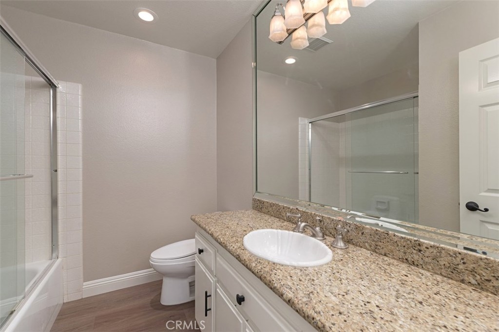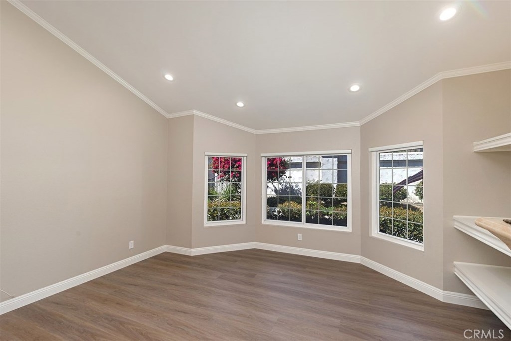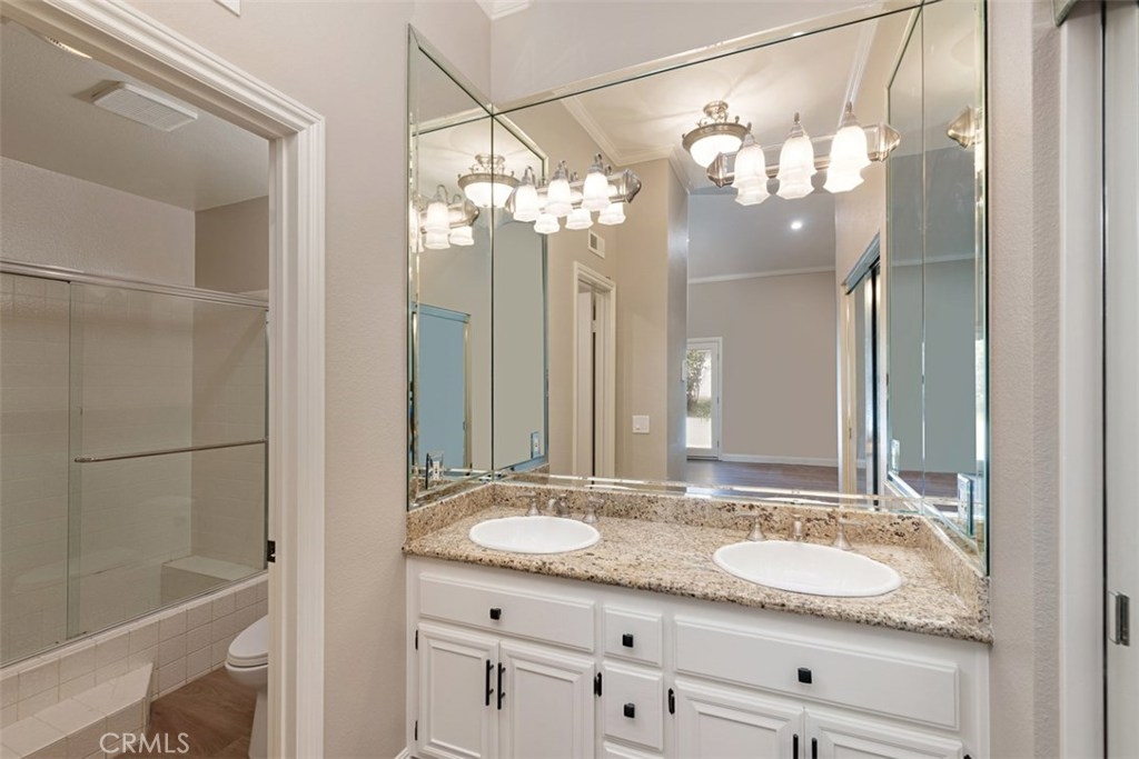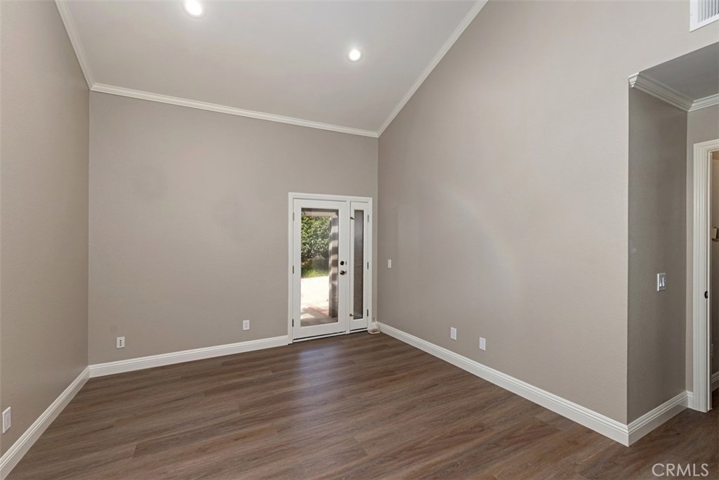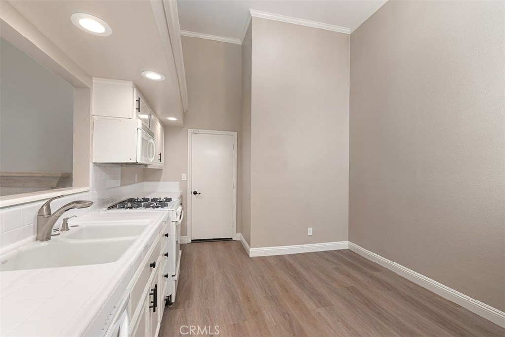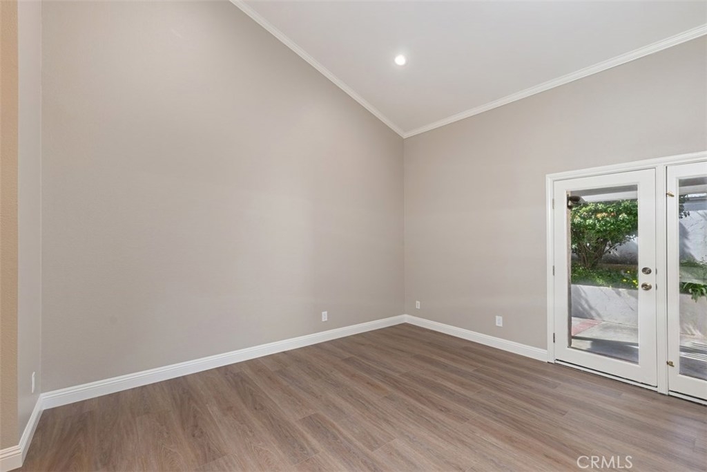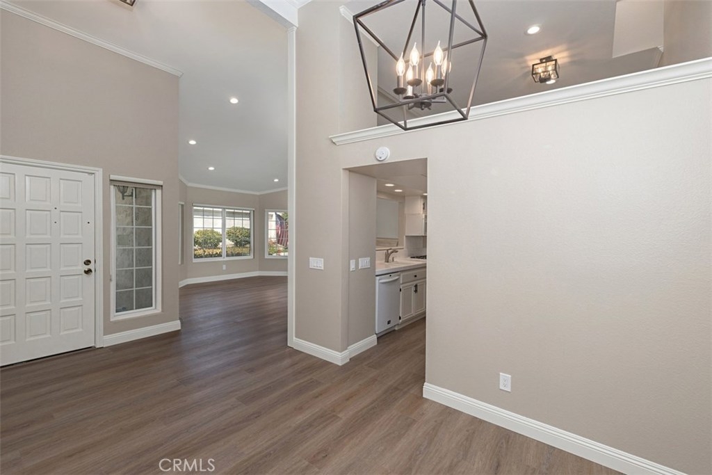 Welcome to this contemporary, move-in ready condo in the gated serene community of Capistrano de Oro in San Juan Capistrano. This single-story home features 2 bedrooms, 2 bathrooms and an attached 2-car garage with ample storage space. As you walk in you are greeted with soaring ceilings, crown molding and newer luxury vinyl plank flooring throughout. Step into your living room with built-in shelves, a cozy stone surround fireplace and large windows offering an abundance of natural light. The spacious kitchen features white cabinetry with black metal handles offering plenty of storage and is adjacent to the separate dining room with a skylight. As you make your way down the hall, you will find a spacious secondary bedroom and full bathroom. The master suite features vaulted ceilings, a full bathroom and direct access to your large patio. Enjoy entertaining family and friends underneath the charming pergola in your hardscape patio featuring a retaining wall with landscaping. Other notable features include contemporary black metal light fixtures, white cabinetry with black metal handles in both bathrooms and a low maintenance backyard. Just minutes away from historic downtown, schools, shopping, restaurants and entertainment. This home is a must see!