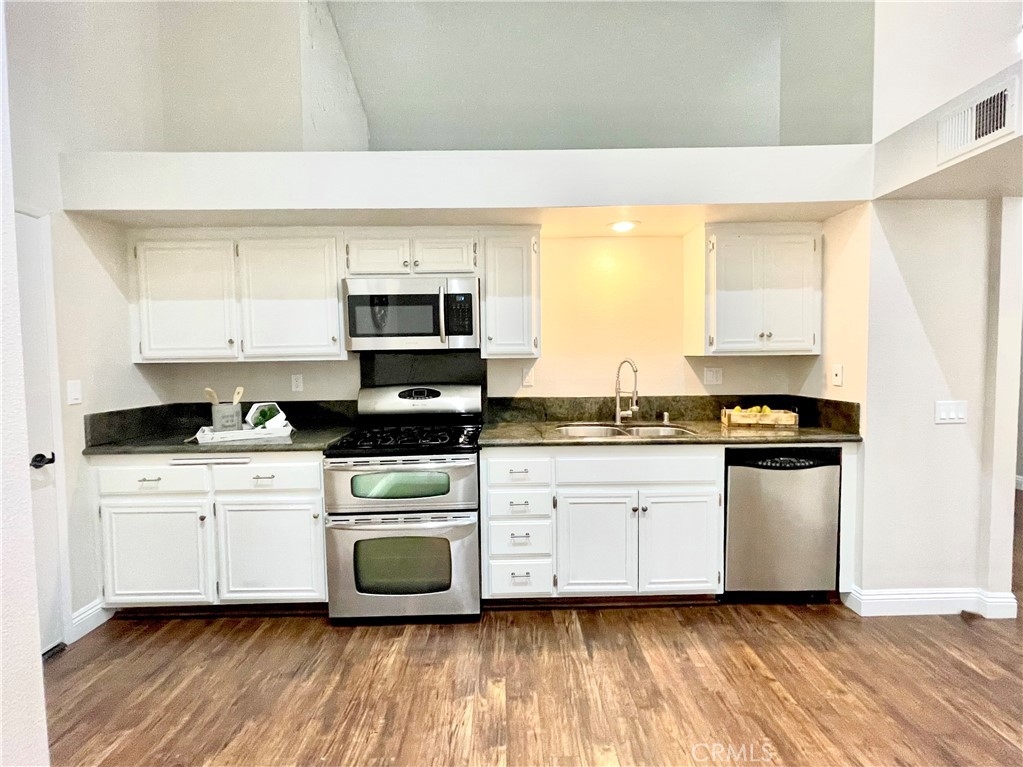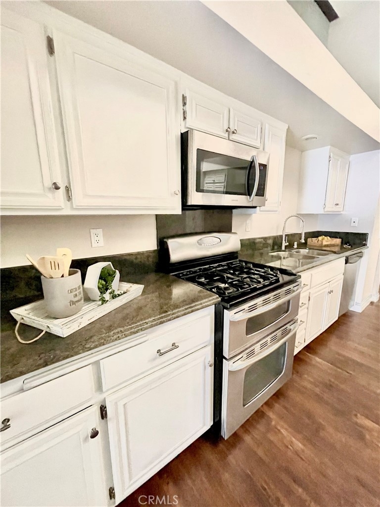 NEW! NEW! NEW! Remodel just completed. The following items are new: dishwasher, faucets, light fixtures, and new paint. Features distressed engineered wood flooring. Kitchen has granite countertops. There is only one neighbor sharing the building. Shows like a model! Desirable single story unit feels like a single family home rather than a condo. There are only two units on this building.