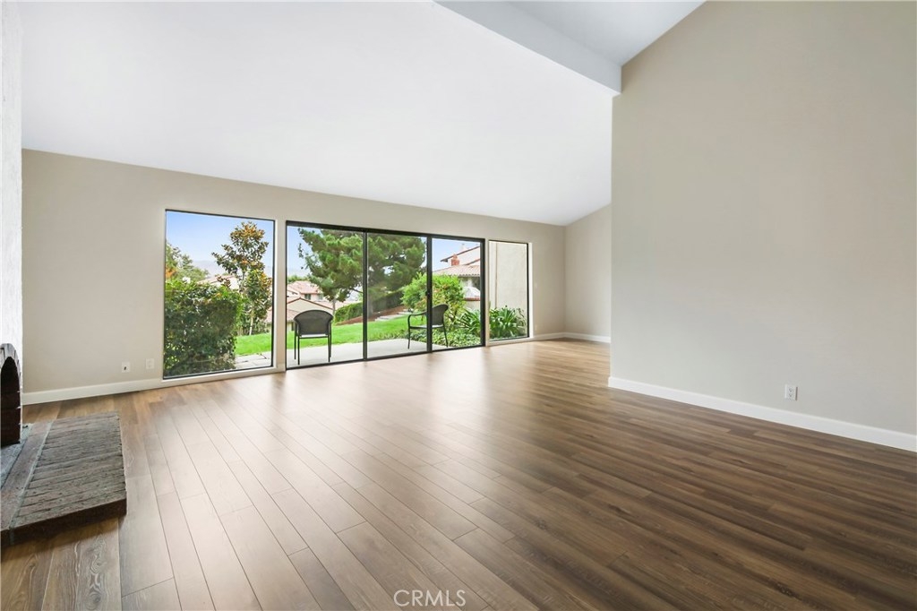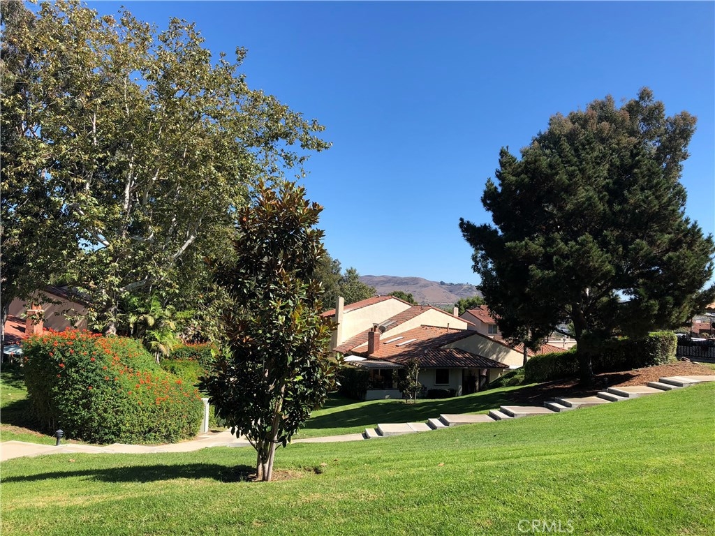 Light and airy, single level 2 bedroom, 2 bath attached home in a choice location in Captain's Hill with beautiful views of the hills, greenbelt and trees. New wood laminate flooring in the living areas and bedrooms, new porcelain tile flooring in the bathrooms, newly painted interior and textured ceilings. The spacious living room features an arched fireplace, a vaulted ceiling, and overlooks the rear patio and view. The kitchen has recessed lighting, a gas range with a unique used-brick accent surround, a stainless steel sink, and a breakfast counter that separates the kitchen and dining area. The dining area also has a cathedral ceiling and is open to the living room. The master suite offers a walk-in closet, double-door entry, a sliding door that leads onto an enclosed patio with a lemon tree, and a walk-in tiled shower. The second bedroom has a mirrored wardrobe closet and a sliding glass door onto the enclosed patio. Covered entry porch, and a two-car garage with laundry hook-ups. Enjoy relaxing on the rear patio cooled by ocean breezes with a tranquil view of the hills and trees. Just minutes to Dana Point Harbor, Doheny State Beach, historic downtown San Juan Capistrano, and a bike trail. Association amenities include a swimming pool, walking paths, and parking for recreational vehicles.