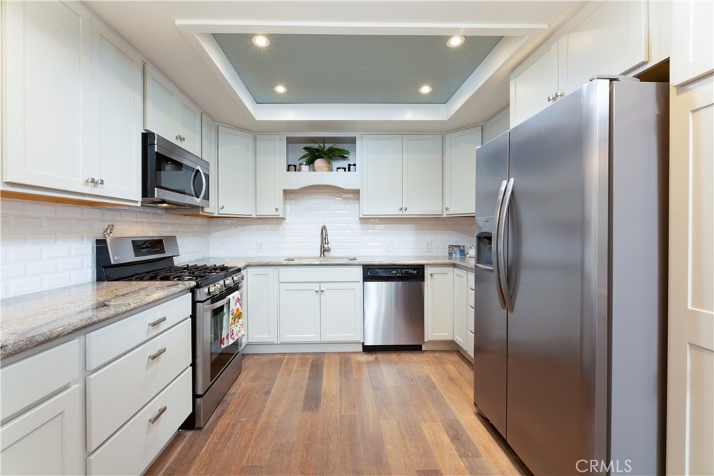 Stunning single level townhome tucked away in the sprawling and lushly landscaped Captain’s Hill community in San Juan Capistrano. The spacious two bedroom two bath home is tastefully designed with custom features throughout, including a newly marbled fireplace and hearth; double pane windows; central heat and air conditioning; updated floors throughout; vaulted ceilings; fully renovated kitchen with subway tile backsplash, coffered ceiling, recessed lights, and stainless appliances; both bathrooms have been updated with new vanities countertops and light fixtures; and huge walk-in closet in luxe master bedroom with private bath. This home also offers two generous exterior spaces for entertaining and relaxing; One large rear deck for barbecues and hillside views, and one side courtyard patio open to both bedrooms for indoor outdoor living. This location is just minutes to the coast line, beautiful beaches, as well as being close to old town San Juan Capistrano with amazing dining and shopping options and the train. Excellent schools and a rich history make San Juan Capistrano and this community a wonderful option for any type of Buyer!