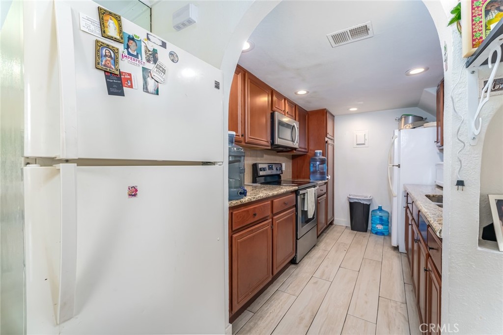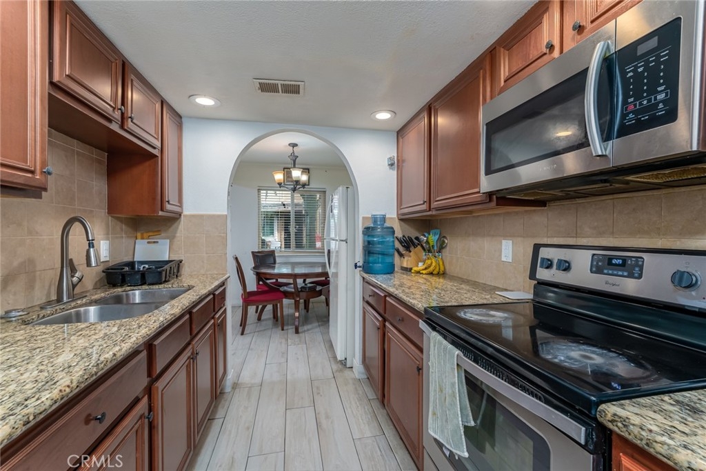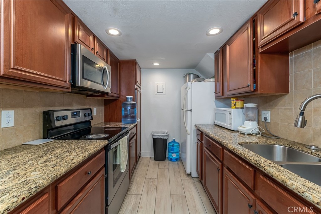 This lovely two bedroom, one bath home features a beautiful remodeled kitchen, upgraded tile flooring and more. There is a shared garage with locking storage. The community of Casa De Capistrano features two pools, parks, playgrounds, front yard maintenance. Trash and water are included in the HOA dues. The community is FHA approved.