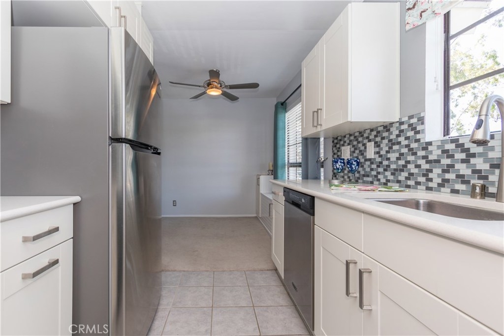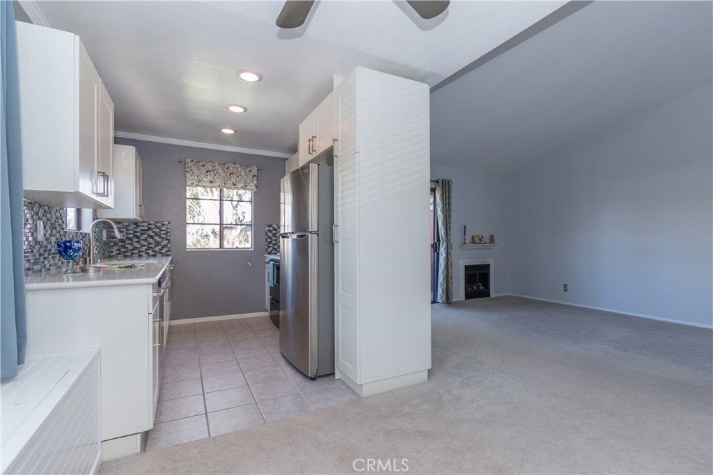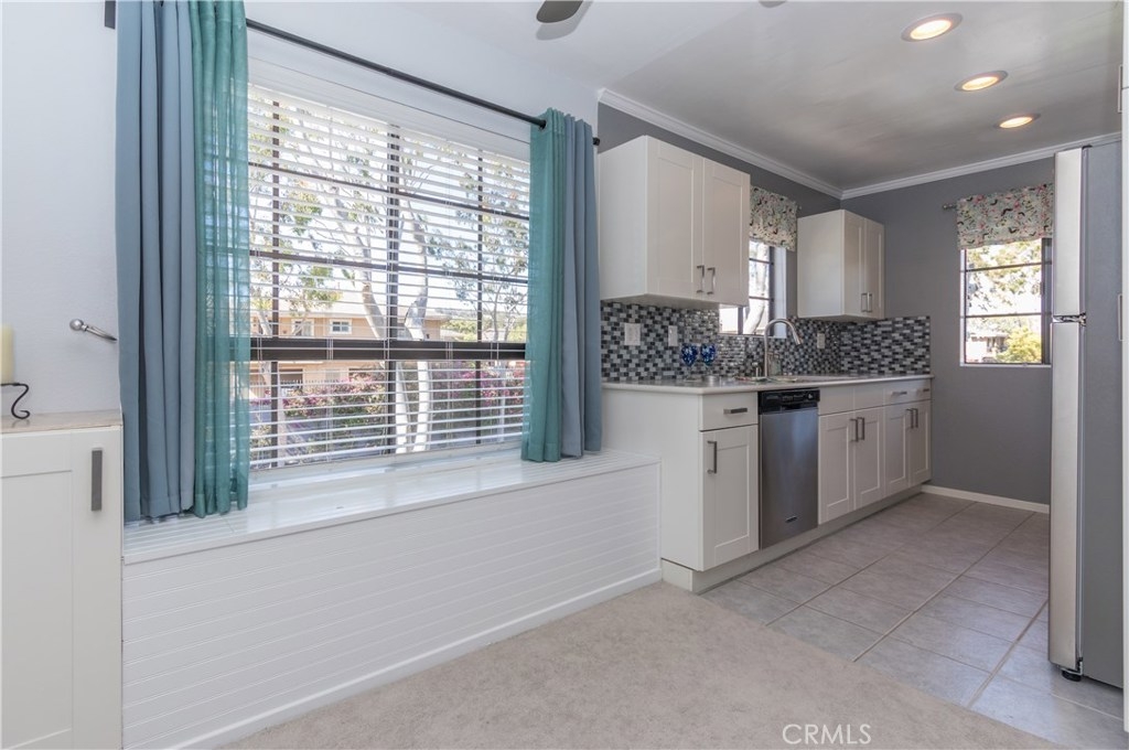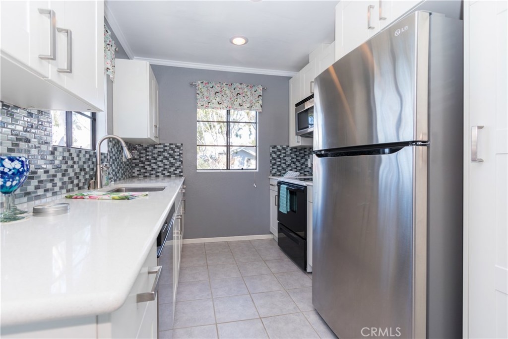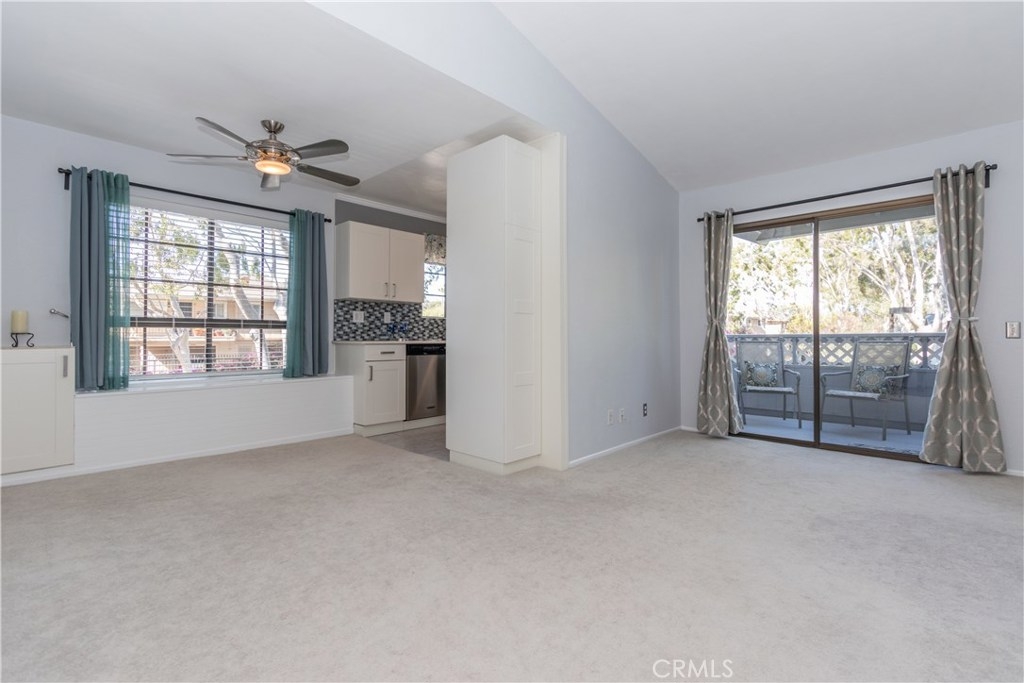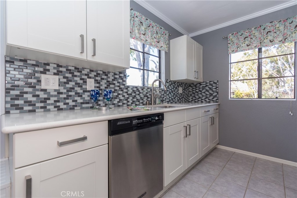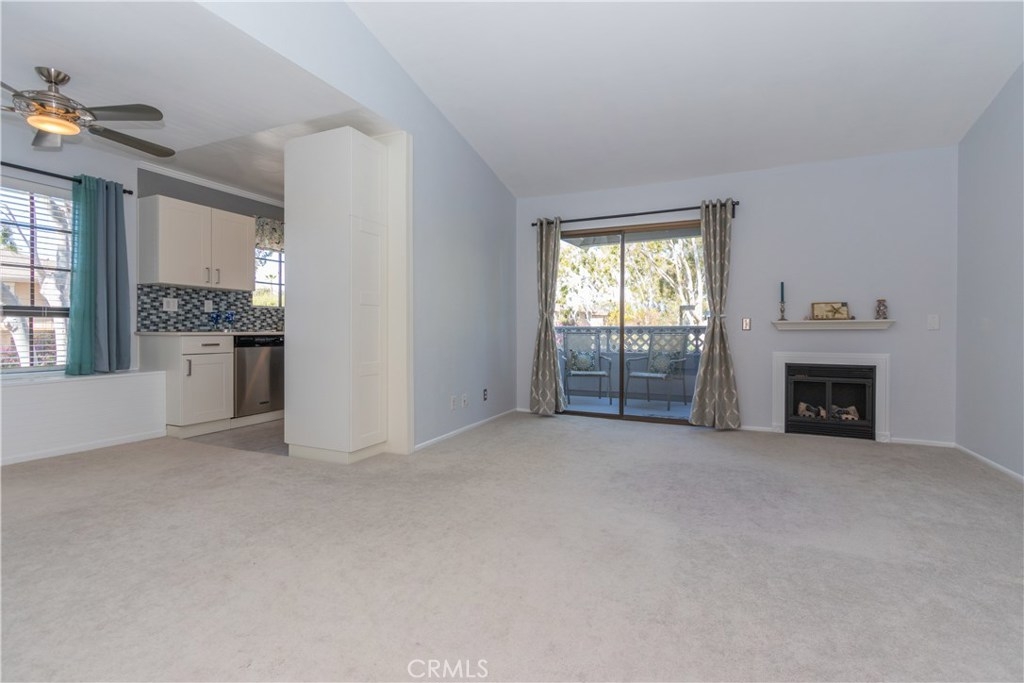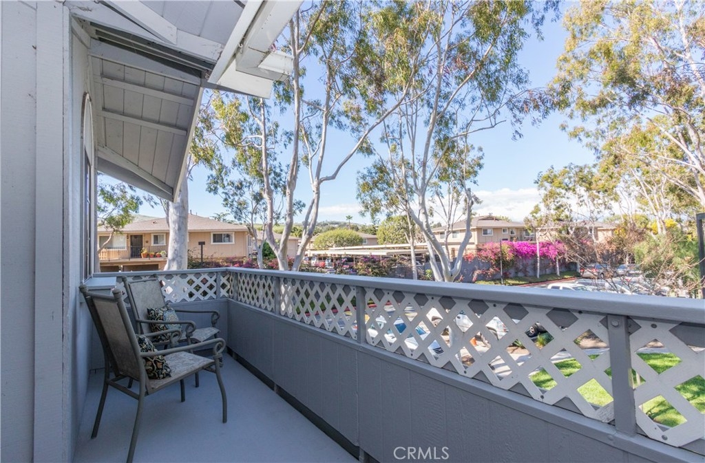 The perfect upgraded condo is waiting for you! Do you like fresh breezes and privacy? This is an upper end unit at the back of the community. It’s a relaxing home with an open floor plan, cathedral ceiling, large balcony and a cozy fireplace. Light and bright with double the number of windows compared to interior units. Views include trees, hills and sunsets from the charming window seat. This home features a welcoming entry, new paint and ceiling fans. Updated kitchen with quartz counters, soft-close cabinets/drawers, pantry and recessed lighting to make cooking a pleasure. Bathroom has granite counter top and access from the foyer as well as the bedroom. Lots of storage with double linen cupboards, large hall and balcony closets and a walk-in bedroom closet with built-ins and more. The garage has extra space for storage and includes automatic openers plus an additional parking space. HOA includes the following amenities: pool, playground, on-site laundry. Hot and cold water, sewer and trash also included! Enjoy all of the sights and restaurants offered in San Juan Capistrano or head to nearby Dana Point Harbor and the beaches. This very special home will not last.