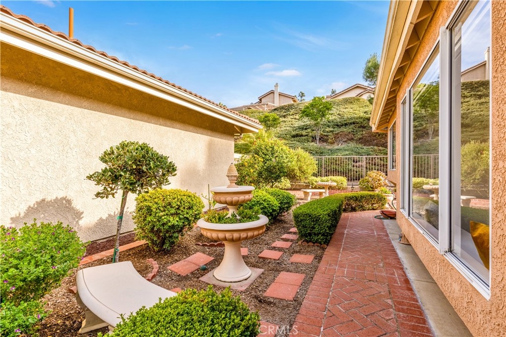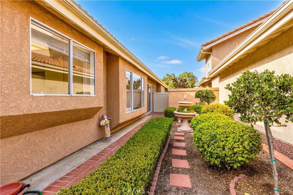 Hear the Mission Bells Ring and Feel the Cool Coastal Breezes in this Chic Single Level Detached Home! Tucked inside a highly desirable street in the family-friendly Loma Vista community, this impeccably maintained single-level 3-bedroom, 2-bathroom home invites you to experience the best of San Juan Capistrano living. Step into the private, gated courtyard—recently upgraded with stylish pavers—and discover a charming wraparound yard leading to a bright and airy floor plan. The welcoming living and dining areas are designed for coastal living and entertaining, include COREtec Plus engineered wood flooring w/waterproof coating, and a cozy gas fireplace. Expansive sliding glass doors reveal breathtaking views of the hardscaped backyard, perfect for gatherings with multiple seating areas to enjoy Southern California's indoor-outdoor lifestyle. The light-filled kitchen features gleaming white countertops, wood cabinetry, ceramic tile floors, and a charming breakfast nook with direct access to the backyard. Retreat to the main-floor primary bedroom suite, a serene sanctuary with private access to the side-yard. The en-suite primary bathroom offers a step-in shower, a separate soaking tub, and a double vanity. The spacious second bedroom comfortably accommodates a queen-size bed, while the third bedroom provides versatile options as a den, guest room, or home office. Additional highlights of this home include PEX REPIPE throughout, double layer of 30# felt on the roof, new skylights including new seals & flashing, newer A/C & Furnace, and direct-access two-car garage. Located in the rolling hills of historic San Juan Capistrano, Loma Vista offers easy freeway access and is minutes from award-winning schools, shopping, hiking trails, world-class beaches, fine dining, equestrian facilities, golf courses, and the charming downtown area. Welcome to resort-style living, every day.