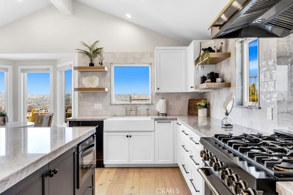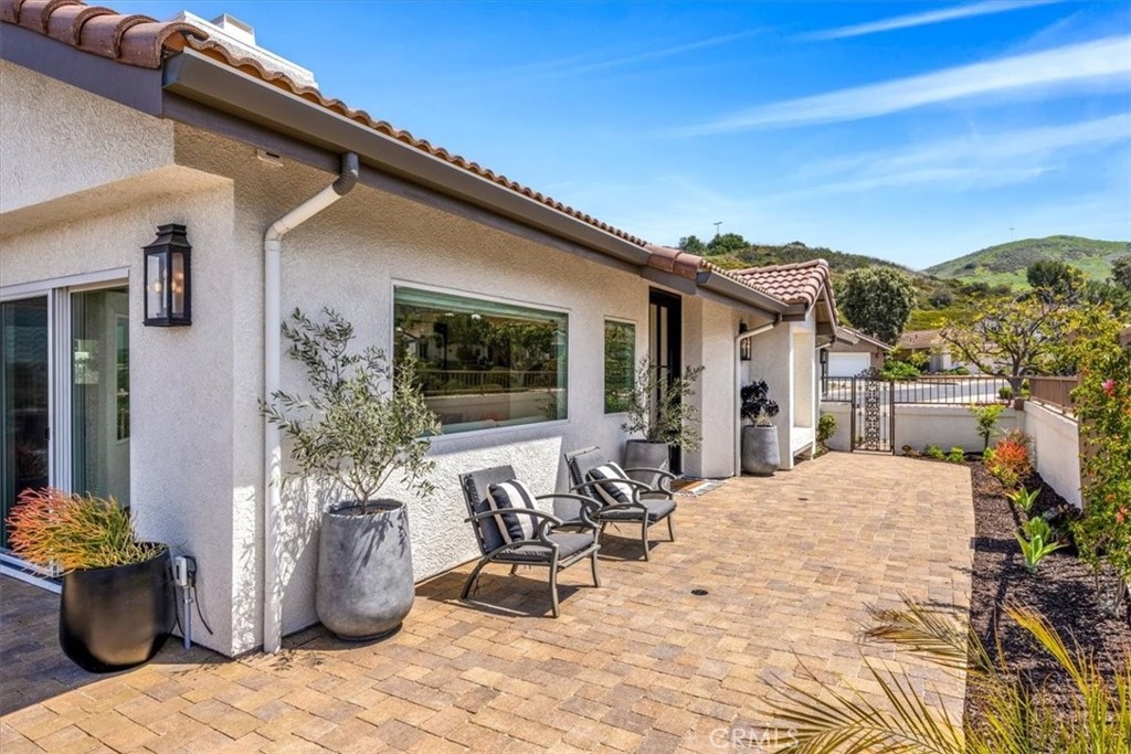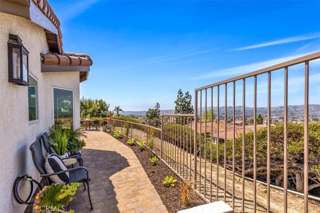 EXTRAORDINARY SINGLE LEVEL DETACHED DREAM HOME! Hear the Mission Bells Ring and Feel the Cool Coastal Breezes from this stunning home. Perched on a prime corner lot in the scenic hills of historic San Juan Capistrano, offering unobstructed panoramic views of rolling hills, city lights, mountains, and the iconic Mission San Juan Capistrano. Thoughtfully remodeled from top to bottom, this 3-bedroom, 2-bathroom residence blends sophisticated design with everyday comfort. Step inside to discover vaulted ceilings, skylights, and an open layout bathed in natural light. The redesigned chef’s kitchen features quartzite countertops, artisan tile backsplash, custom cabinetry, and top-of-the-line ZLINE appliances in fingerprint-resistant black stainless steel with polished gold accents. Enjoy coffee in the breakfast nook or dine at the expansive center island—all while soaking in tranquil hillside views. The spacious living room, anchored by a stacked stone fireplace, flows effortlessly to the wrap-around patio for true indoor-outdoor living. The primary suite is a serene retreat with sliding patio access, vaulted ceiling, a spa-inspired bath with step-in shower, soaking tub, quartz vanity, and a large walk-in closet with dual chandeliers. Currently configured as a den, Bedroom 2 adds flexibility for an office, media room, or formal dining, complete with a sliding barn door and charming window seat. Bedroom 3 is privately situated at the rear of the home near the second bathroom, which features a beautifully tiled step-in shower. The finished 2-car garage with epoxy floor includes direct access, attic storage with pull-down stairs, and a new WiFi-enabled garage door with built-in camera. Outside, the gated wrap-around patio is low-maintenance and water-wise, with multiple spaces to enjoy the sweeping day-to-night views. Additional highlights include smooth-finish walls, white oak hardwood floors, new Marvin windows & doors, remote-control shades (living + primary) skylights w/remote openers, new A/C, furnace, tankless water heater, updated electrical, insulation, repiped, Smart thermostat, new roof & patio pavers, new exterior lights & TWO added attic spaces w/pull down ladders! Loma Vista offers a pool/spa/park area and optional RV parking. All this and easy freeway access, minutes away from award-winning schools, shopping, hiking trails, world-class beaches, fine dining, equestrian facilities, golf courses, and the charming downtown area. WELCOME HOME!