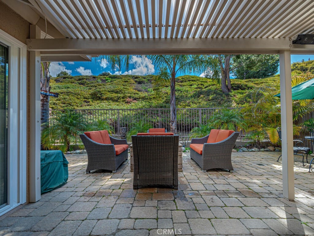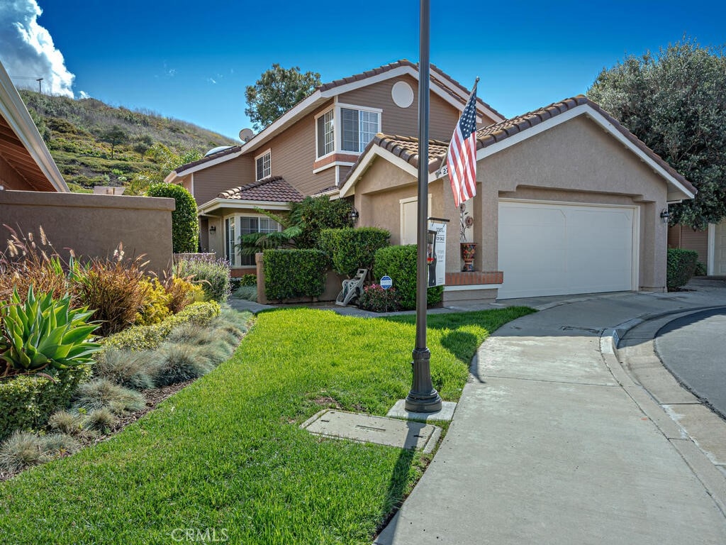 This is the property that you have been waiting for with LaCatina doors that lead you to your private lush backyard. This lovely two story completely detached home is located in the Loma Vista Community above the San Juan Hills Golf Course. The property is light and bright with an open floor plan and vaulted ceilings with much of the home upgraded. The backyard showcases lush green tropical plants with hardscape pavers & artificial turf- the perfect spot for relaxing in the shade on a warm summer afternoon and at night with your outdoor fireplace for entertaining. Inside this home you will find upgraded tile floors, newer windows, doors and two skylights that open which brings in the natural sunlight and air. Designer kitchen features breakfast bar, recessed lighting and ample cabinetry space. Upstairs you will find a large loft with built-ins that can be used as an office or reading nook. The updated master suite includes travertine tile, a double vanity, separate oversized shower, soaking tub, built-in cabinets and a walk-in closet. The home is located at the end of a quiet cul-de-sac, minutes away from Downtown San Juan Capistrano and Dana Point. The Loma Vista community amenities include pool, spa and storage for an RV. No Mello Roos and Low Tax Rate!