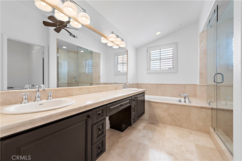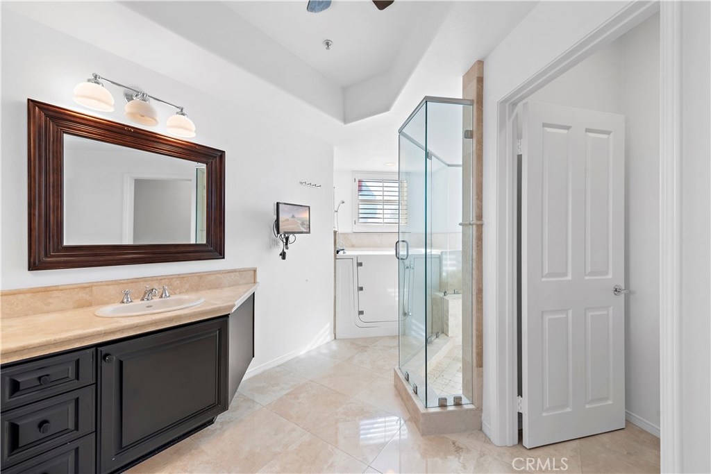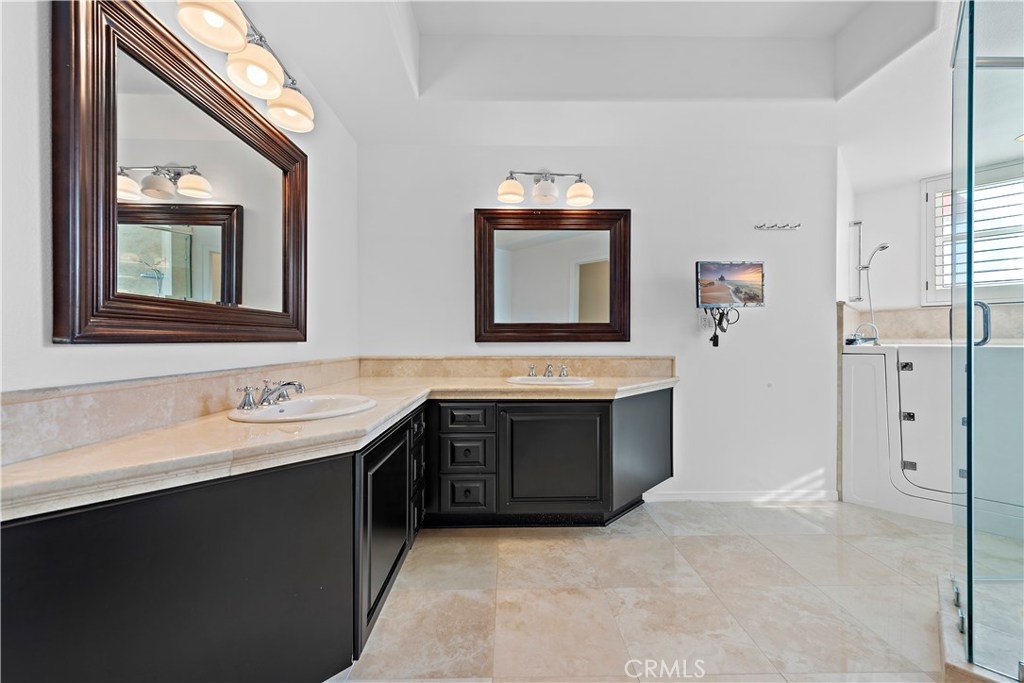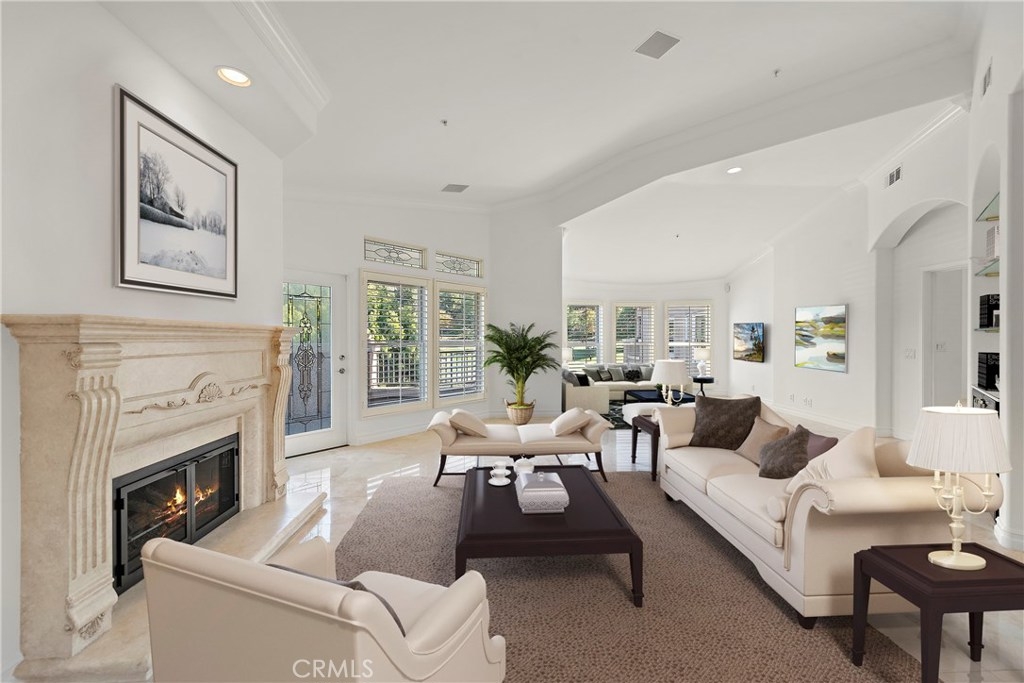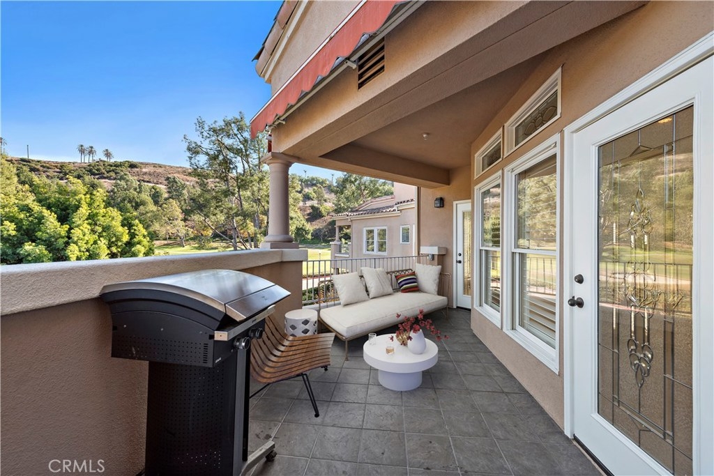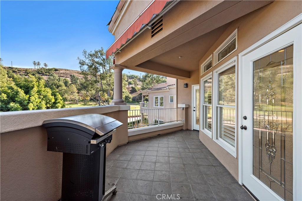 Pride of ownership. Guard gated community of The Golf Villas of Marbella Country Club. Highly desirable upper location. (No stairs, only walk ways) Unique, Custom floorplan w/upgrades. Expanded Living Room/Sitting Areas. End location, overlooking the 1st green of Marbella's private golf course. Travertine entryway leads to formal dining & living rooms. Impressive Marble columns, gas fireplace w/Faux marble overlay. Custom full length windows and designer shutters. Redesigned kitchen w/black graphite sink, Kraft made cabinets, wood flooring, granite counters w/built in desk, self closing drawers, spice & pull out pantry cabinets. Separate kitchen door leads directly to the relaxing patio/dining area. Brand new carpeting in both en-suite bedrooms. Dual walk in closets, w/plenty of shelving. Master Bedroom w/Unique fireplace, custom fireplace screen & Mounted Television. Remodeled Bathrooms contain Travertine floors & counters. fine cabinetry. Dual sinks and closets. Master bath contains Toto toilet & bidet, Jacuzzi soaking tub & ceiling fan. Secondary bath offers attached TV, additional double doors, separating bathroom from bedroom. Walk in closets w/cabinets & racks. Your private Balcony offers tile-slate flooring, nearly new electric controlled Sunbrella double awning. High end gas barbecue w/direct gas connection. Patio closet w/tankless (Norwitz) hot water heater. Seller is leaving compact roll-up balcony escape ladder. Detached two car garage w/built-in cabinets.