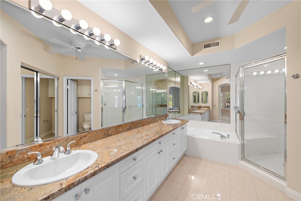 Discover the epitome of sophisticated living at 51 Plaza Vivienda, an exquisite villa nestled in the highly sought-after Marbella Estates Golf Villas. Located within the exclusive Marbella Country Club, this home spans over 2,285 sq. ft. of elegantly appointed living space, featuring high ceilings, graceful archways, and expansive windows that bathe the interior in natural light. Custom shutters throughout the home elevate both style and privacy. The spacious living area is anchored by a beautiful fireplace, creating an inviting space perfect for relaxation and entertaining. The gourmet kitchen, designed with both functionality and aesthetics in mind, boasts premium stainless steel appliances, granite countertops, and custom cabinetry, while the breakfast nook offers tranquil views of the manicured golf course. The primary suite is a serene haven, complete with its own fireplace, a private terrace, a generous walk-in closet, and a spa-inspired en-suite bath with dual vanities, a deep soaking tub, and a separate glass-enclosed shower. Step outside to the peaceful patio, ideal for alfresco dining, where the lush surroundings provide a perfect backdrop for quiet moments of reflection. As a resident of Marbella Estates, you’ll enjoy privileged access to the community’s prestigious amenities, including a championship golf course, tennis courts, a state-of-the-art fitness center, a junior Olympic-sized swimming pool, and fine clubhouse dining. The community is further enhanced by 24-hour guard-gated security, offering a sense of privacy and serenity. Just minutes from the historic charm of downtown San Juan Capistrano, this villa is perfectly situated to enjoy boutique shopping, acclaimed dining, and cultural landmarks.