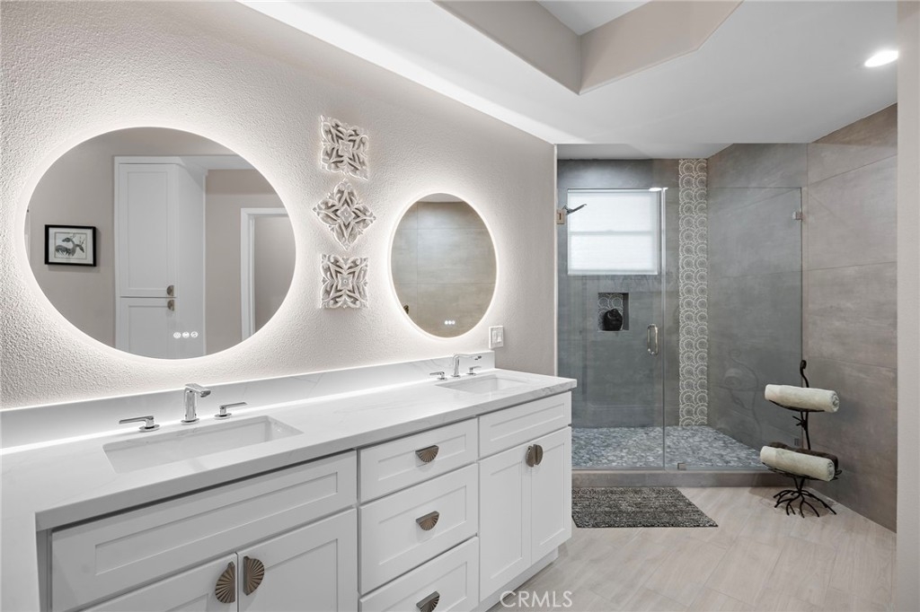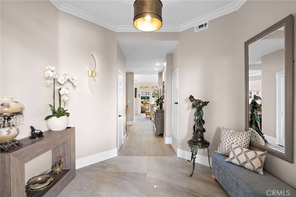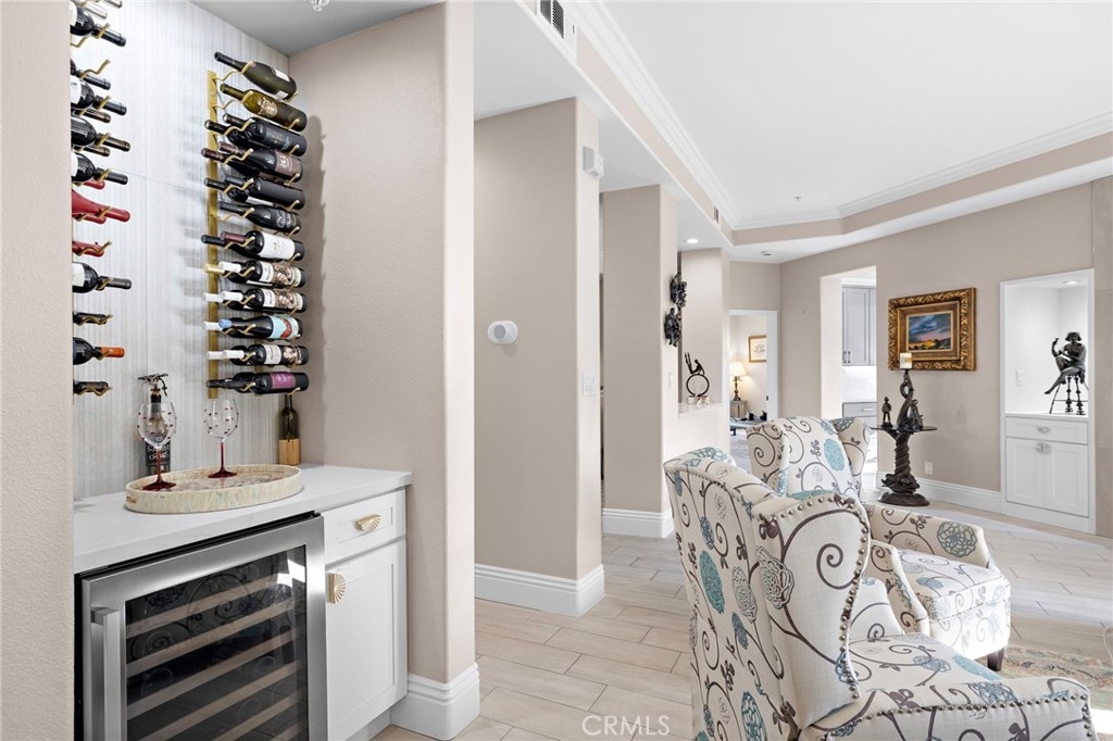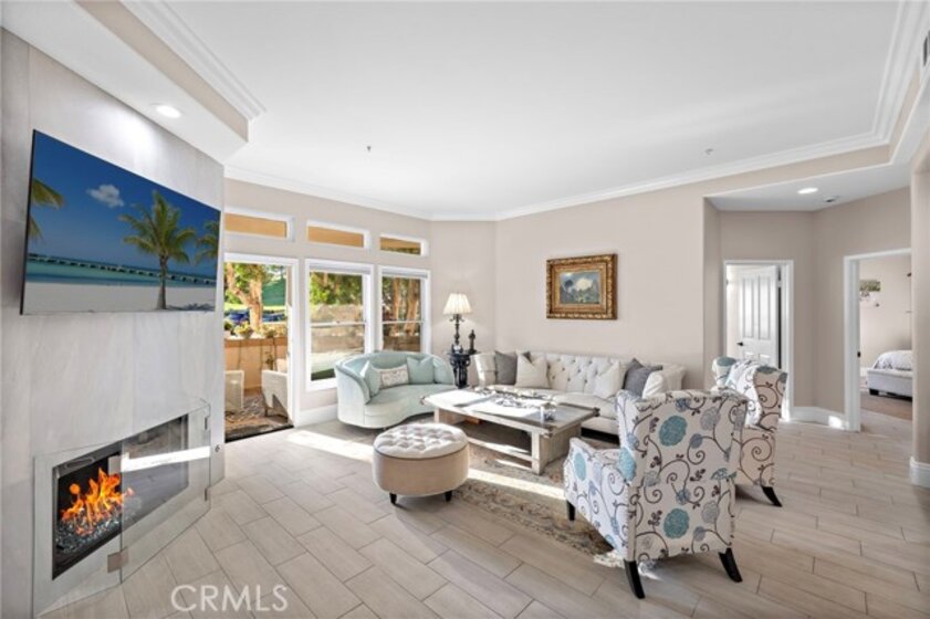 Located within the luxury, gated golf course community of Marbella, this lower level Golf Villas residence has been completely remodeled over the past year with thoughtful, high quality updates throughout. The home offers two primary suites, a bonus room suitable for an office or optional third bedroom, and two and a half bathrooms, all designed for comfortable single level living with no interior stairs. The open layout features tall ceilings and tile plank flooring throughout. The dining room opens seamlessly to the living area and is accented by a tray ceiling. The living room has been redesigned with a custom fireplace, transom windows that provide abundant natural light, and a built-in bar area with a wine refrigerator. The kitchen has been fully updated with Thermador appliances, including a six burner gas stove, quartz countertops, a Kraus stainless sink, new soft close cabinetry, and an eat-in dining area with banquette seating. Both primary suites are well positioned for privacy and include their own bathrooms. One primary bath features a spacious walk in shower, while the second offers a walk in shower and separate soaking tub. Toto toilets are installed in all three bathrooms, with LED mirrors in the two primary baths. One of the primary bedrooms also includes the home’s second fireplace. Outdoor living is enhanced by a spacious patio overlooking the golf course, providing a peaceful setting for everyday enjoyment. The home has also benefited from key system updates, including a full repipe in 2017, newer air conditioning and furnace installed in 2019, and a hot water heater replaced in 2024. Additional features include a finished two car garage with ample storage and a 220 outlet. Residents have the option to join the private Marbella Country Club for a separate fee, with access to golf, tennis, pickleball, fitness facilities, classes, and a junior Olympic lap pool. The community is conveniently located near historic downtown San Juan Capistrano and new River Street shops and restaurants, and the Dana Point Harbor.