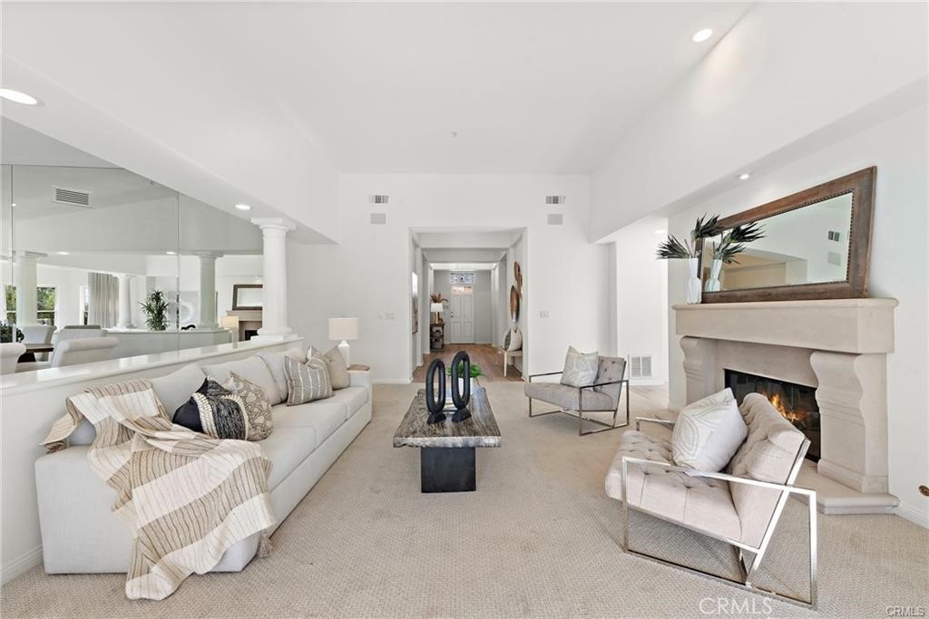 Located within the guarded gates of Marbella Country Club, this highly coveted, single story villa is one of only twelve units offering 2700 square feet, with an attached garage. As you enter the front door, you step into a home with impressive, soaring ceilings with lots of light and expansive floorplan. Freshly painted and brand new windows throughout, this property is enhanced with new LED lighting. The open layout provides both space and elegance. The grand primary suite includes a private sitting retreat with a cozy fireplace, a deck, and tranquil golf course and hillside views. Its spacious bathroom features a soaking tub, step-in shower, dual vanities, and an oversized walk-in closet. An additional guest suite with an ensuite bath, a versatile office or den, convenient inside laundry, and a private two-car garage with direct access complete the main layout. At the heart of the home, a striking fireplace anchors the elegant living room, flowing seamlessly into a sunlit reading alcove surrounded by windows and next to the spacious dining room area. The large kitchen includes a center island, breakfast nook, counter seating, stainless steel KitchenAid appliances, and abundant storage. Additional highlights include new plank flooring, designer carpeting, and recent upgrades such as a new AC condenser, furnace, and hot water heater. As a resident of Marbella Golf Villas, you have the option to join the Marbella Golf & Tennis Country Club, granting access to a championship golf course, tennis courts, a state-of-the-art fitness center, a junior Olympic-sized swimming pool, and elegant clubhouse dining. This exclusive, guard-gated community offers 24-hour security and is just minutes from the historic charm of downtown San Juan Capistrano, the newly developed River Walk, boutique shopping, renowned dining, and cultural landmarks.