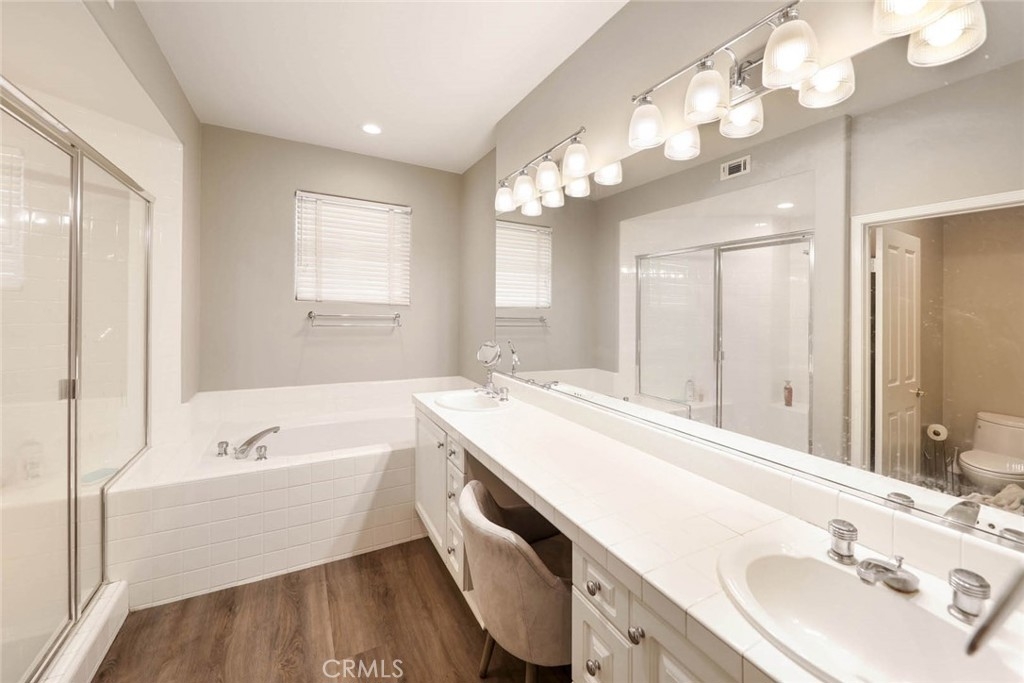 Live your absolute best life in the guard gated community of the Marbella Country club. This near 2,300 sq foot SINGLE LEVEL stunner has NO STEPS throughout its open floor plan consisting of DUAL master suites, PLUS an optional 3rd bedroom/home office/craft room. The 1st master suite has a beautiful fireplace, 2 walk-in closets, dual vanities, large walk-in shower, and separate soaking tub. The secondary master bedroom suite is also generous in size and has a full bath, dual vanities, and a large walk in closet. The office/3rd bedroom is located off the open great room and also has access to the private covered patio. A Large Sliding glass door seamlessly blends the indoor living to the outside patio from the great room and formal dining space. The kitchen boasts stainless steel appliances, eat-in dining, plenty of counter, storage and prep space, and has open views of the neighboring green/garden space. Recent improvements include new contemporary vinyl wood flooring, fresh paint, window treatments, and updated lighting. There is a separate Laundry room in the home, and your spacious detached 2-car garage with plenty of storage is locateds just a few steps away from your front door. Take a short stroll to the Marbella Country Club which offers varying club membership options where you can enjoy luxury amenities from world class golf, tennis, gym/fitness center, exercise classes, yoga, pilates, a Jr. Olympic pool, then wrap up your day with fine dining. Dana Point harbor and beaches are an easy 2 mile bike ride away. Easy and close access to the 5/405/73 freeways. NO MELLO ROOS. Make Marbella your home, or second home today! VIEW IN 3D