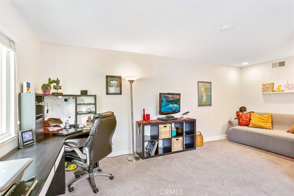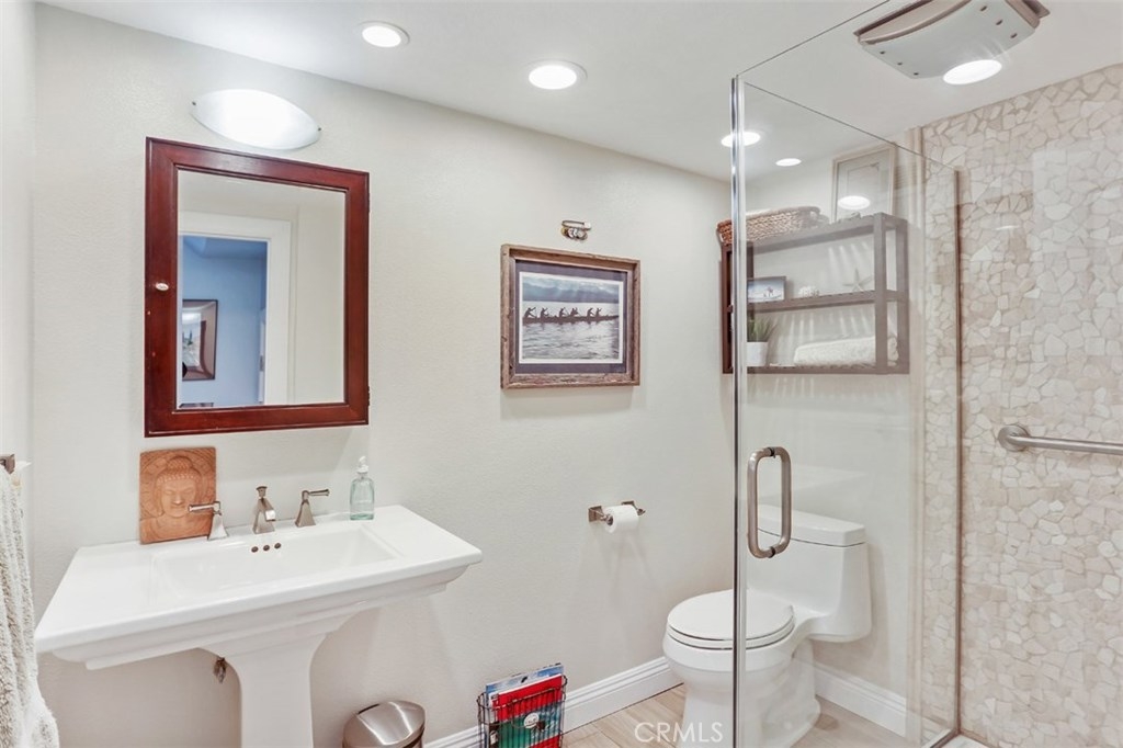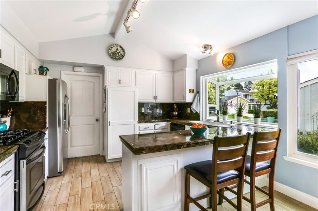 This charming home is located on a cul-de-sac in the extremely desirable Mariners Village community & is less than a 2 mile bike ride to the beach via the San Juan Creek Trail. The trail also provides access to two parks, Dana Point Harbor, San Juan's historic Los Rios District, train station, shopping & dining. Enter the home to newer porcelain tile floors & an open floor plan where the main living areas combine into one great room. A sunlit, upgraded kitchen with vaulted ceilings, plenty of counter space, pull out pantry drawers, marble countertops & bay window over the sink is an ideal space to cook for loved ones & guests. The great room's multiple windows provide natural light throughout the day while a sliding glass door creates a seamless flow between indoor & outdoor living spaces when entertaining. After a long day the private patio that backs to a tree lined greenbelt is an ideal place to relax. Although currently set up as a downstairs office, the room is easily converted back to a downstairs bedroom & the master upstairs has vaulted ceilings. Newer double paned windows & doors throughout, designer paint, solid core doors, updated bathrooms, an attached two car garage with two more parking spaces in the driveway are some of the additional amenities this home provides. Community features also include a clubhouse, spa, sizable lap pool & two tennis courts. Moreover there is a designated boat & RV parking area; space is subject to availability & costs $165 quarterly.