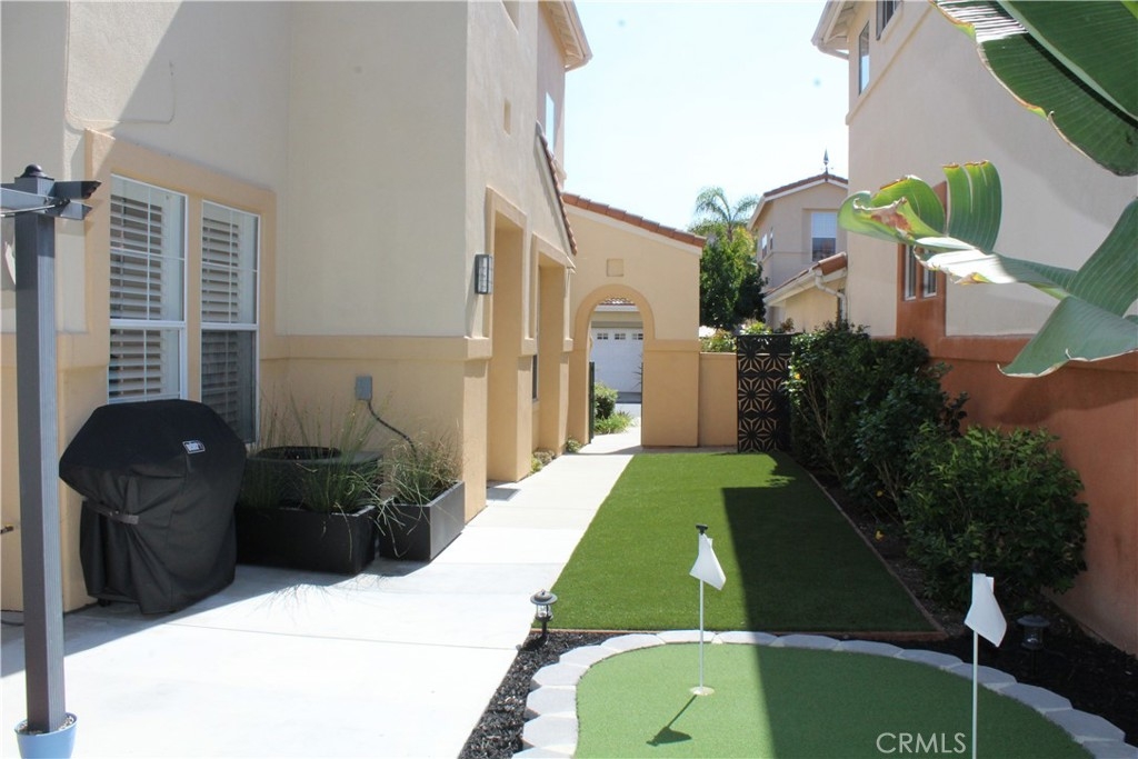 Highly desirable Greens community home located within the prestigious gated San Juan Hills. This premium homesite backs up to a beautiful landscaped community pool area, which provides a nice pool view out the master suite. Generous family room with new tile fireplace serves as a focal point which easily connects to the gourmet kitchen. The Kitchen includes new breakfast bar that is open to the dining area. The convenient layout provides a guest half bath downstairs, and two full bathrooms upstairs, with all three bedrooms upstairs. The interior of the home includes Plantation Shutters, new appliances with refrigerator, washer, dryer and updated kitchen countertop. All bathrooms were remodeled and designed for todays living, new flooring and paint, ceiling fans, Samsung refrigerator, washer and dryer. The exterior of the home include Professional putting green with artificial turf and all new patio and landscaping with pergola. If your looking for a home in the award winning Capistrano school district, close to hiking and bike trails, community parks surrounded by golf course. NO MELLO ROOS, Low HOA, Welcome Home to San Juan Hills.
