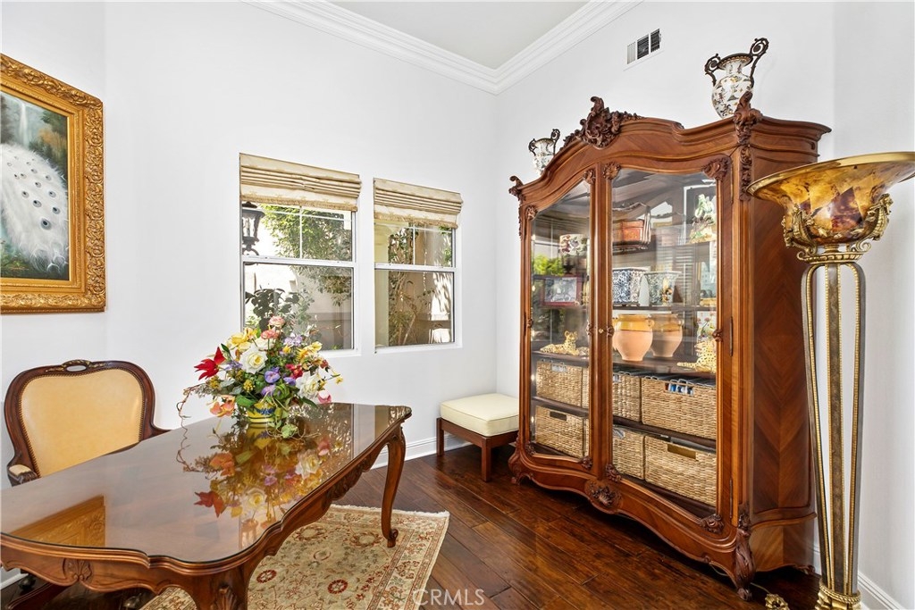 Situated in the gated community of San Juan Hills, this 2 bedroom 2 bathroom PLUS a den/office home offers a peaceful space to enjoy the good life.No words can properly do justice, this exquisite single story home in desirable San Juan Capistrano. This very desirable one story home is spread out over 1,645 square feet of impeccable living space. Upon entering you will notice the beautiful hardwood floors, fresh new paint, crown molding, high ceilings and plenty of windows display an abundance of natural light. The kitchen boasts granite counter tops, built in glass front refrigerator and stainless steel high end appliances. The living room has a cozy fireplace with built-ins throughout. In the master suite you will find custom carpentry with cased door openings and custom leaded and beveled windows. The master bathroom is absolutely spectacular with marble tile on floor and showers with a large jacuzzi tub. Walk through your private gated entry leading to the backyard featuring custom hardscaping, landscaping, patio cover & a built-in outdoor kitchen complete with a built-in grill, 2 burners, stainless steel sink, ice container and outdoor fireplace. This amazing community amenities including a pool, workout room and gated entrance. Located close to downtown San Juan, shopping, movie theatre and restaurants! Run, don’t walk to see this pristine home. Please call us today for a private showing of this one-of-a-kind home.