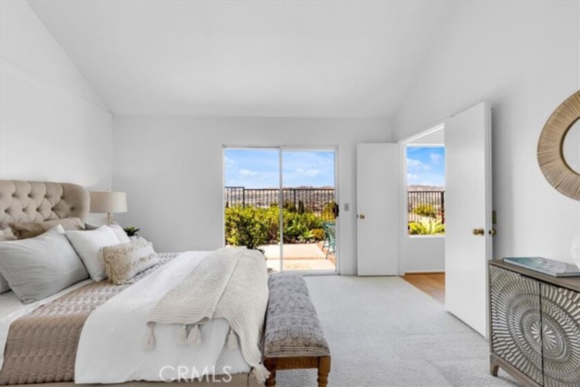 Discover the charm of Mesa Vista living in this lovingly maintained residence, where panoramic views and the iconic sound of Mission bells create a truly serene setting. Offering 2 bedrooms down plus a spacious loft (easily converted to a third bedroom) and 3 full bathrooms across approximately 1,763 square feet, this sun drenched home filled with natural light blends comfort, style, and versatility. A private gated courtyard welcomes you into an expansive living space with a large living room with gas fireplace and dining room, both highlighted by sweeping hillside and city lights views. A sliding glass door leads to the fabulous backyard with a perfect view of the historic Mission San Juan Capistrano and creates the perfect space for entertaining and enjoying nightly sunsets. The kitchen opens to a bright morning room—perfect as a casual dining space, family room, or home office. The main-level primary suite offers a peaceful retreat with direct patio access, incredible views, an ensuite bathroom, and a generous walk-in closet. A secondary bedroom on the main floor overlooks the charming front courtyard and is conveniently located near a full guest bath. Upstairs, the oversized loft features its own ensuite bathroom and offers flexible use as a third bedroom, guest suite, or bonus room, and a direct access storage area at the top of the stairs. Additional highlights include PEX piping, fresh paint throughout, attached 2-car garage with direct access, and a full size driveway for added parking. Ideally situated in the rolling hills of San Juan Capistrano, the Mesa Vista community offers amenities including three pools & spas, lush greenbelts, and optional RV parking. Enjoy close proximity to award-winning schools, scenic hiking trails, equestrian facilities, golf, shopping, dining, historic downtown, the new River Street Marketplace, Dana Point Harbor and world-class beaches. Experience the best of coastal Orange County living—Welcome Home!