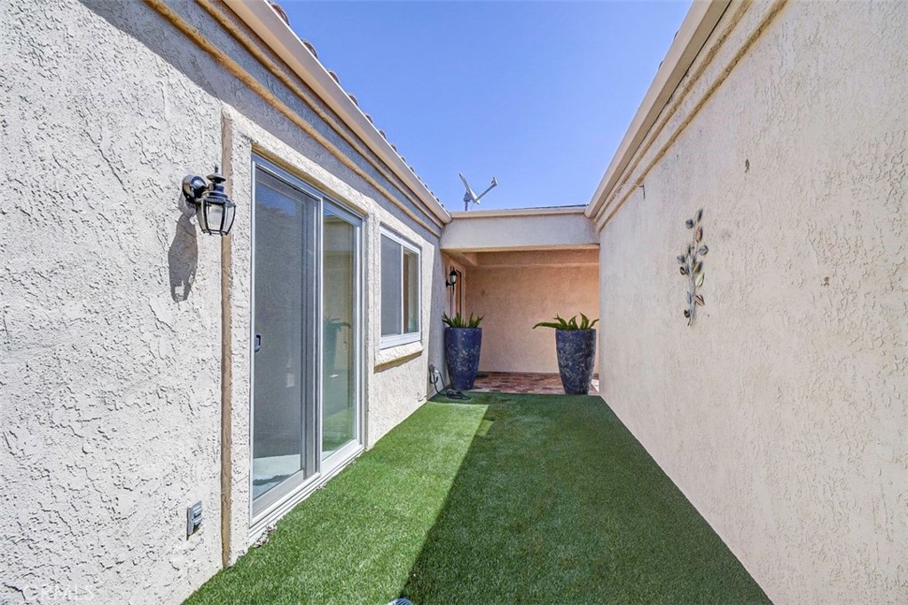 Spacious, single level garden home in the desirable community of Mesa Verde in San Juan Capistrano. You'll enjoy indoor and outdoor living in this 2 bedroom, plus an office/den, 2 bath detached home. It is one of only four detached condominiums in the Mesa Verde community. Square footage is 1,674 per tax assessor, and 1,728 sq. ft. per builder floor plan. Features include a private courtyard entry, multiple patios, and an open floor plan with vaulted ceilings and crown molding. The light and airy living room features a fireplace and a sliding door that leads onto a large patio tiled with pavers, and has a ceiling fan and a firepit. An Alumawood patio cover provides shelter from the sun or rain and is an ideal year-round space for relaxing, entertaining, and dining al fresco. The dining room offers a built-in buffet and overlooks a greenbelt. The kitchen features a garden window, abundant cabinets, granite counters, and a breakfast nook that opens onto a private courtyard patio for enjoying your morning coffee or tea. The spacious primary suite has a vaulted ceiling, a soaking tub and a separate tiled shower, an upgraded vanity with two sinks, mirrored wardrobe closets, a ceiling fan, and a sliding door to the rear patio. Convenient indoor laundry closet with washer and dryer hook-ups and storage cabinets. The second bedroom opens to a separate patio. Located on a quiet cul-de-sac street with plenty of guest parking. 2-car garage with abundant storage cabinets. Mesa Verde has two community pools and spas, meandering walking paths, greenbelts and manicured landscaping. Ideal location near San Juan Hills Golf Course, Windmill Park, hiking, biking, and horse trails. Enjoy the San Juan Capistrano lifestyle with its fantastic restaurants, Mission San Juan Capistrano (known as Jewel of the Missions), the historic Los Rios District, and River Street Marketplace. Just minutes from Doheny State Beach and Dana Point Harbor. There are NO age restrictions in this community.