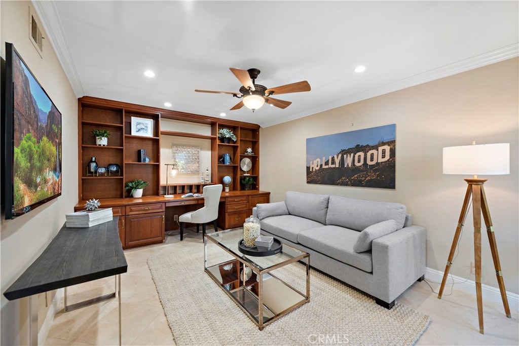 Welcome to this beautiful 2 bedroom, 2 bathroom, single story San Juan Capistrano home! Enter through the gated courtyard and enjoy the private garden and fountain upon entry. Once you enter you will be in awe of the raised ceiling and glorious ceramic tile flooring. The spacious living room with a stone mantel surrounds the fireplace. A sizable office with custom desk and built-in cabinetry is ideal for an office/guest space. The guest bedroom has a private veranda where you can sit outside to enjoy peace and the Southern California sunshine. The guest bedroom has access to a full bath with a stand up shower. The master bedroom is complete with direct access to the vast rear patio, boasts two sizable closets with mirrored sliding doors and a spacious bathroom with dual sinks, a walk-in shower and a wonderful separate soaking tub. Step out onto the back veranda and enjoy the greenbelt views with your morning cup of coffee. The neighborhood is tranquil, has a private Association Pool/Spa and a myriad of walking paths along the golf course or within the community. Located in close proximity to the Historic San Juan Mission & Los Rios District along with an array of dining and shopping options, easy access to highways & swathed by the warmth of sunshine & beaches nearby this home is perfect to enjoy all that San Juan Capistrano and coastal South Orange County have to offer.