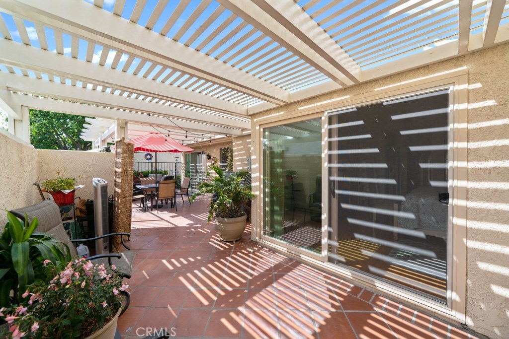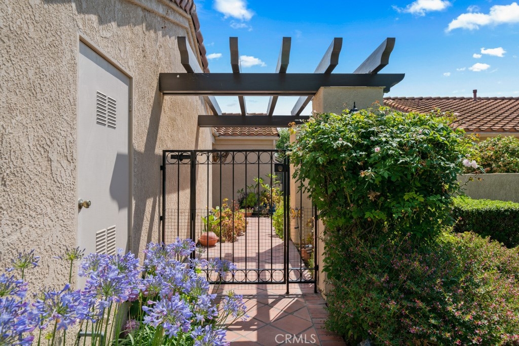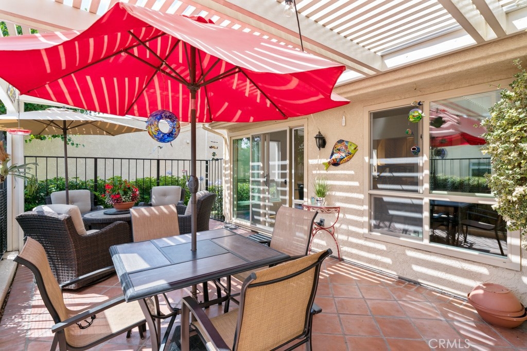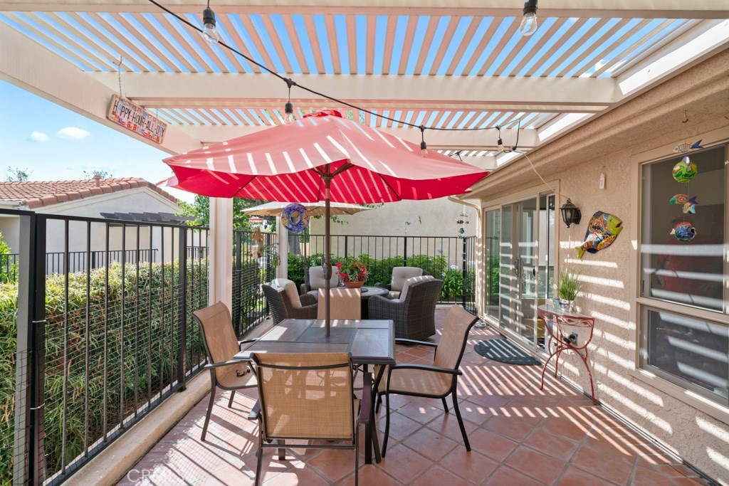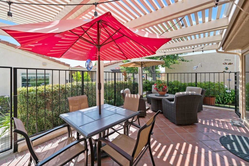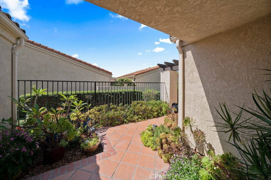 Welcome to beautiful Mesa Verde — a hidden gem surrounded by San Juan Hills Golf Course. This single level home has a wonderful open floor plan, upgraded flooring, and newer dual pane vinyl windows — providing a quiet & tranquil environment. You are welcomed into the living room by vaulted ceilings, and flooded with natural light from the clerestory windows. The kitchen has nicely upgraded granite counters, stainless steel appliances and a bright bay window. The master bedroom is perfectly positioned in the rear of the home, giving a private & quiet ambiance, with dual closets and access to the rear patio. The master ensuite bathroom is of generous size and has a dual vanity, separate soaking bathtub, and stand up shower. The front bedroom is complete with it’s own private patio, and close access to the hall bathroom. The third bedroom is currently set up as an office/den, and is positioned close to the front of the home, for ease of use. The backyard patio is an entertainer’s dream, and has easy access to the walking path that wraps along the golf course, leading to the nearby pool & spa. Mesa Verde is very well maintained with beautiful landscaping, incredible tree-lined walking paths, 2 sparkling pools & spas, and access to RV parking. The association dues include exterior maintenance & roof, front landscaping, and insurance. Mesa Verde is away from the hustle & bustle of the surrounding area, while still being close to restaurants, shopping, and easy access to freeway.