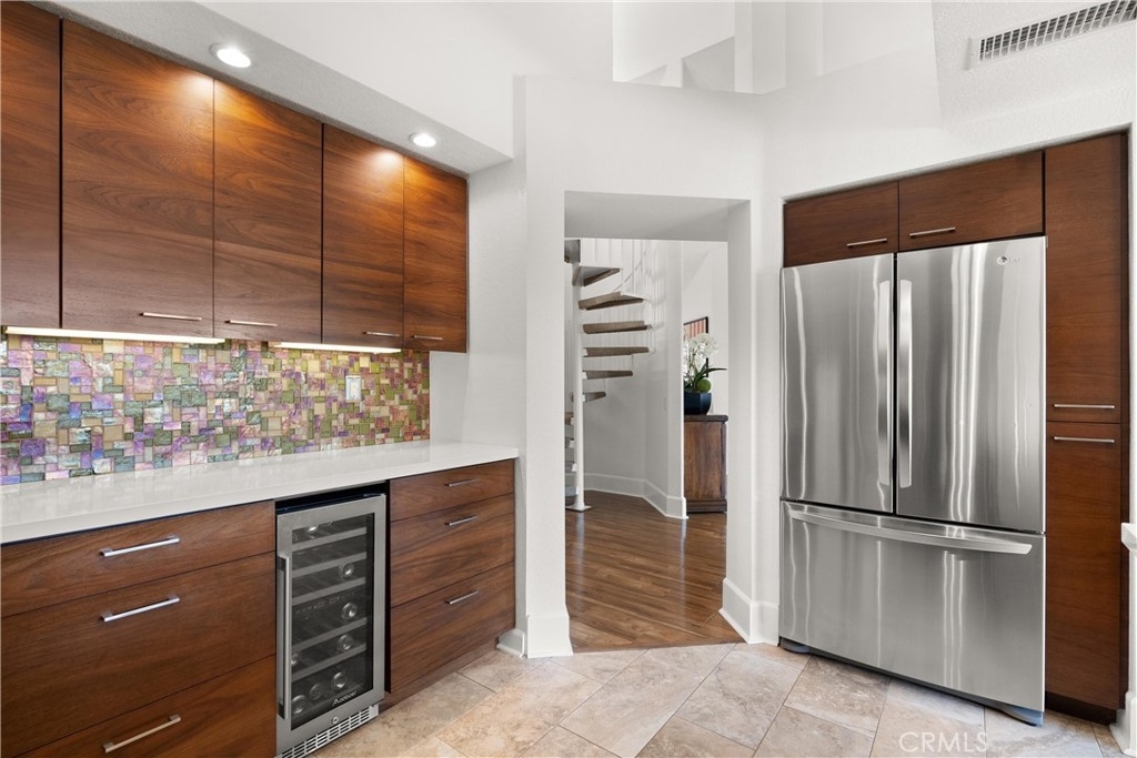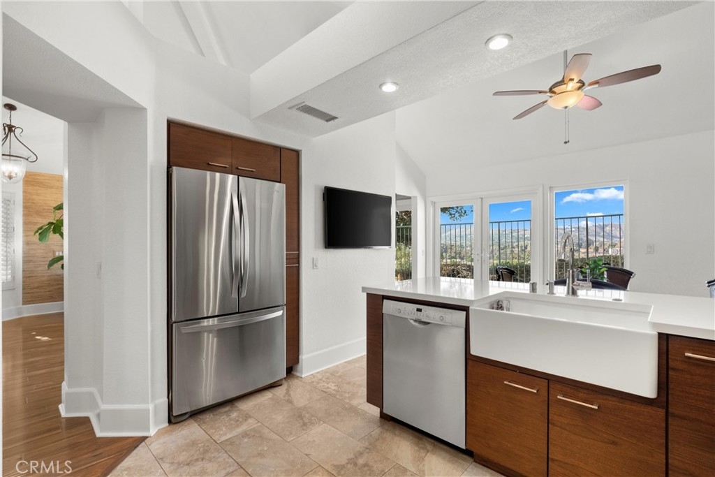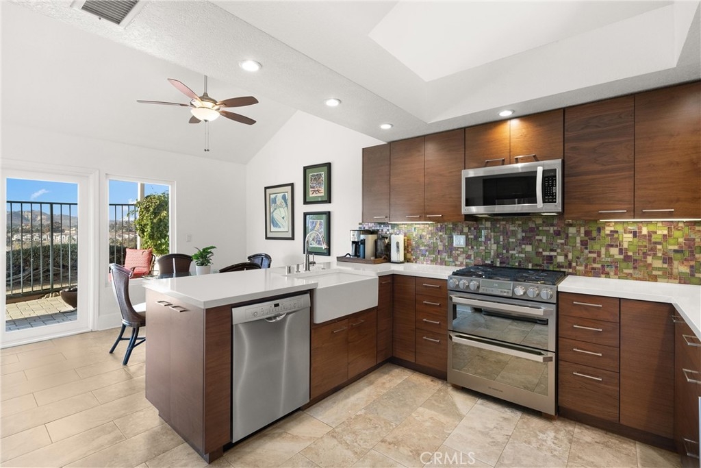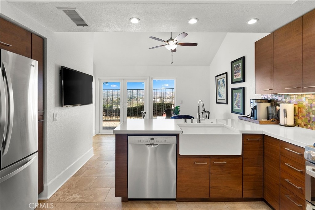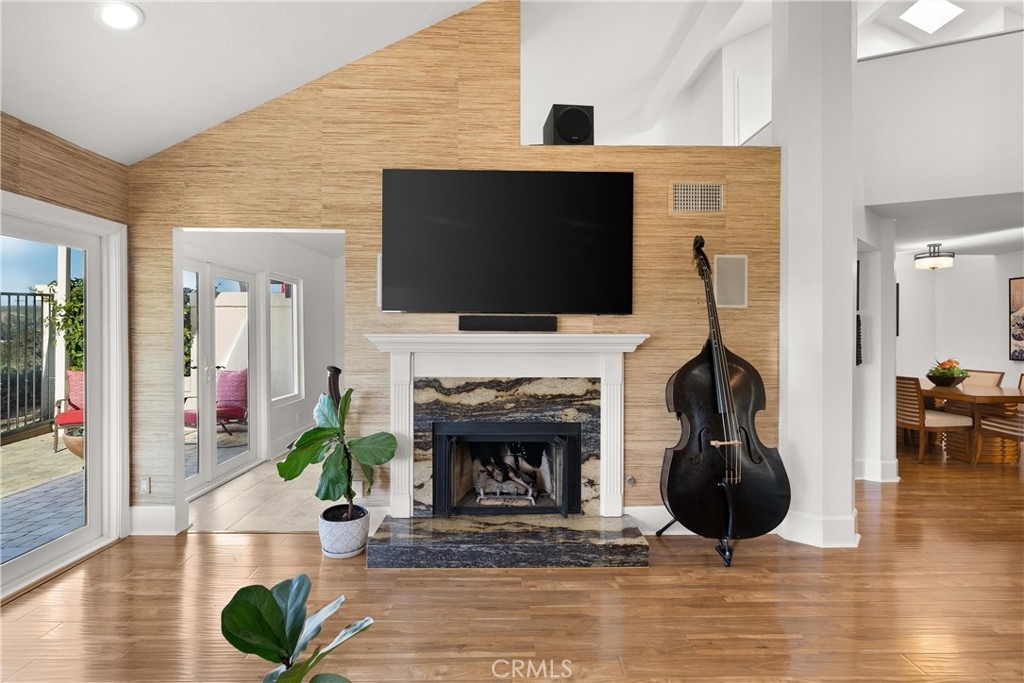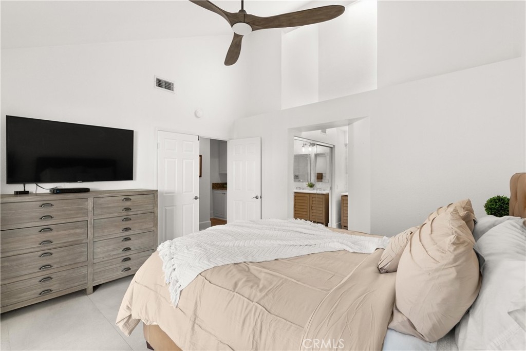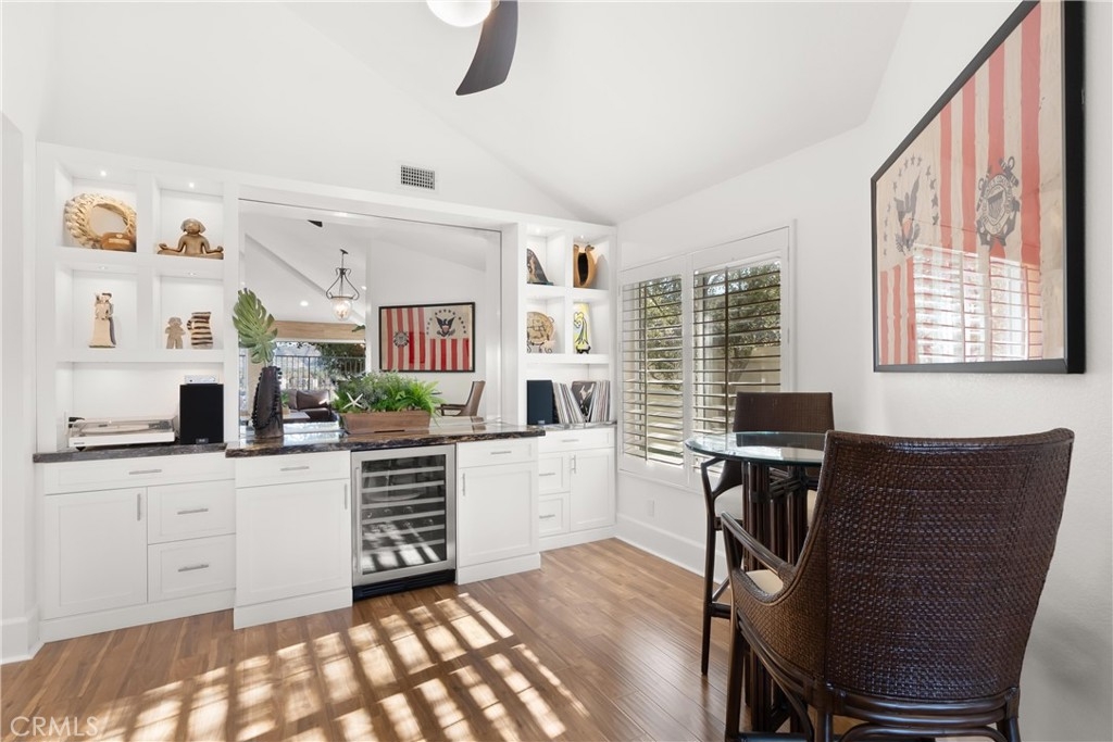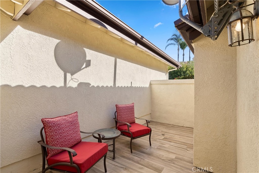 Discover this exquisite Mesa Verde home in the heart of a desirable San Juan Capistrano community, offering breathtaking views of San Juan Hills. This beautifully remodeled home blends style and functionality, with the convenience of a single-story layout complemented by a versatile upstairs loft. The loft space is ideal for use as an office, guest room, activity area, or media room. Step through a private, gated front courtyard and enter the home through a charming Dutch door, where light-filled interiors and soaring vaulted ceilings create an inviting ambiance. The main floor boasts panoramic views of the golf course and the iconic San Juan Mission, while the redesigned great room has been transformed into an expansive open living area. This space features elegant wood flooring, custom cabinetry, a wine refrigerator, and additional storage. A former bedroom was opened to expand the great room, but it can easily be converted back if desired—though its current layout is truly exceptional.The chef’s kitchen is a masterpiece, completely remodeled with quartz countertops, sleek cabinetry, a custom backsplash, and premium stainless steel appliances. Adjacent to the kitchen, the spacious dining area provides a warm and welcoming setting for family meals and entertaining. The luxurious primary suite features vaulted ceilings, direct access to a private patio, and an upgraded ensuite bathroom with dual vanities and spa-like finishes. A second bedroom with a Murphy bed and vaulted ceilings offers versatility and comfort, while the upgraded guest bathroom boasts premium finishes and thoughtful design.This home’s multiple living spaces seamlessly transition to private, fully enclosed front and back patios, creating a tranquil oasis for relaxation and outdoor entertaining. Additional highlights include an attached two-car garage with convenient laundry hookups, recessed lighting, ceiling fans, custom wall treatments, a designer fireplace mantel, and an improved backyard with stylish seating and a covered area for enjoying the serene surroundings.Ideally located to local highways and schools, this home offers access to San Juan Capistrano’s equestrian trails, stables, historic mission, quaint restaurants, and boutique shops. It’s just minutes from Dana Point Harbor, renowned beaches, and the San Juan Hills Golf Course, with hiking and biking trails right outside your door. The community also features a pool area and optional RV parking when available.