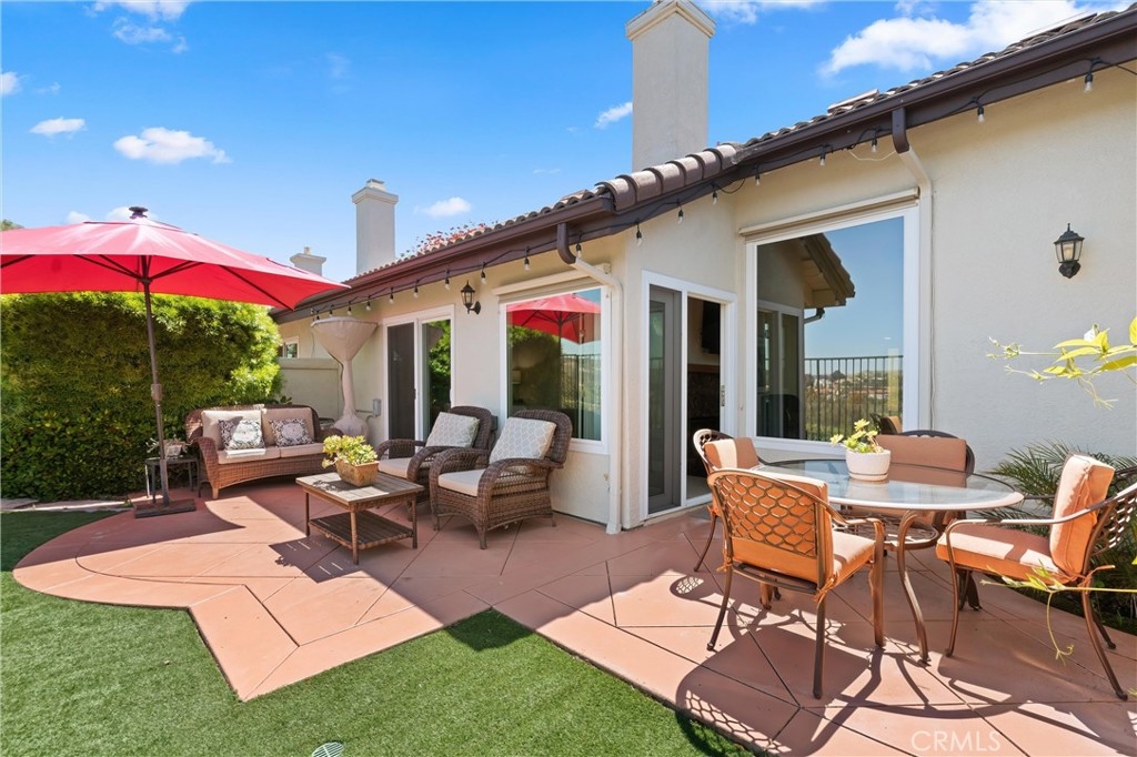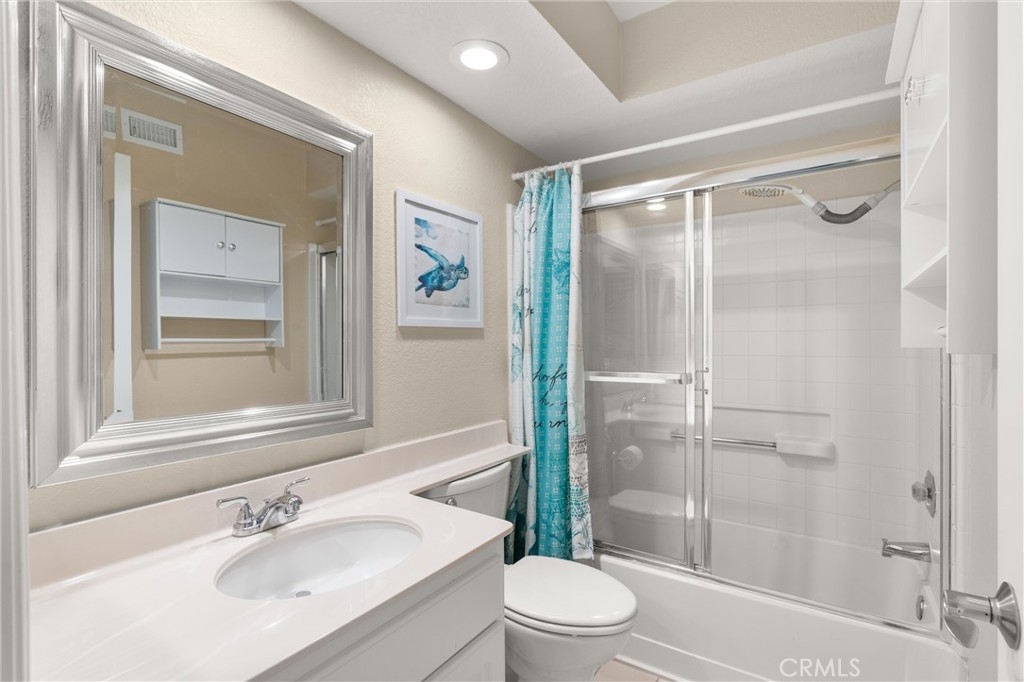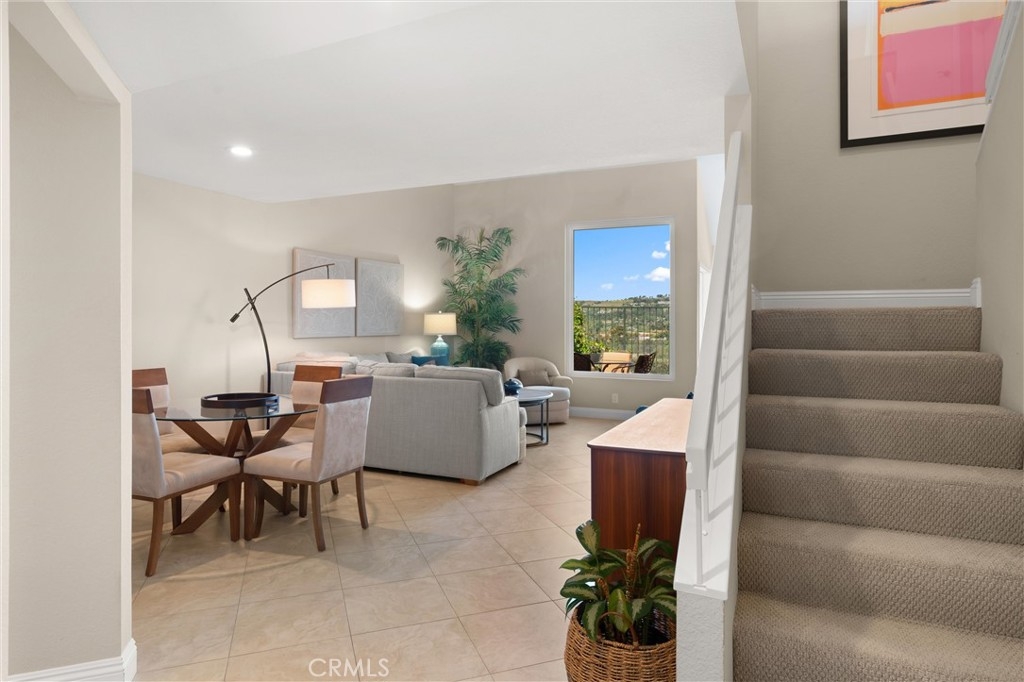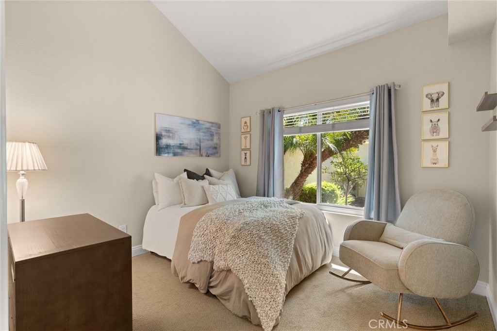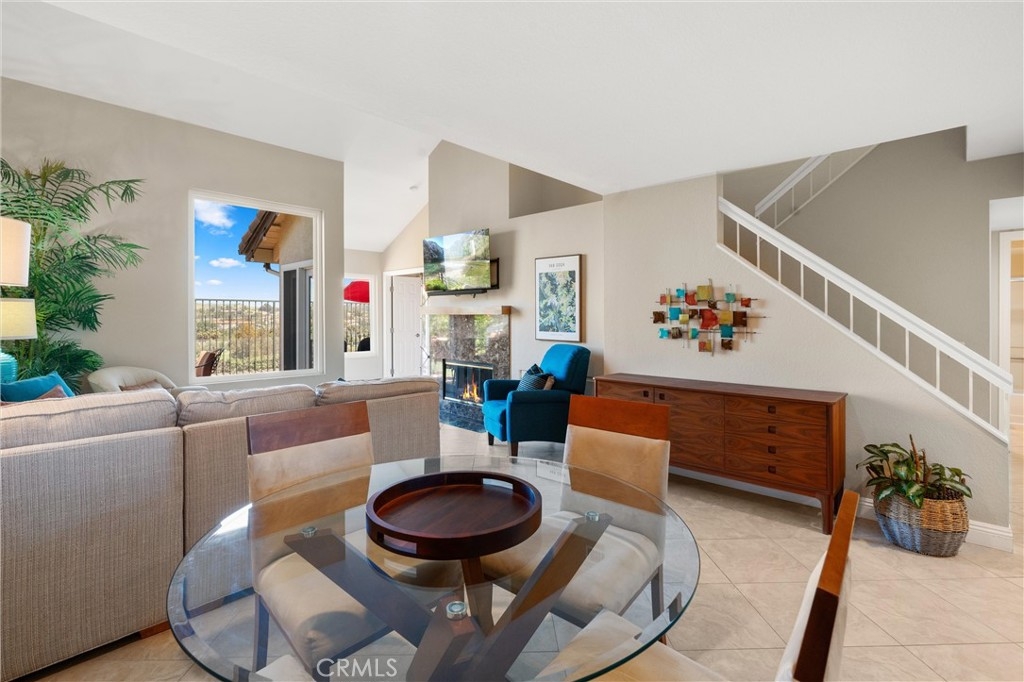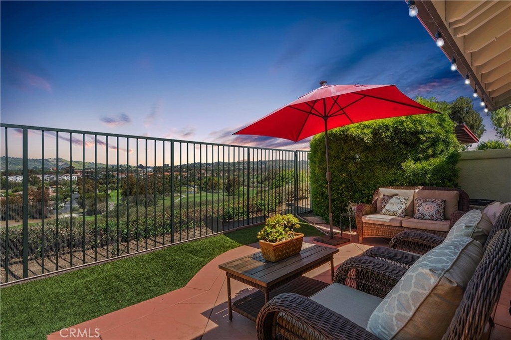 Nestled in the highly sought-after Mesa Vista community, this beautifully upgraded home offers sweeping panoramic views of the San Juan Hills Golf Course, sparkling city lights, and even the iconic San Juan Capistrano Mission—all visible from the first level. Designed with an open-concept layout, the main floor features a sun-drenched living room with expansive picture windows, a remodeled kitchen with sleek granite countertops, white cabinetry, and stainless steel appliances, as well as a dining area with a custom built-in counter and wine racks. Two generously sized bedrooms and two stylishly updated bathrooms complete the main level, where porcelain tile flooring flows seamlessly throughout the living spaces, and vaulted ceilings enhance the sense of openness while framing the home’s stunning surroundings. The primary suite is a luxurious retreat, offering a remodeled bath with a walk-in shower, granite counters, travertine flooring, and a walk-in closet with built-in organization systems. The second bedroom is equally inviting, with vaulted ceilings and a tranquil view of the entry garden. Upstairs, a spacious loft with a full third bath provides endless flexibility—perfect for a guest suite, home office, or cozy den—along with convenient access to expansive attic storage. Outside, a serene patio invites you to relax or entertain in peaceful comfort. Additional features include a two-car garage with ample storage, all within the well-maintained Mesa Vista community, which offers resort-style amenities such as pools, spas, and optional RV parking. Surrounded by scenic equestrian, hiking, and biking trails, and located just minutes from charming downtown San Juan Capistrano and Dana Point Harbor, this home truly delivers the best in coastal, resort-style living.