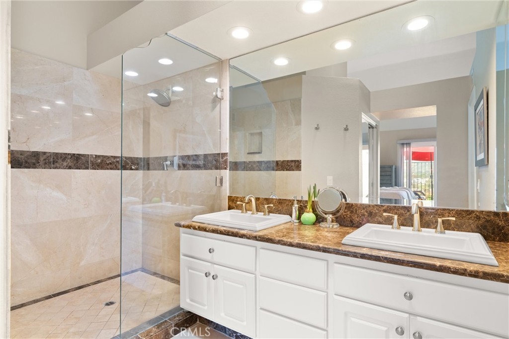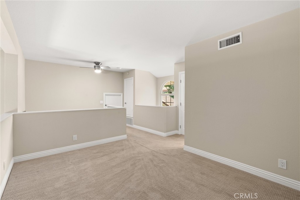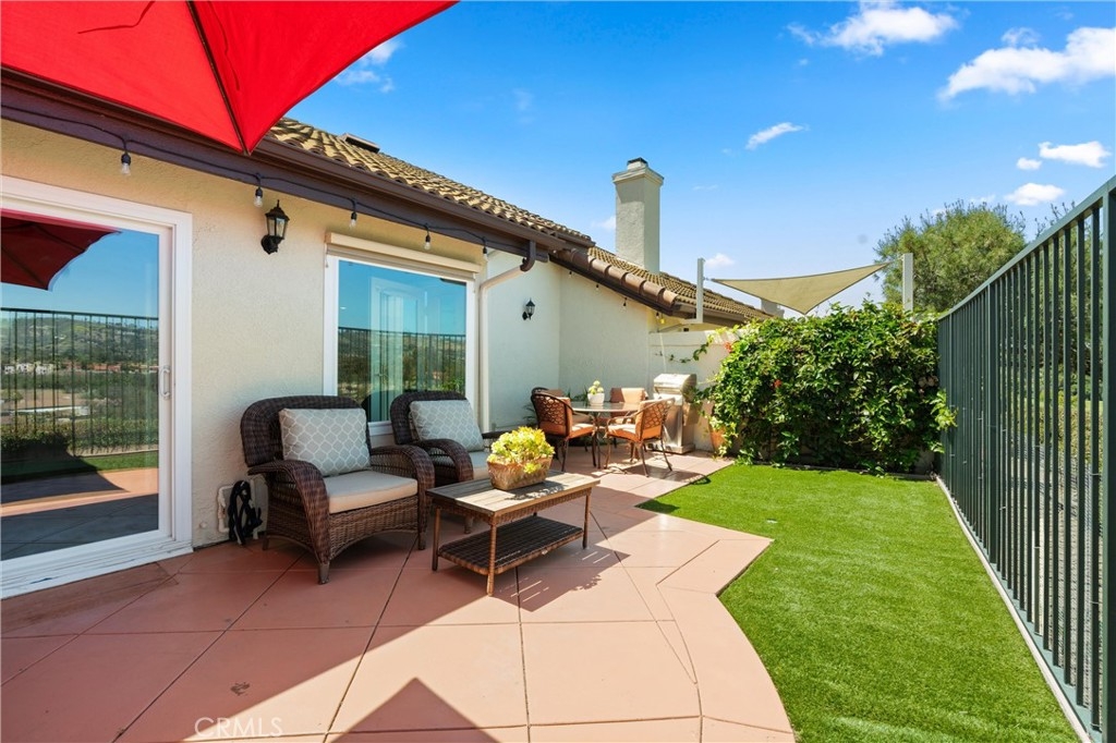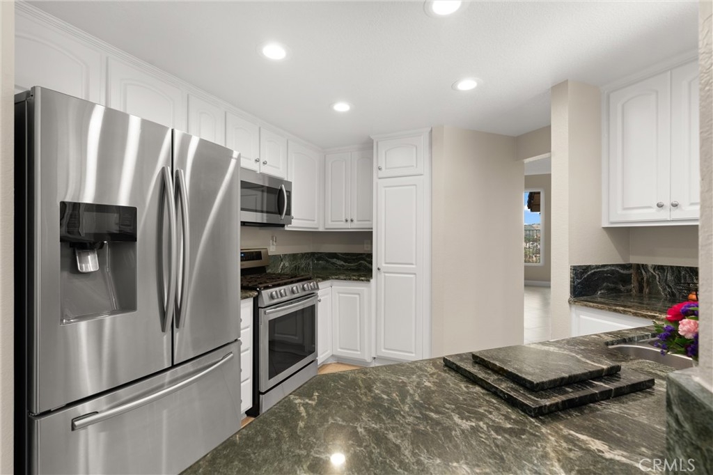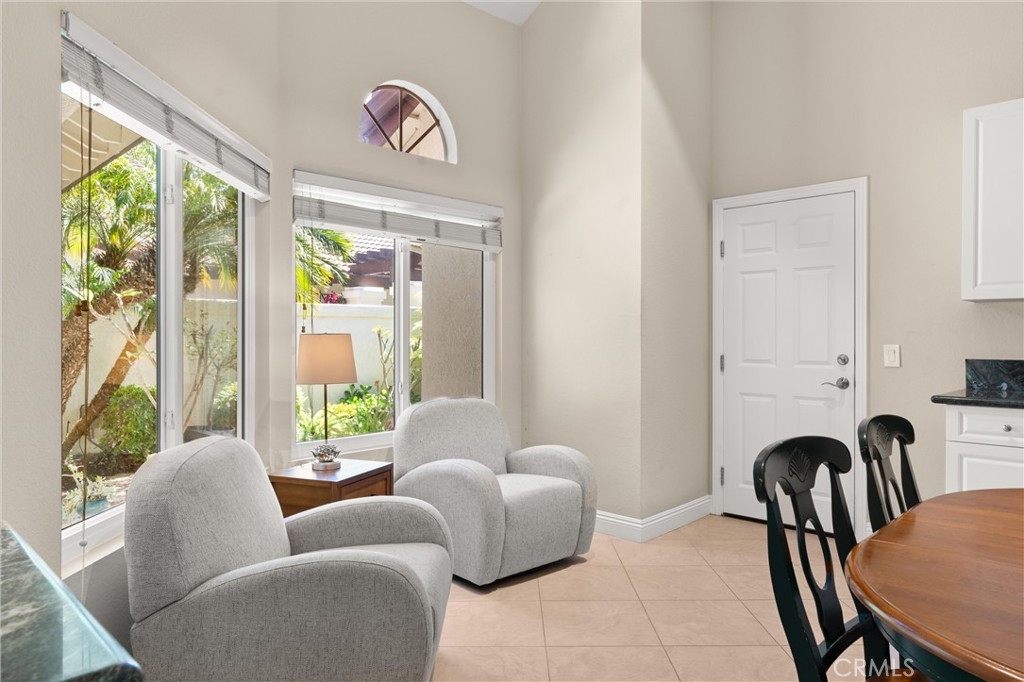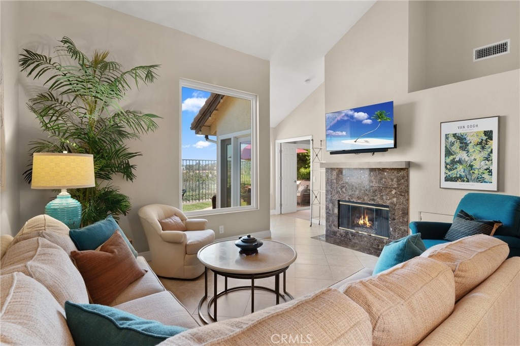 Nestled in the highly sought-after Mesa Vista community, this beautifully upgraded home offers sweeping panoramic views of the San Juan Hills Golf Course, sparkling city lights, and even the iconic San Juan Capistrano Mission—all visible from the first level. Designed with an open-concept layout, the main floor features a sun-drenched living room with expansive picture windows, a remodeled kitchen with sleek granite countertops, white cabinetry, and stainless steel appliances, as well as a dining area with a custom built-in counter and wine racks. Two generously sized bedrooms and two stylishly updated bathrooms complete the main level, where porcelain tile flooring flows seamlessly throughout the living spaces, and vaulted ceilings enhance the sense of openness while framing the home’s stunning surroundings. The primary suite is a luxurious retreat, offering a remodeled bath with a walk-in shower, granite counters, travertine flooring, and a walk-in closet with built-in organization systems. The second bedroom is equally inviting, with vaulted ceilings and a tranquil view of the entry garden. Upstairs, a spacious loft with a full third bath provides endless flexibility—perfect for a guest suite, home office, or cozy den—along with convenient access to expansive attic storage. Outside, a serene patio invites you to relax or entertain in peaceful comfort. Additional features include a two-car garage with ample storage, all within the well-maintained Mesa Vista community, which offers resort-style amenities such as pools, spas, and optional RV parking. Surrounded by scenic equestrian, hiking, and biking trails, and located just minutes from charming downtown San Juan Capistrano and Dana Point Harbor, this home truly delivers the best in coastal, resort-style living.