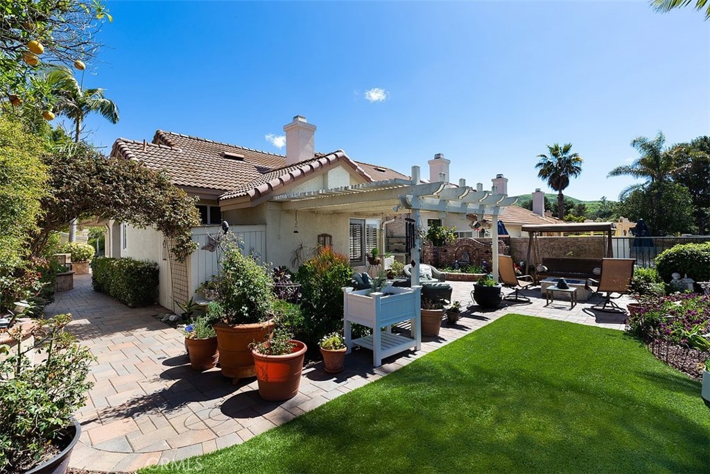 This SINGLE LEVEL, residence located in the community of Mesa Vista offers privacy and views of the Saddleback Mountains, hills, and the Mission San Juan Capistrano. Welcomed by a private gated courtyard entry and greeted by a lush beautiful garden, this home is tastefully designed with vaulted ceilings, skylight, hardwood floors, and abundant natural lighting. This home offers 2 bedrooms, 2 bathrooms and provides ample space and an effortless floor plan with all modern amenities for convenient and comfortable living. The Open-concept floor plan seamlessly connects all of the main living areas, which include a beautiful living room with gas fireplace, dining area, and nook area with view of courtyard. Newly REMODELED Kitchen with newer stainless steel appliances, pristine white Shaker cabinetry, white quartz counter tops and Subway tile back splash. Master suite offers views, spacious closets and updated en suite master bath complete with sliding barn door for privacy. Step outside to the wrap around yard complete with lush gardens, orange tree, and Breathtaking views, views, views! Perfect for entertaining! Attached 2-car garage with storage cabinets. Located in a quiet neighborhood, single loaded street, cul de sac. Property has a low property tax base, NO MELLO ROOS, HOA dues, & association pools. Easy access and minutes from freeway, downtown San Juan Capistrano, equestrian facilities, Orange County Beaches, hiking, biking, shopping, and world class amenities.