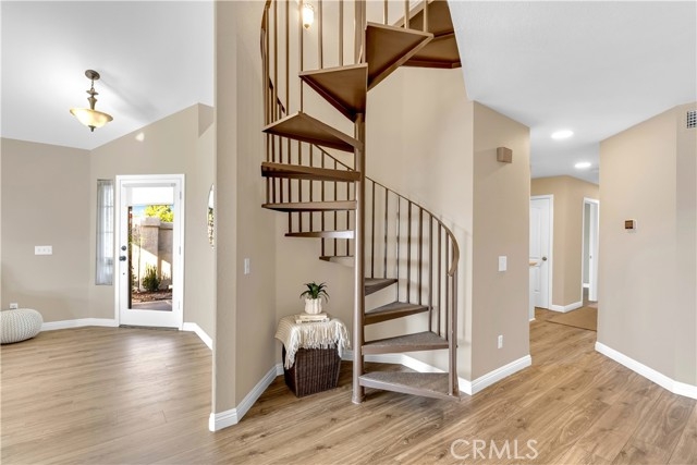 Hear the Mission Bells and Feel the Cool Coastal Breezes from this chic 3-bedroom, 2-bath plus LOFT residence perfectly positioned on a quiet cul-de-sac with beautiful views of the historic San Juan Capistrano Mission. This beautifully updated home captures the essence of the indoor/outdoor California lifestyle and LIVES LIKE A SINGLE LEVEL! Enter through a private gated courtyard into a beautifully landscaped wraparound backyard featuring spectacular views, built-in BBQ, and inviting seating areas for relaxing or entertaining. Inside, the open and airy floor plan offers welcoming living and dining spaces anchored by a gas fireplace. Details include dual pane windows and sliding glass doors, laminate wood flooring throughout, updated kitchen and bathrooms. The fabulous kitchen showcases quartz countertops, wood cabinetry, recessed lighting, stainless steel appliances, and at counter seating for 3 overlooking the eating nook. All bedrooms are conveniently located on the main floor, while an upstairs loft provides a versatile bonus area—ideal for a home office, gym, craft or media room. The beautifully updated primary suite includes access to a private patio and a renovated bathroom featuring a beautifully tiled step-in shower with designer tile, a polished marble-topped vanity with dual sinks, custom lighting, custom mirror and a large walk-in closet. Additional 2 bedrooms are large enough to accommodate Queen sized beds. Secondary updated bathroom features a shower in tub, polished marble top vanity and tile floor. Other special highlights include direct-access two-car garage, newer A/C, and PEX repiping throughout. Views, privacy, and style combine in this exceptional Mesa Vista residence—nestled in the rolling hills of historic San Juan Capistrano with easy freeway access, three community pools, lush landscaping, RV parking options, and close proximity to award-winning schools, hiking trails, equestrian facilities, fine dining, and world-class beaches. Welcome Home!