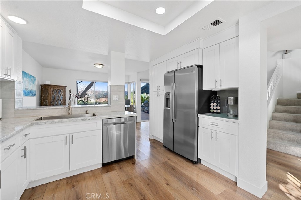 Amazing Sunset Views!!! Welcome to 27377 Paseo La Serna, a beautifully updated home located in a private cul-de-sac in the sought-after Mesa Vista community of San Juan Capistrano. This turnkey 2-bedroom, 2.5-bathroom residence offers the perfect combination of modern comfort and coastal charm, featuring stunning views of the historic Mission San Juan Capistrano, spectacular sunsets, and refreshing coastal breezes. As you enter, you’re greeted by a private courtyard that provides a tranquil space for relaxation and outdoor entertaining. Inside, the home boasts an open and airy layout filled with natural light, highlighting spectacular views of the Mission. The recently renovated kitchen is a true centerpiece, featuring silver and white natural marble countertops, sleek stainless steel appliances, recessed lighting, and wood grain luxury vinyl plank flooring. A bright breakfast nook sits just off the kitchen, offering the perfect spot for your morning coffee while basking in the sunlight. The kitchen opens seamlessly to the dining area, which has room for barstools on the opposite side of the kitchen sink. From the dining area, enjoy breathtaking views down to the Basilica in downtown San Juan Capistrano. The adjoining family room is anchored by a gas fireplace, providing a cozy ambiance, and offers direct access to the backyard where unobstructed views await. The spacious master suite includes two large closets and an en-suite bath with dual sinks and ample countertop space. The second bedroom also features a large closet and its own ensuite bathroom, ensuring comfort and privacy for all. The home also includes a convenient main floor powder room and a laundry room with direct access to the two-car garage offering plenty of storage and parking. Mesa Vista offers a peaceful, community-oriented atmosphere, with access to three pools and spas, as well as easy freeway connections. You’ll be just minutes away from top-rated schools, shopping, hiking trails, world-class beaches in Dana Point and San Clemente, fine dining, equestrian facilities, San Juan Hills golf course, and the vibrant historic downtown area of San Juan Capistrano. Don’t miss your chance to own this stunning home—your perfect home in a perfect location. Welcome home!