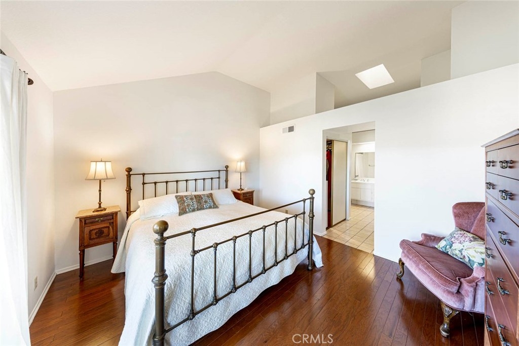 Welcome to this beautifully maintained 2-bedroom plus loft, 3-bathroom condo nestled on a quiet, single-loaded cul-de-sac with breathtaking views of Mission San Juan, Saddleback Mountain, and city lights. This residence combines elegance, comfort, and functionality in a serene setting. Enjoy a private, gated entry that leads you into a cozy courtyard. The spacious interior is freshly painted throughout, this home features vaulted ceilings, an open floorplan, and plenty of natural light. Relax by the fireplace in the spacious living room, or enjoy the bright, white kitchen open to the cozy family room, perfect for gatherings. The main floor boasts a luxurious primary bedroom with an ensuite bathroom, including a dual-sink vanity, soaking tub with shower, walk-in closet, and sliding doors that open to an easy-maintenance patio with brick accents and stunning views. Upstairs, find a versatile spacious loft with an ensuite full bath and ample storage. Additional features include Air Conditioning, a two-car attached garage with direct access, additional two-car driveway, and plenty of guest parking. The condo is close to the association pool, and the HOA takes care of the roof, front landscaping, and exterior paint, ensuring low-maintenance living. Appliances (washer, dryer, and refrigerator) are included, making this home move-in ready. Don’t miss this exceptional opportunity to live in a beautiful, private setting with unparalleled views!