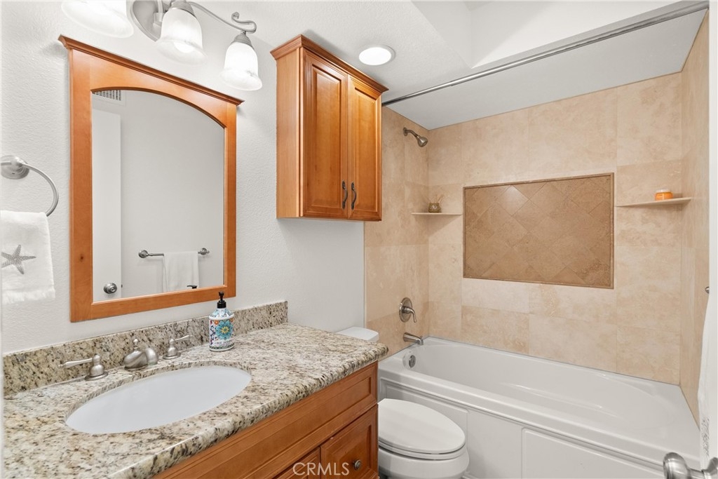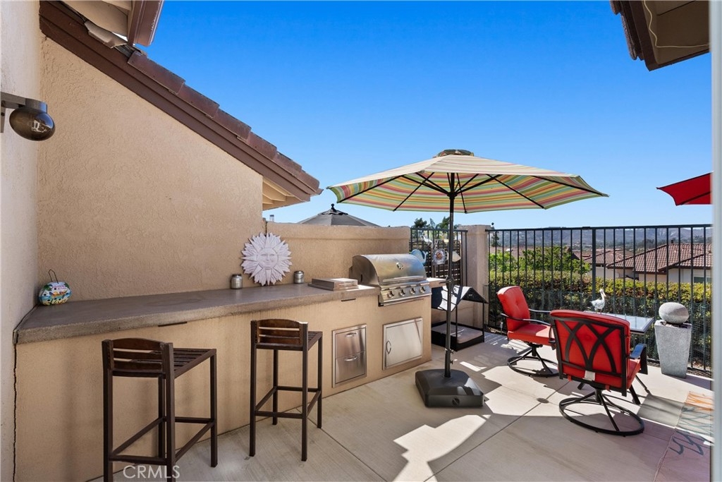 Welcome to this beautifully upgraded single-story + loft home in the highly desirable Mesa Vista community of San Juan Capistrano. The backyard was redesigned just a few years ago and is the perfect place to entertain, with a built-in BBQ bar, burner, and storage drawers—all while enjoying sweeping views of the rolling hills, sunsets, and the historic Mission San Juan Capistrano. From the moment you step inside, you’ll notice the thoughtful details throughout, including laminate flooring, vaulted ceilings, dual-paned windows, and a whole-home soft water treatment system. The chef’s kitchen is sure to impress with solid wood, soft-closing cabinets, convenient pull-out shelving, granite counters, and a full suite of KitchenAid stainless steel appliances. Plus, just off the kitchen is a perfect space that can be used for dining, as a den, or even a playroom. The spacious primary suite includes a walk-in closet with custom organization, vaulted ceilings, and a bathroom that includes custom cabinetry, granite countertops, and a walk-in shower with separate rainfall and handheld shower heads. The secondary bedroom on the main floor is perfect for guests or as an office - with an adjacent full bathroom. Just up the stairs, you will find a full bathroom and a spacious loft area that could easily be converted to a 3rd bedroom with an ensuite. The garage is well-appointed with custom storage cabinets to keep everything organized. Located within the award-winning Capistrano Unified School District, this home offers not only comfort and convenience but also a fantastic community lifestyle. Mesa Vista residents enjoy easy access to walking trails and are just a short stroll from the community pool and spa. Don’t miss the opportunity to make this beautiful home yours!