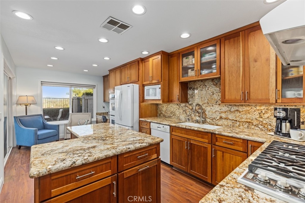 Corner location with expansive valley view is something to behold. This, 2 bedroom plus loft home has been redesigned (plans & permits available on file) for today’s living style. Beautiful open floorplan has vinyl plank flooring throughout the downstairs living space which encourages indoor outdoor living. Dual pane vinyl windows throughout helping to keep temperatures even all year long. If it gets too cold there is a cozy fireplace and a new Lennox heater. Kitchen is well appointed with Viking 6 burner cooktop, Jenn-air 36-inch dual ovens, Granite counters and backsplash. Cherry cabinets with undercabinet lighting, soft close drawers, pull out shelfs, lazy Susan corner cabinet and a center island with clever storage solution to maximize space and capacity. All appliances are included with purchase. Cozy upstairs loft serves as additional multi use space along with two spacious bedrooms and updated baths.